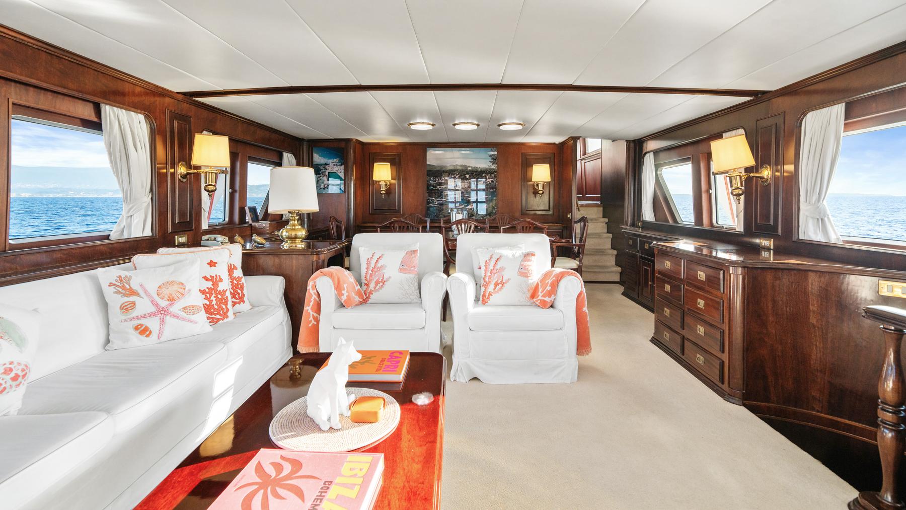 AMMIRAGLIO (built in 1982) is a meticulously maintained classic yacht, offering luxurious accommodations for up to 8 guests across 4 spacious cabins, each with its own en suite bathroom. With generous exterior deck spaces, AMMIRAGLIO is the ideal family cruiser. Her timeless mahogany interior, lovingly preserved by her previous two owners, reflects the elegance of her era.