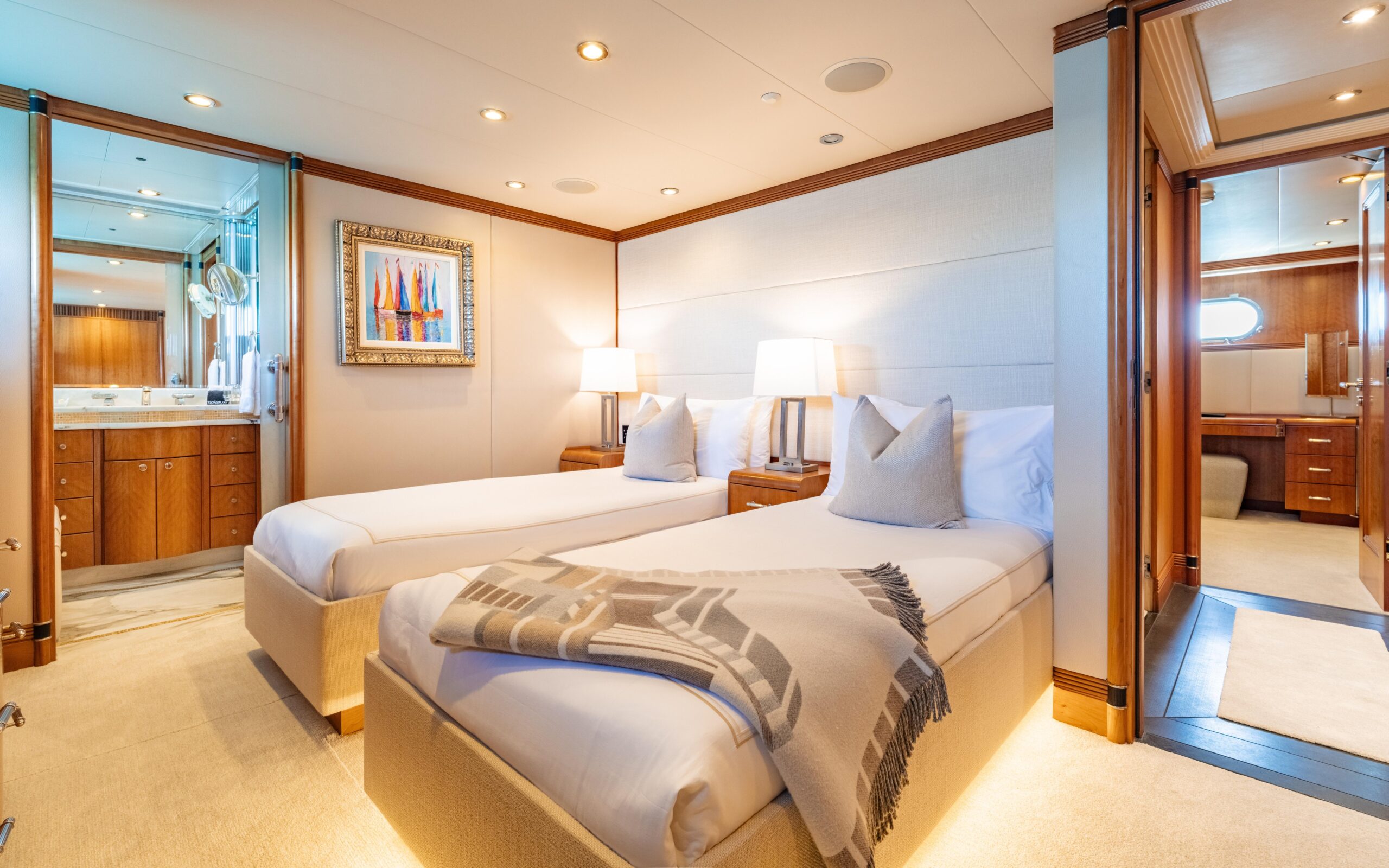 • Lower guest cabin refit 3 out of 4 cabins have convertible king/ twins. All new beds, mattresses, carpet and furnishings