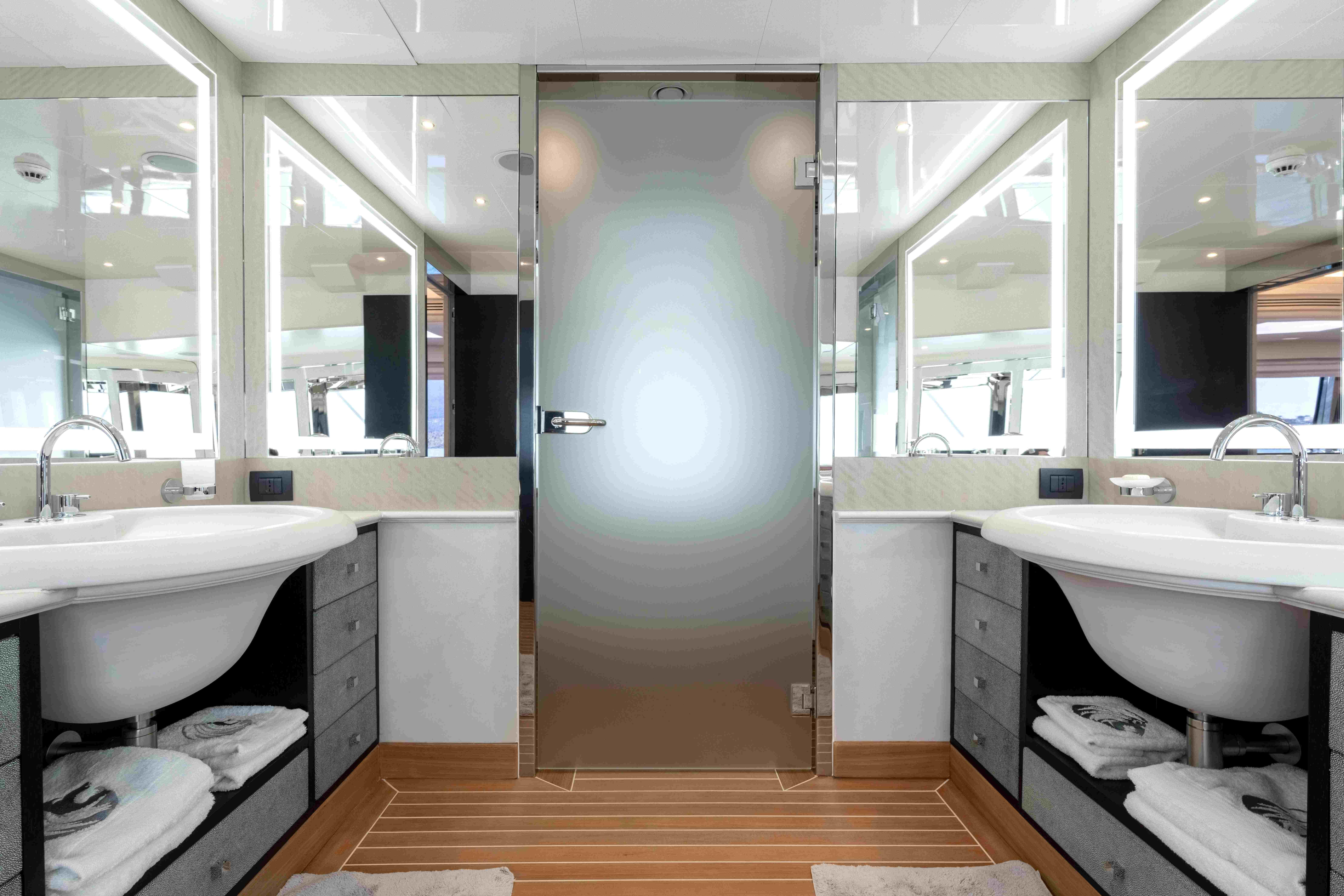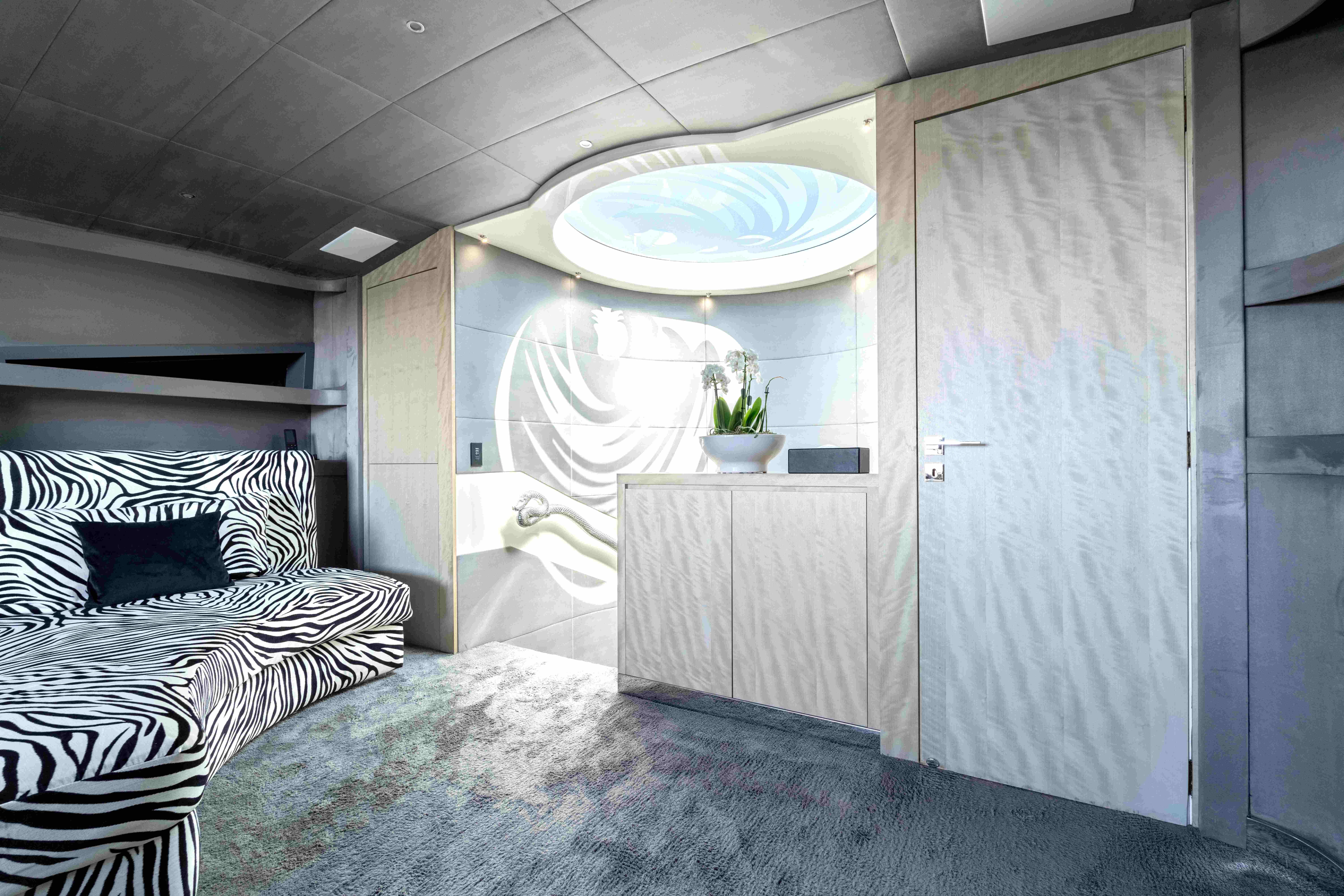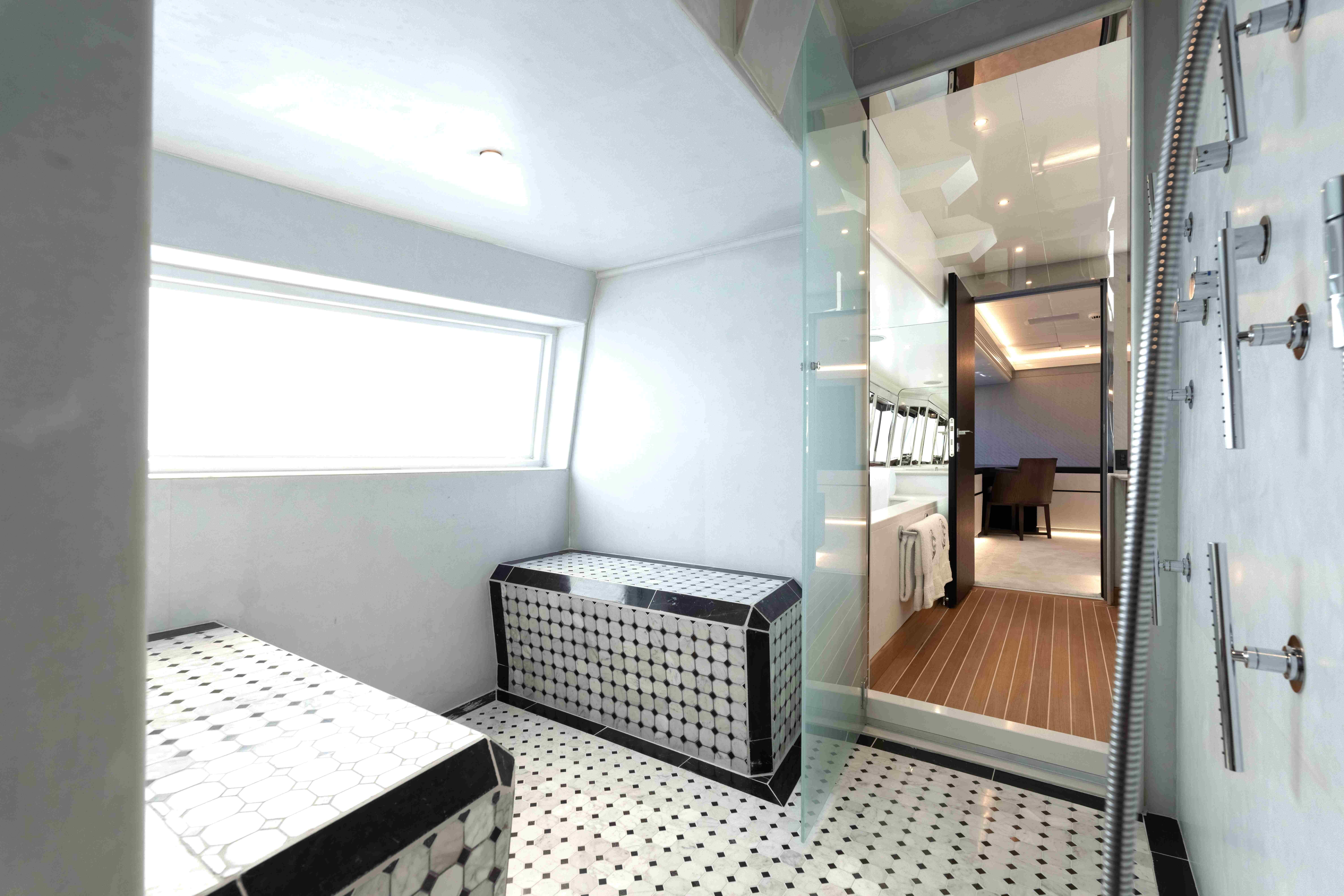 AQUILA offers accommodation for up to ten guests in five cabins, including full beam owner's suite with walk-in wardrobes and en suite bathroom , 2 VIP cabins on the lower deck with walk-in wardrobe and en suite bathroom, 1 Twin cabin with en suite shower room and 1 x double cabin with en suite shower room.
