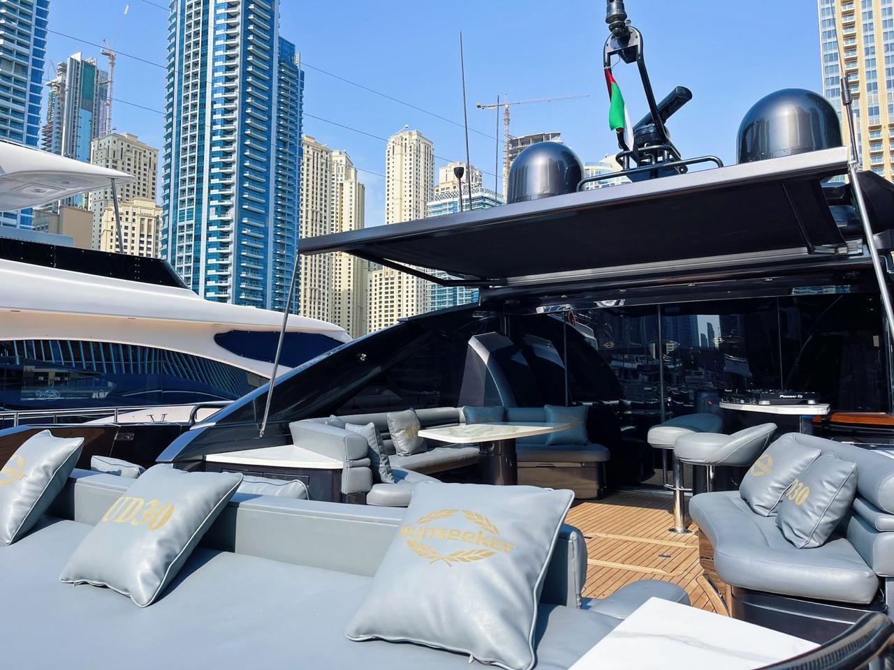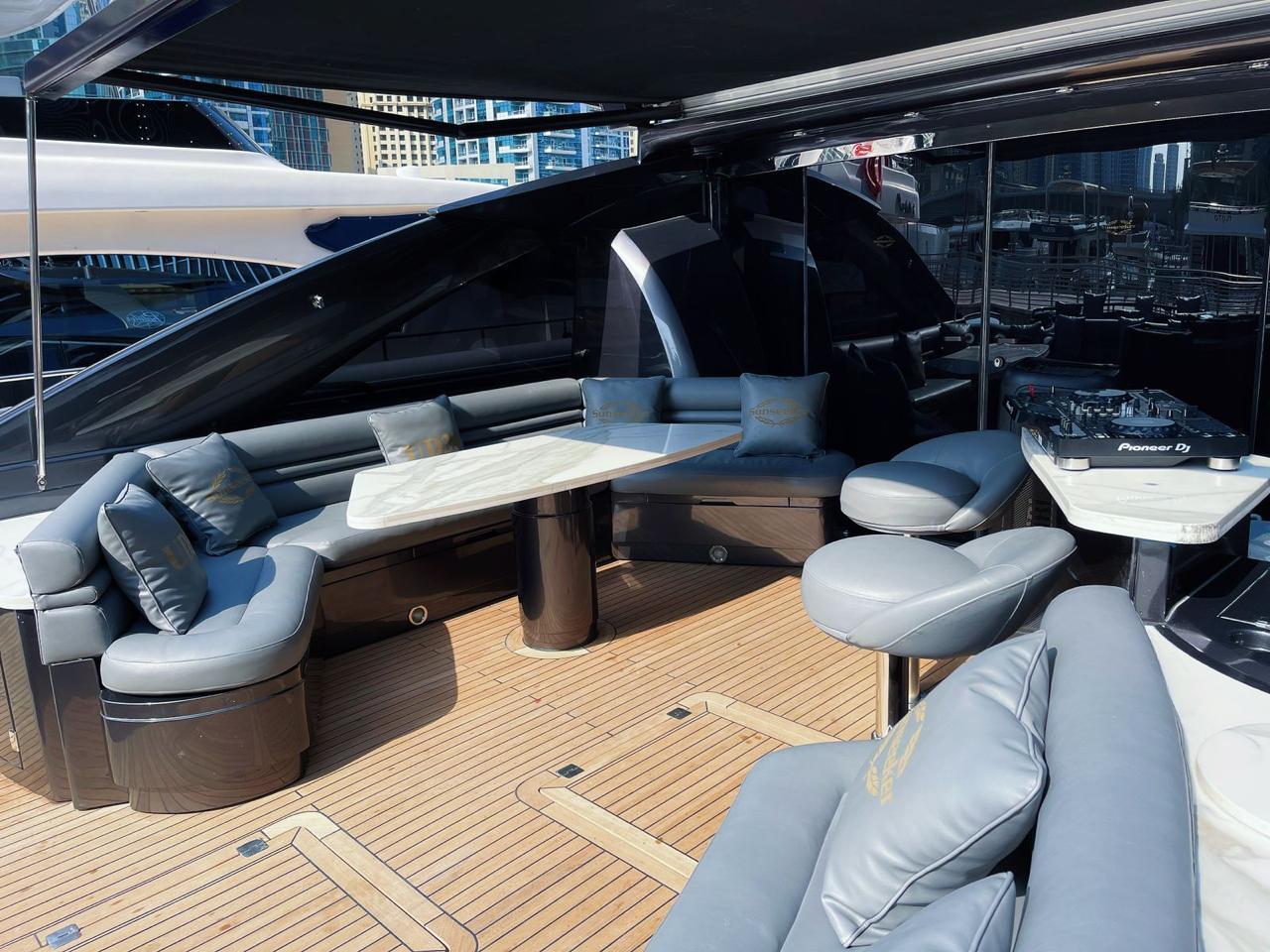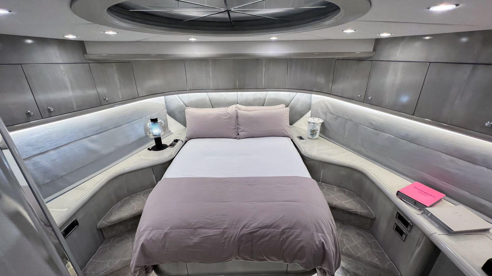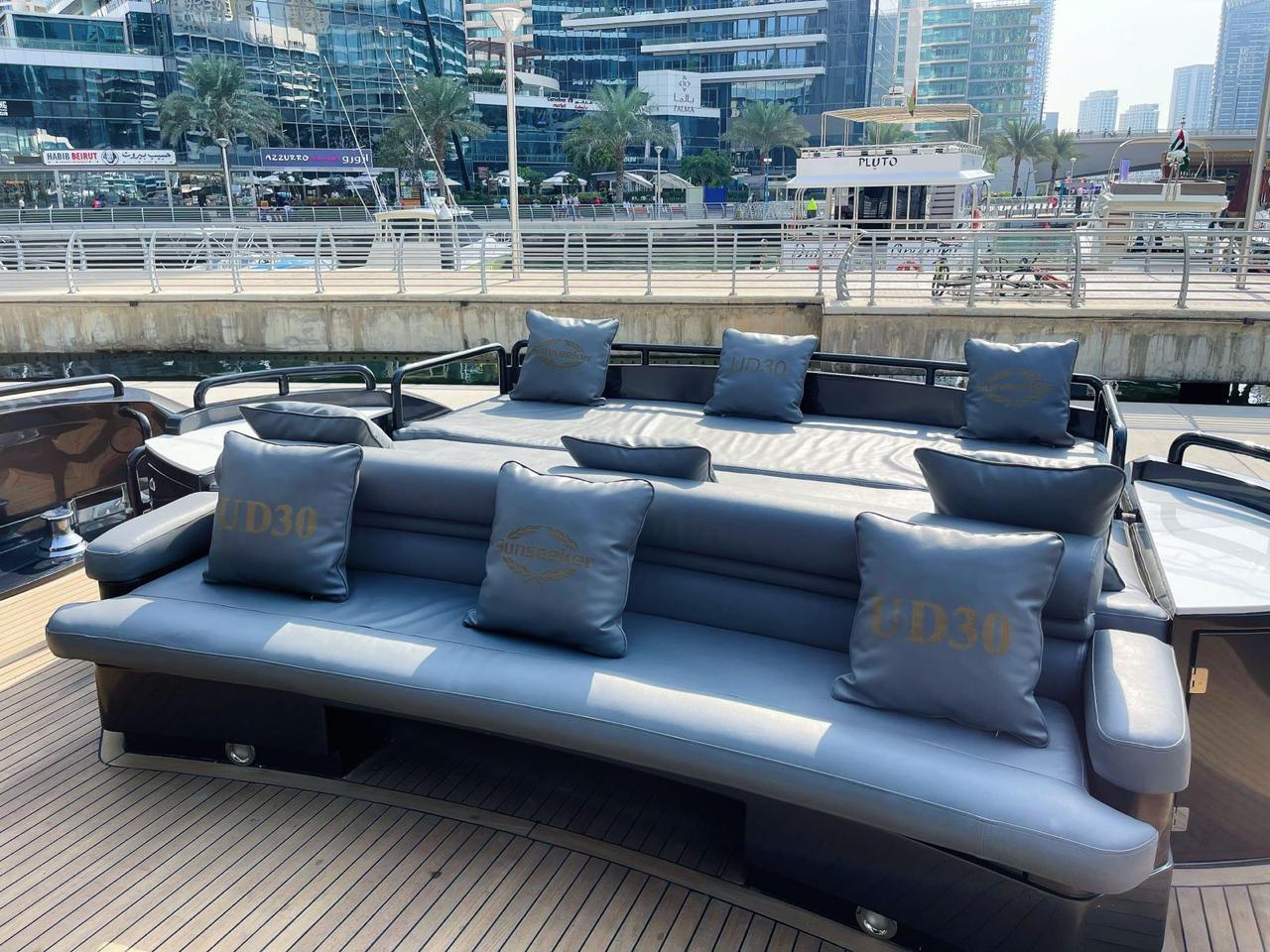 also has a lighting/sound system that transforms the space into a starlit disco so you can dance the night away. For a tranquil escape, there is a large sunpad and sofa on the bow.