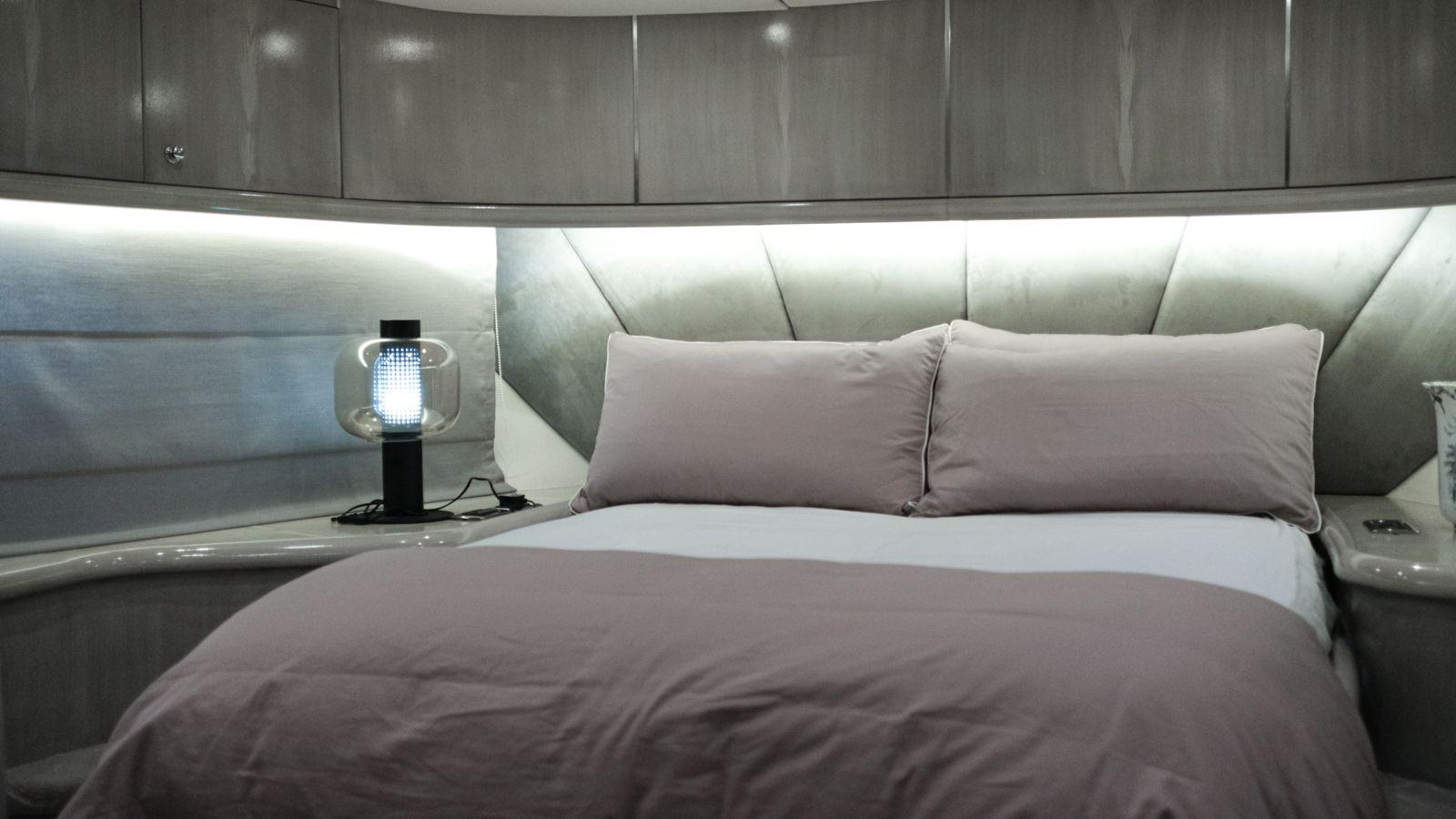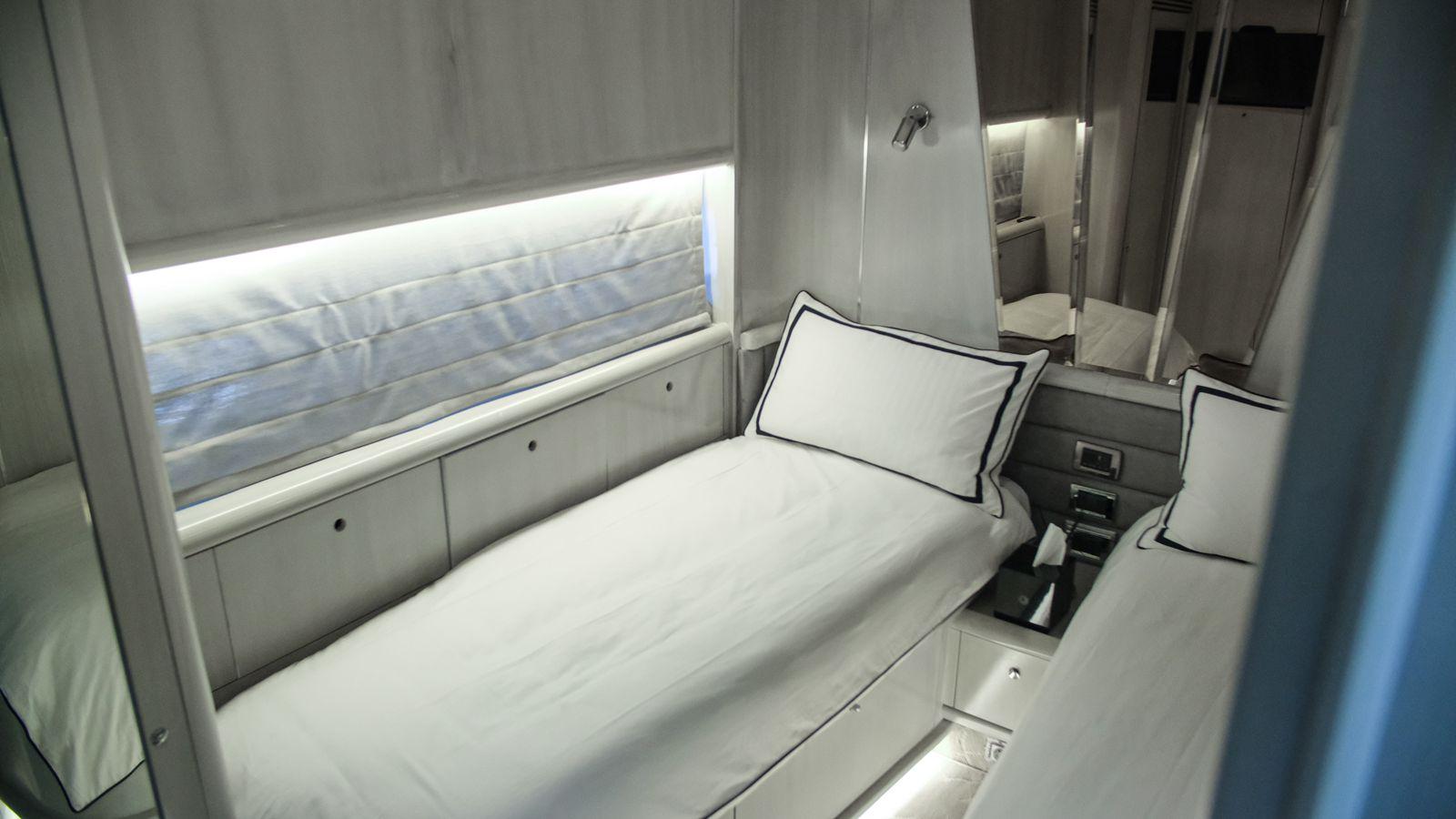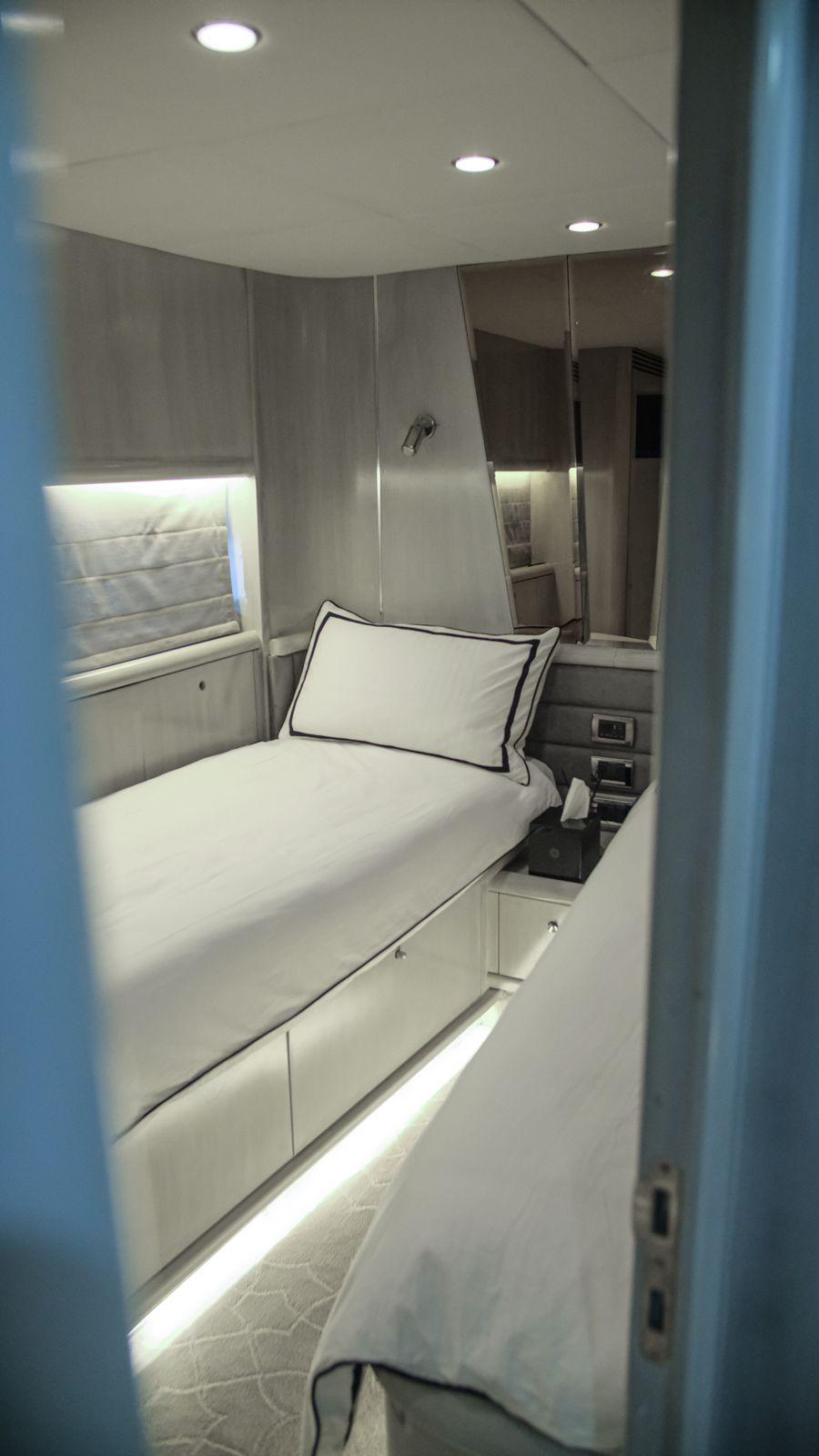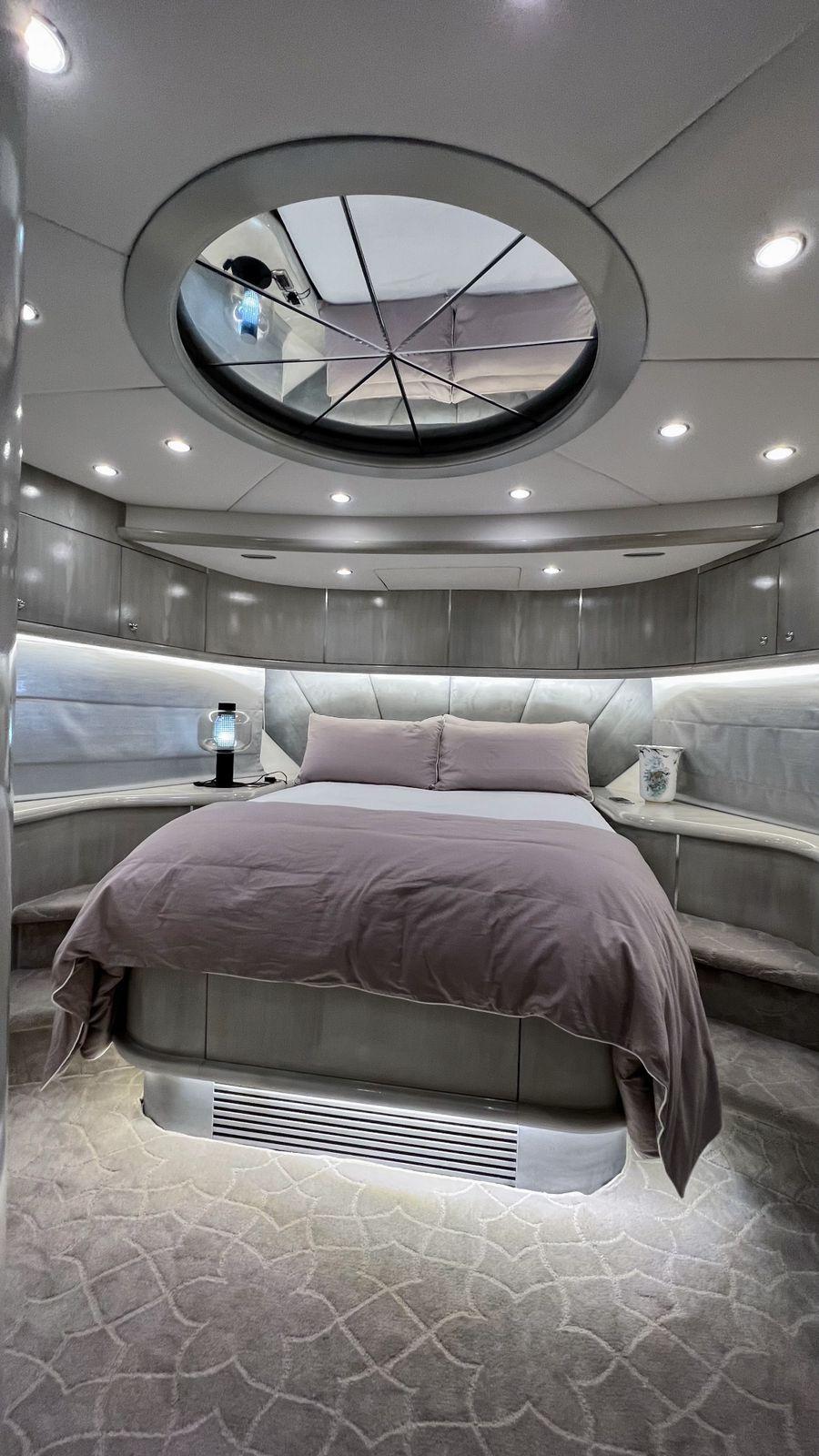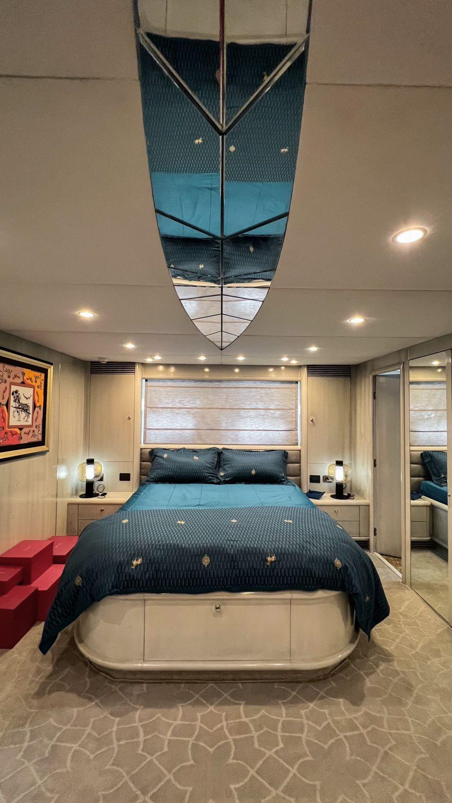 also has a lighting/sound system that transforms the space into a starlit disco so you can dance the night away. For a tranquil escape, there is a large sunpad and sofa on the bow.
