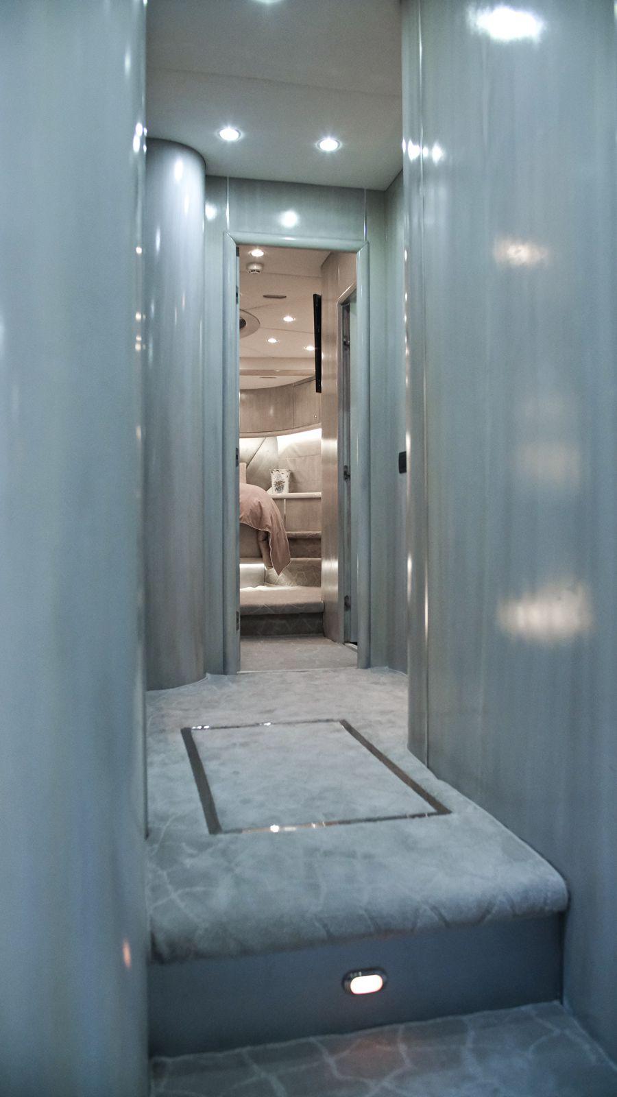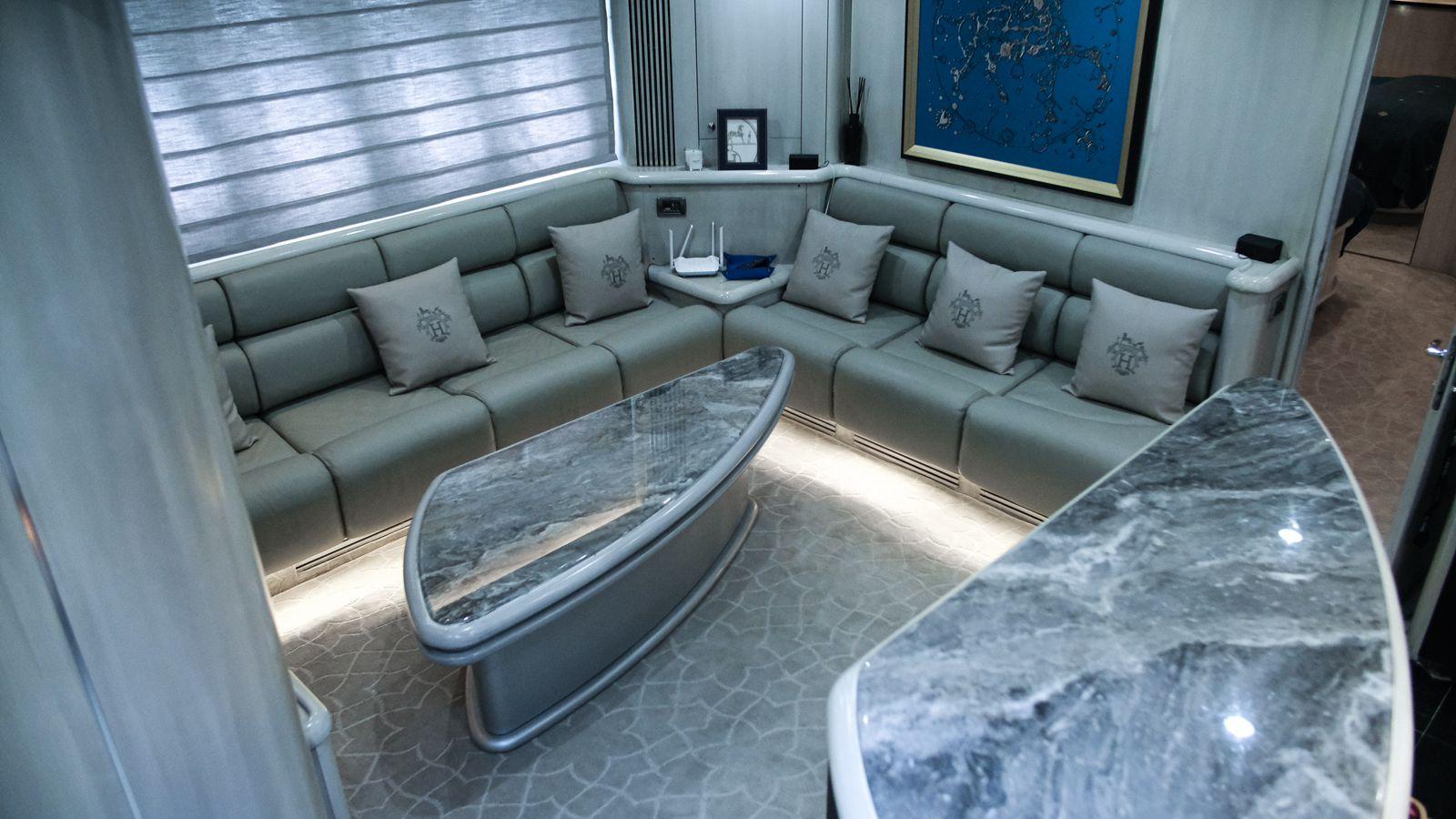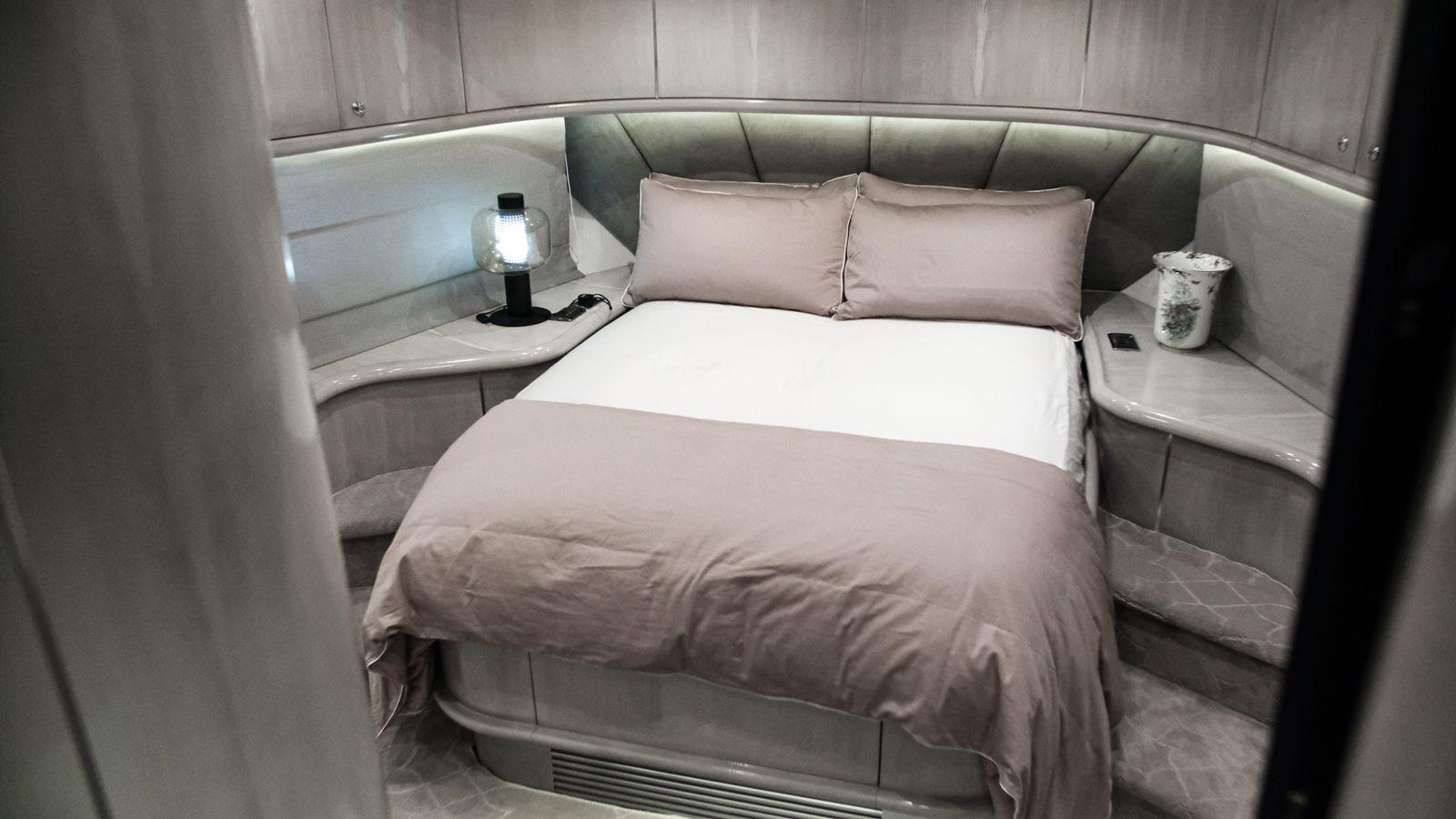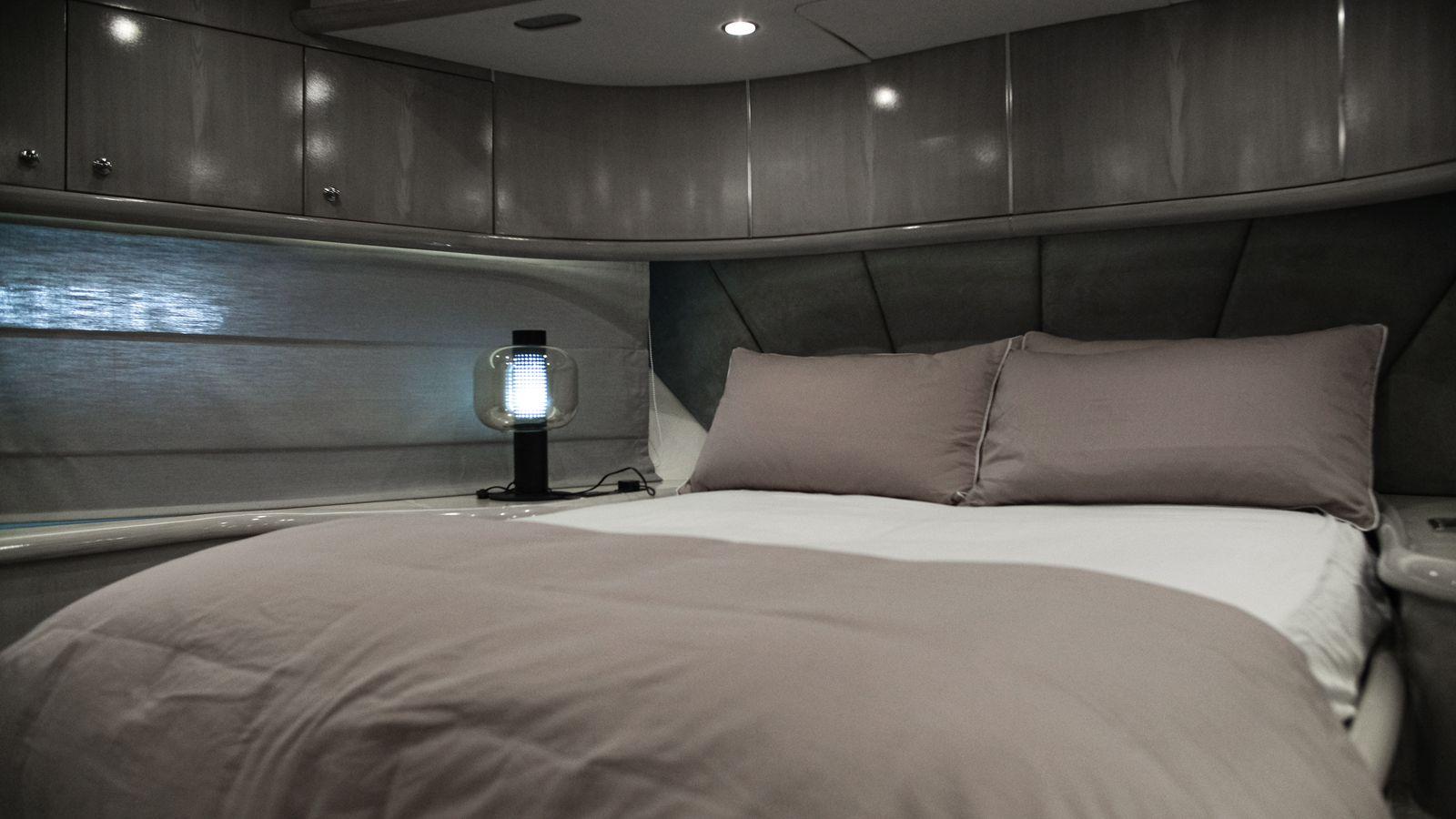 also has a lighting/sound system that transforms the space into a starlit disco so you can dance the night away. For a tranquil escape, there is a large sunpad and sofa on the bow.