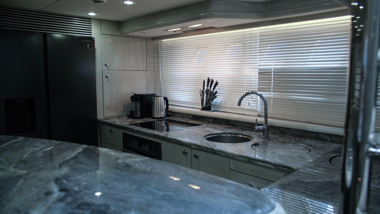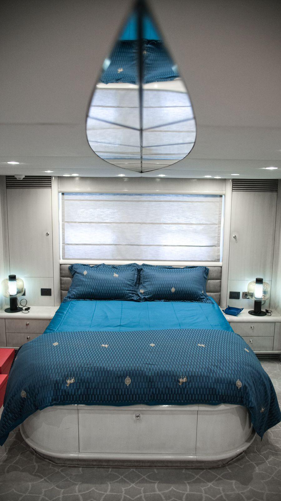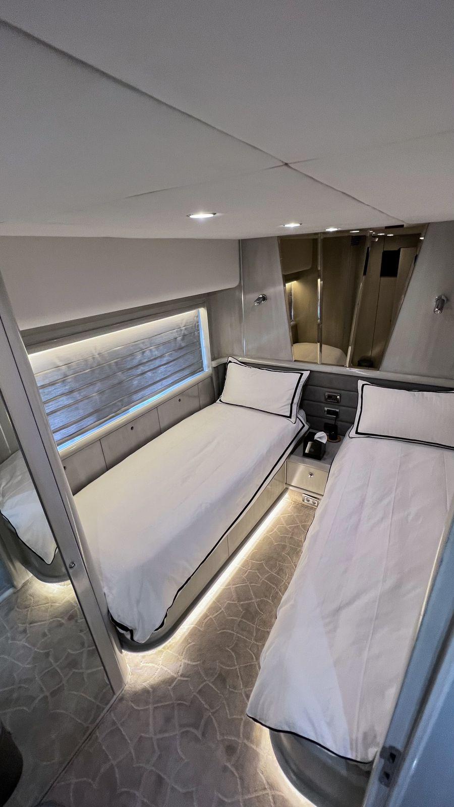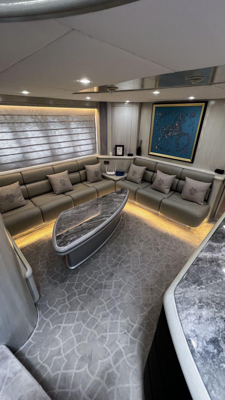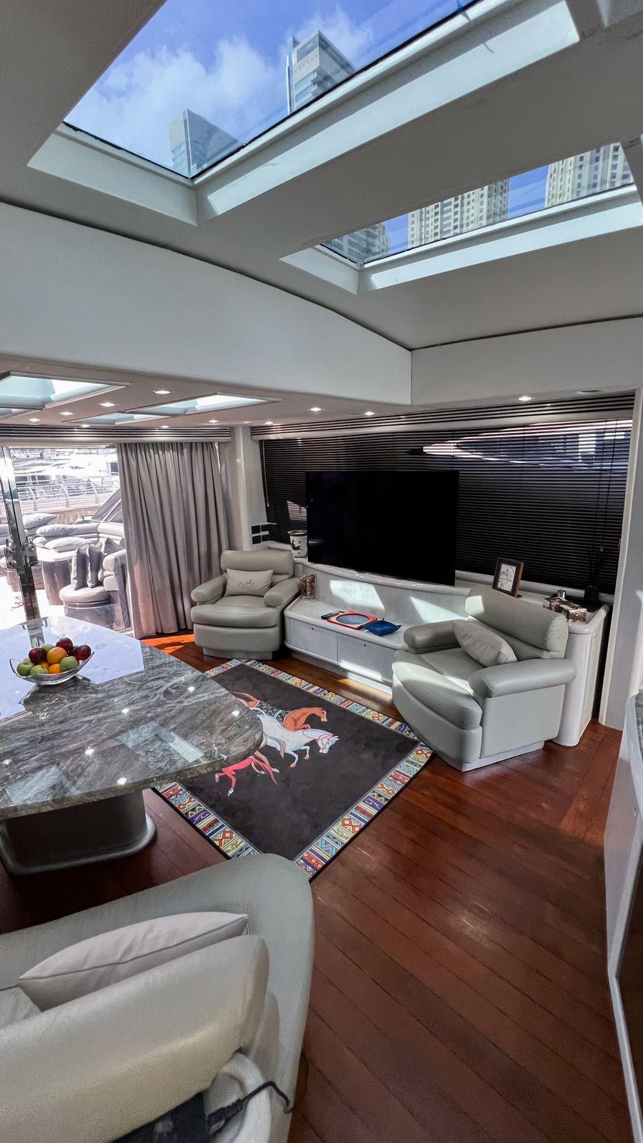 "Full respray 2021" offers a huge living area created by the seamless blending of the deck saloon into the extensive aft cockpit.Outdoors, the aft deck beach club, which can be accessed via sliding glass doors from the main level salon, includes a settee, a U-shaped lounge and table for al fresco dining, and oversized sunpads for catching some rays.The