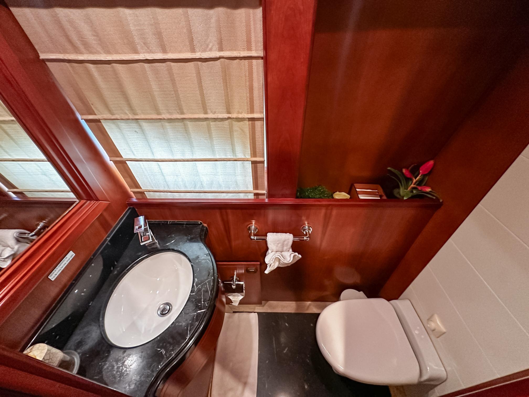 Highly specified from new, this stunning superyacht accommodates up to 10 guests in five luxurious en-suite staterooms. The main deck master suite has been ingeniously retrofitted as a mahjong and games room, offering a unique entertainment space. This transformation is fully reversible, allowing for easy restoration to its original opulent master cabin. On the lower deck, you'll find two expansive full-beam VIP cabins and two additional guest cabins, each equipped with pullman beds for added flexibility.