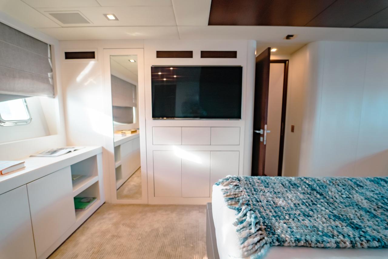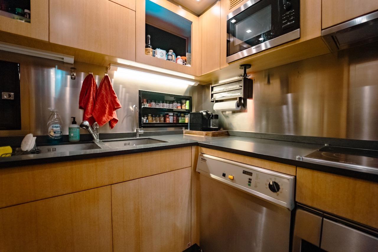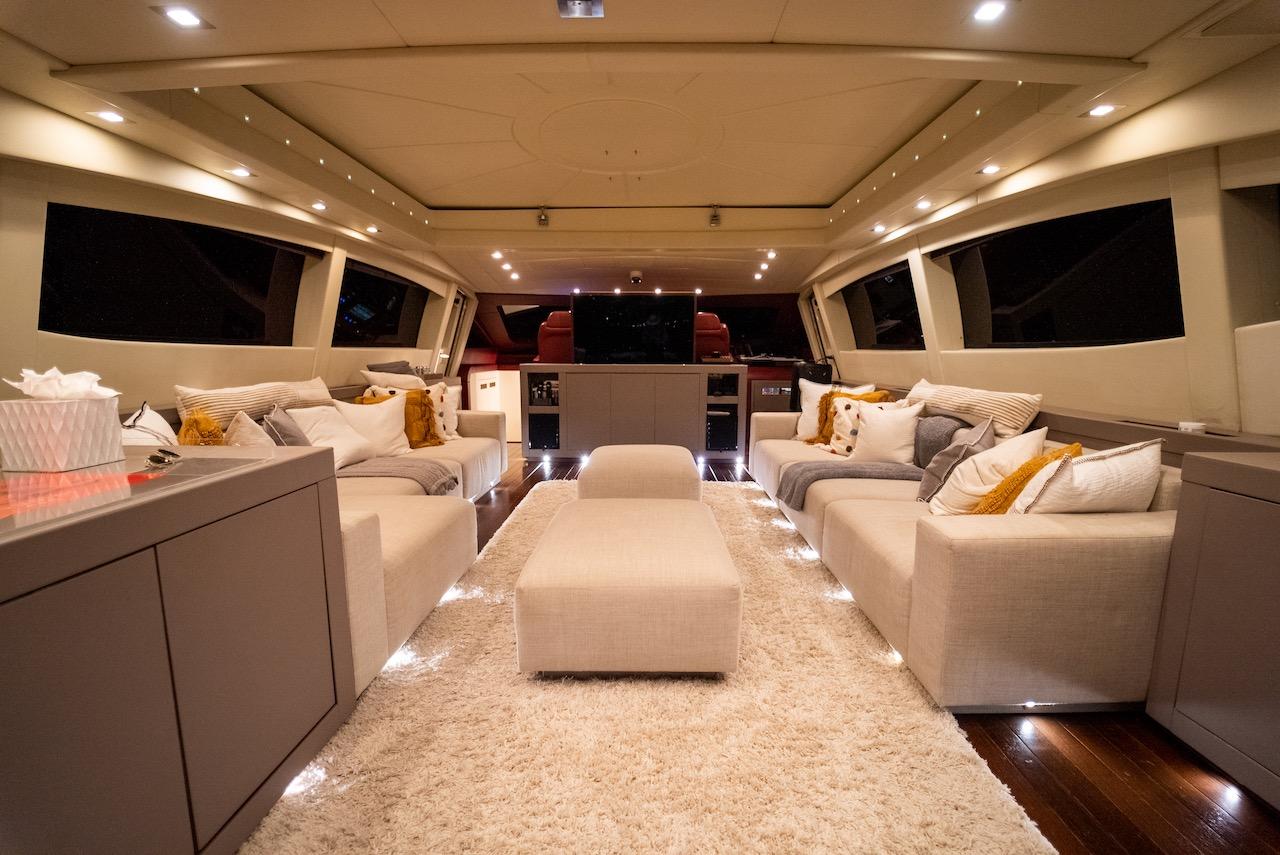 M/Y HOUDINI is an entertainer's dream boasting a spacious and luxurious saloon complemented by a huge flat screen TV, state of the art AV with a commercial Karaoke System. All surrounded by panoramic picture windows, and a sunroof fitted with fiber optic lighting. The main salon lounge area has been completely redone with a modern minimalist feel giving the impression of a clean open space.