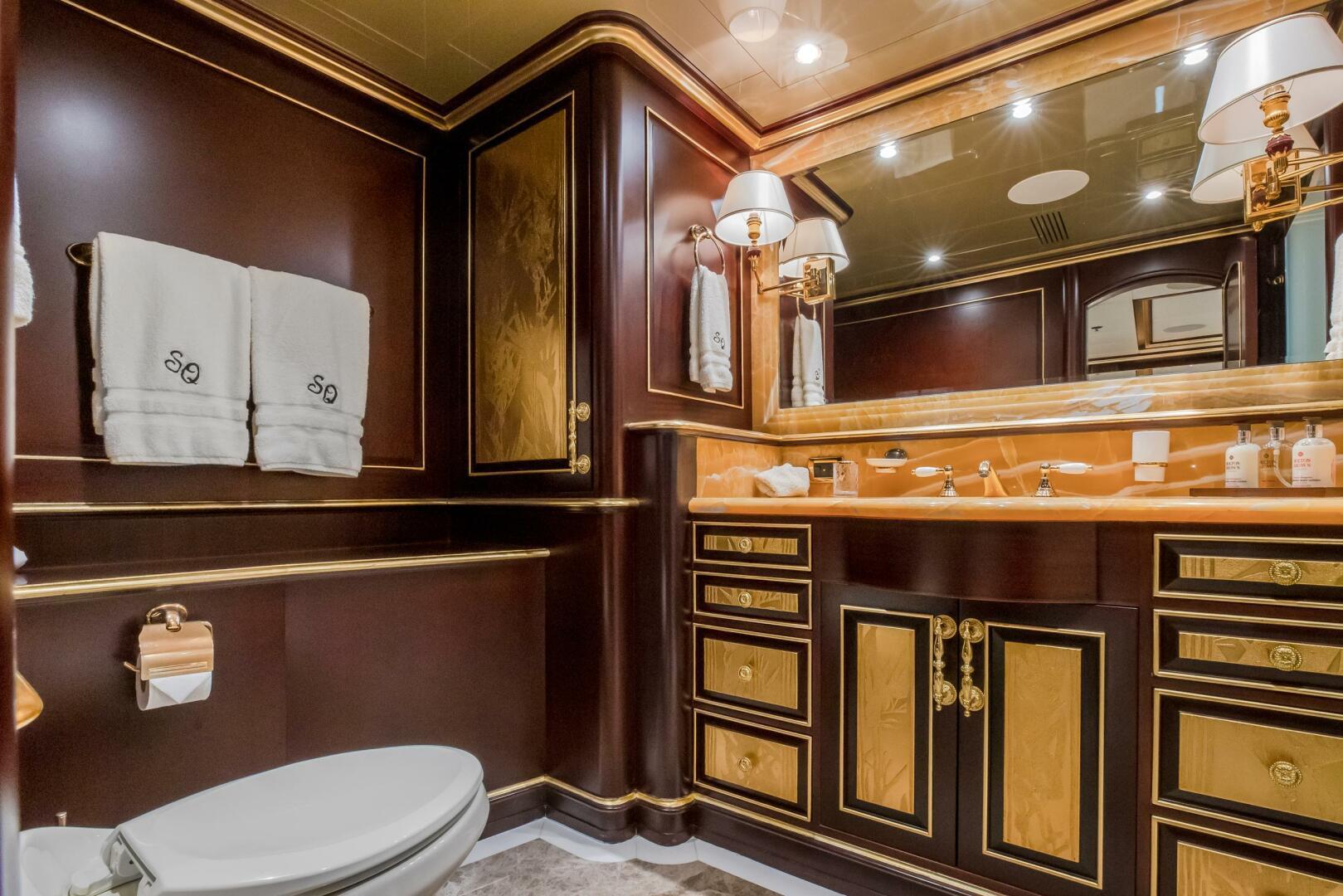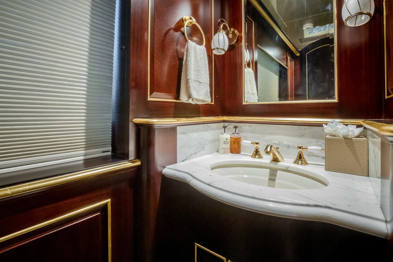 STATUS QUO has a classically styled interior with rich dark cabinetry and wall paneling accented with detailed inlay and contrasted by light ceilings, furniture, carpets and rugs. Marble and Onyx floors and counter tops add to the feel of quality. This yacht has surprising internal and external volume for her size with plenty of space for a full complement of 12 guests. Accommodation is provided in six lavish cabins, with the large Owner's suite situated on the main deck.