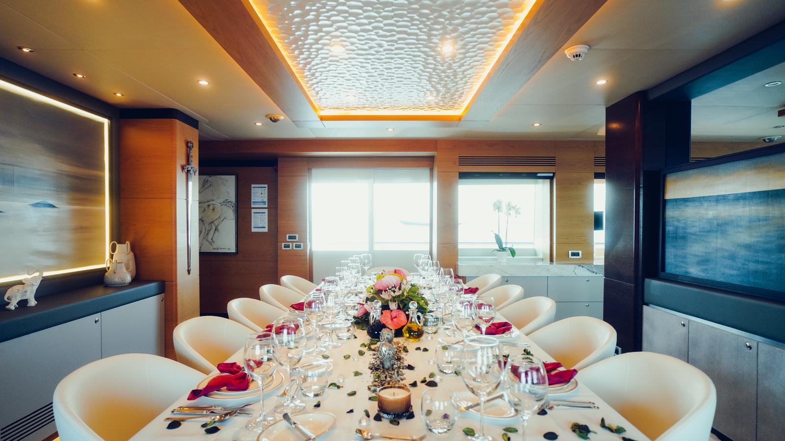 Four large sized guest cabins, all providing spectacular views through the outstanding, large portholes, providing guests with a sense of space and airiness which perfectly adds to the light and modern interior design. Each cabin is provided with king size beds, en suite bathrooms and flat screen TVs. Two guest cabins also boast additional Pullman beds, providing space to a total of twelve.