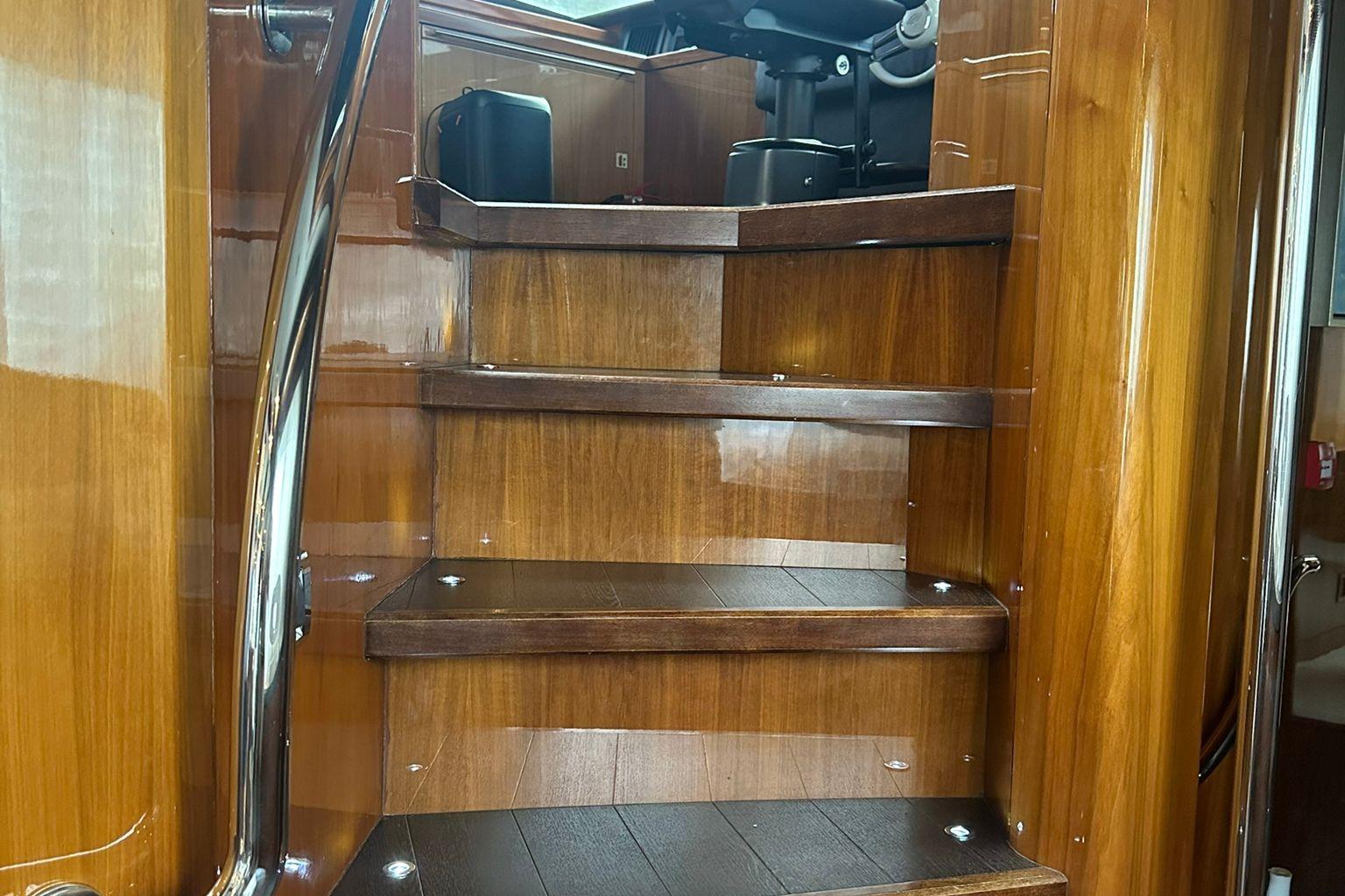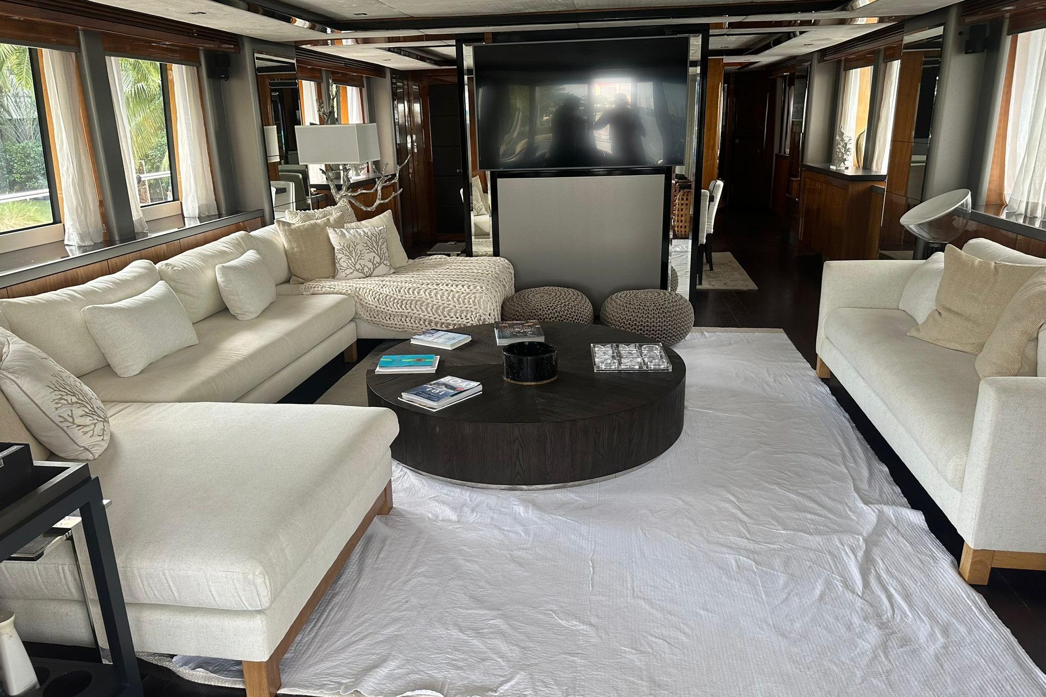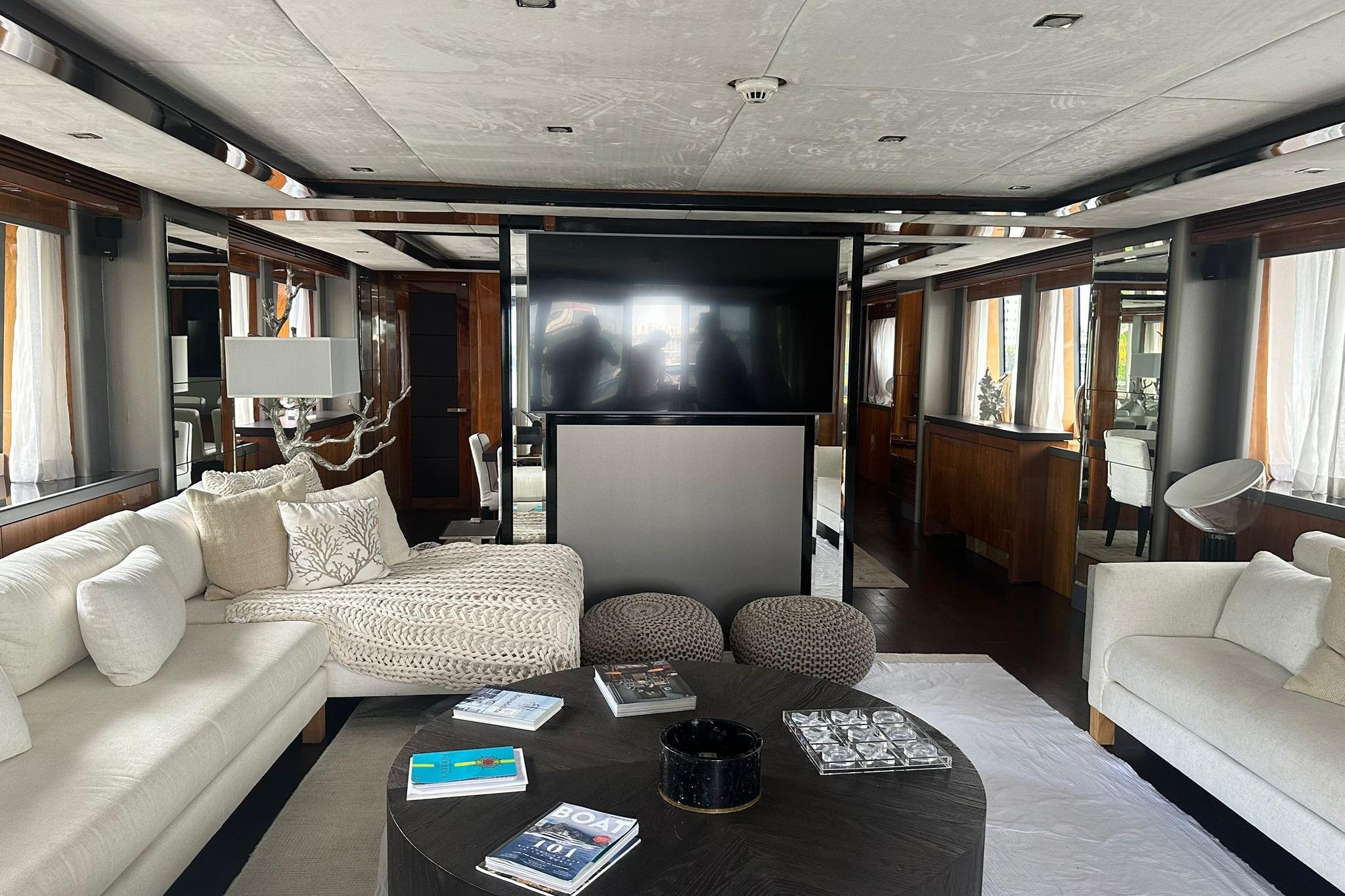 The streamlined profile, accented by stainless steel details, exhibits modern elegance. Its long windows provides much sun light to the interior as well. Sophistication is the main word when it comes to its interior, refined materials can be found all over the vessel.