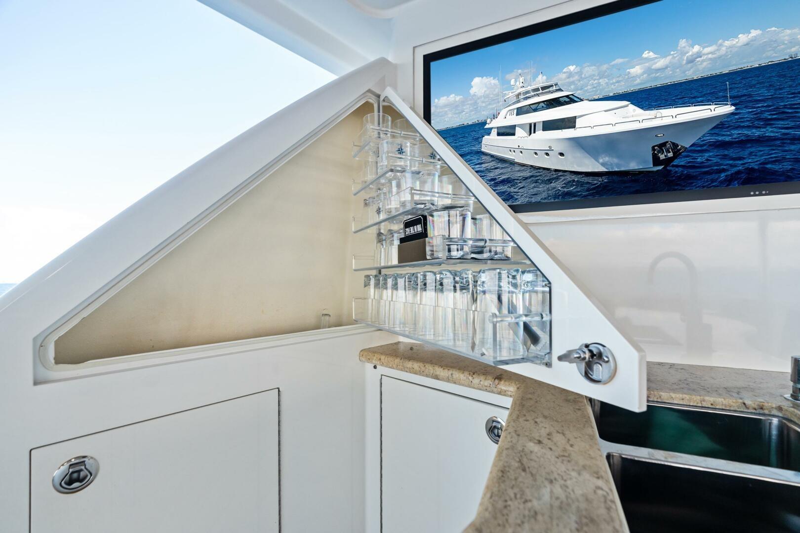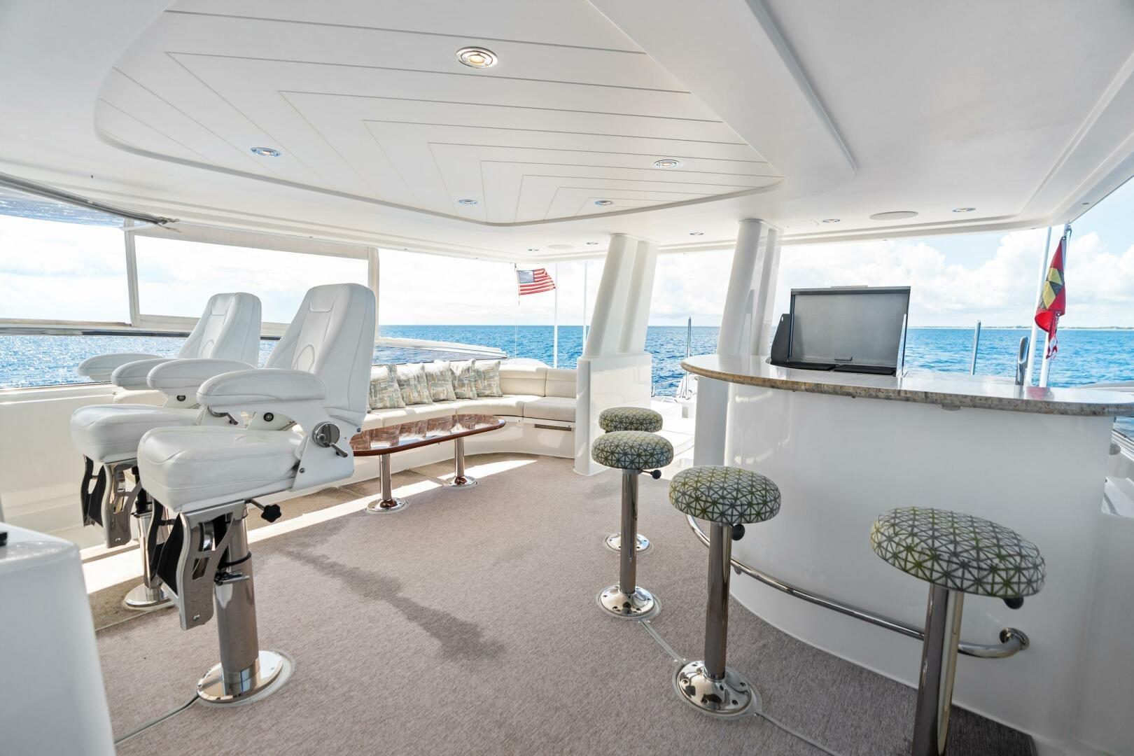 • Expansive flybridge with spa, bar, and tender deck with 2,500 lb. davit