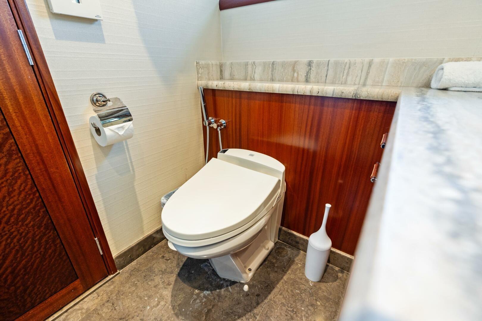 • Master bath, guest baths, and on-deck head feature Toto multifunction toilets