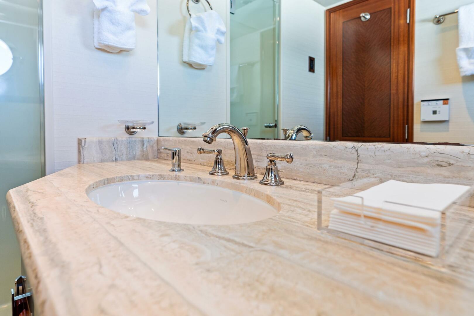 YES features a wide-transom design and spacious decks that offer inviting outdoor living, from dining aft to relaxing in the spa and enjoying the bar on the flybridge. Every detail reflects a high standard of care, from the upgraded Savant control system to the polished anchor pockets. The yacht has been kept in pristine condition and is truly ready for immediate enjoyment. Located in North Palm Beach, YES is available now for inspection and immediate cruising.