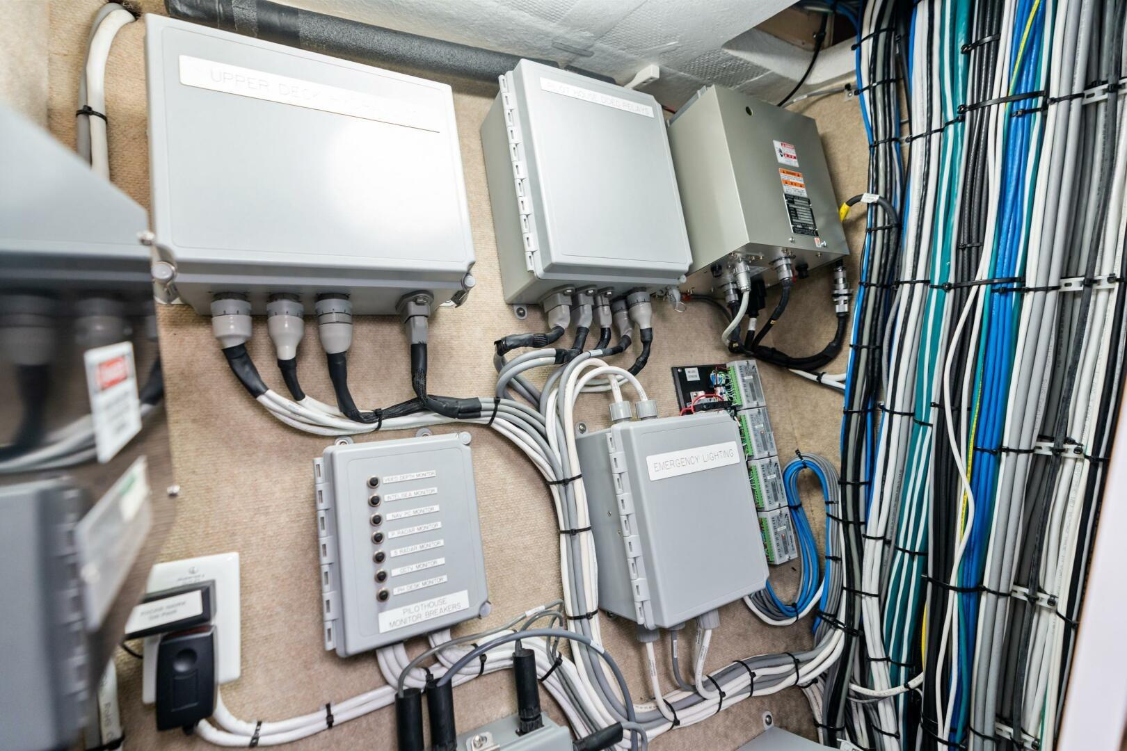 • Bilge system consists of (5) remote mounted bilge float switches and Intelisea alarms fixed bilge pump system includes (2) 230VAC