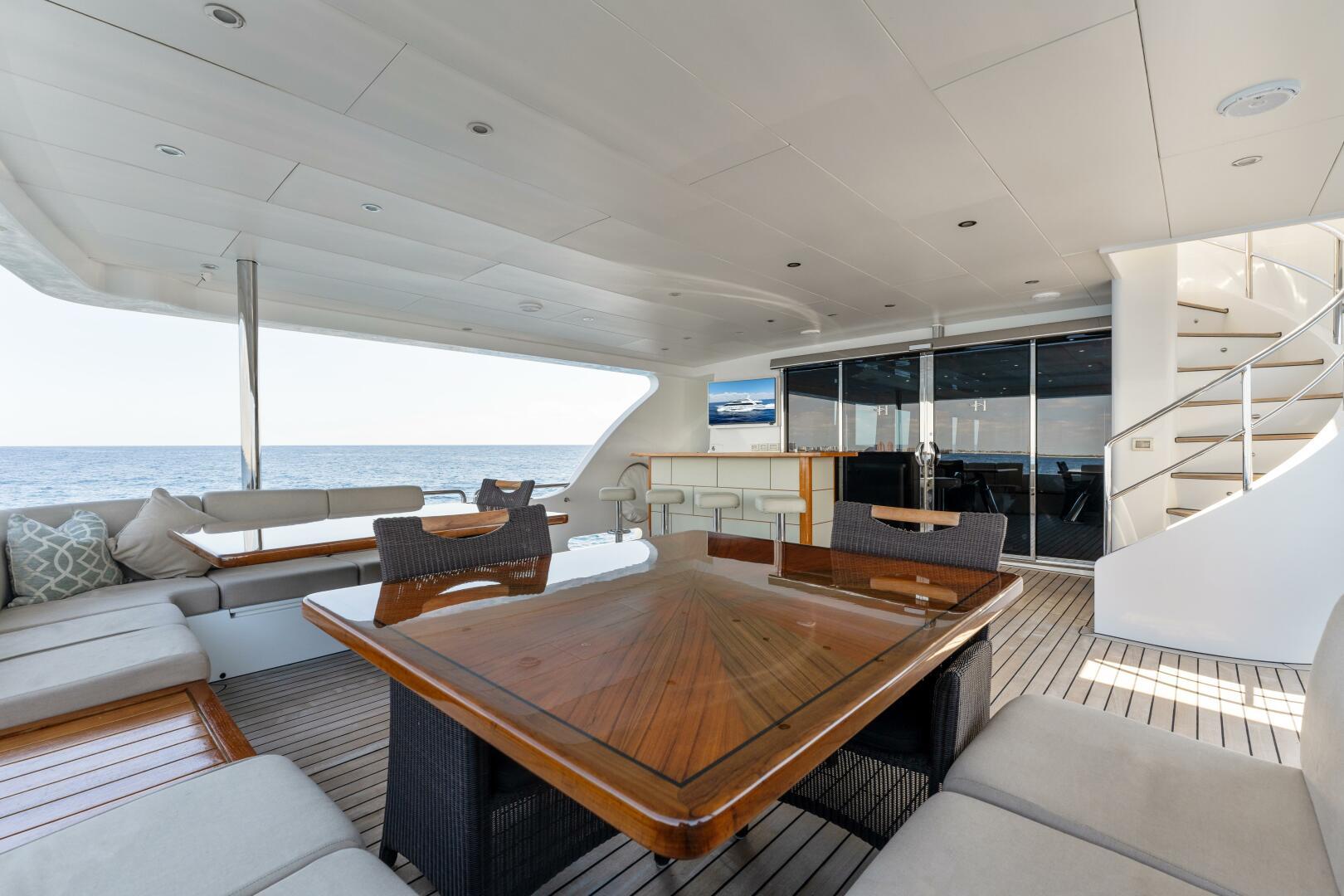 • (1) Aft Flybridge Table with Granite Top and angled table base for curved seating next to hot tub