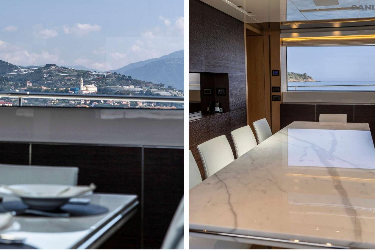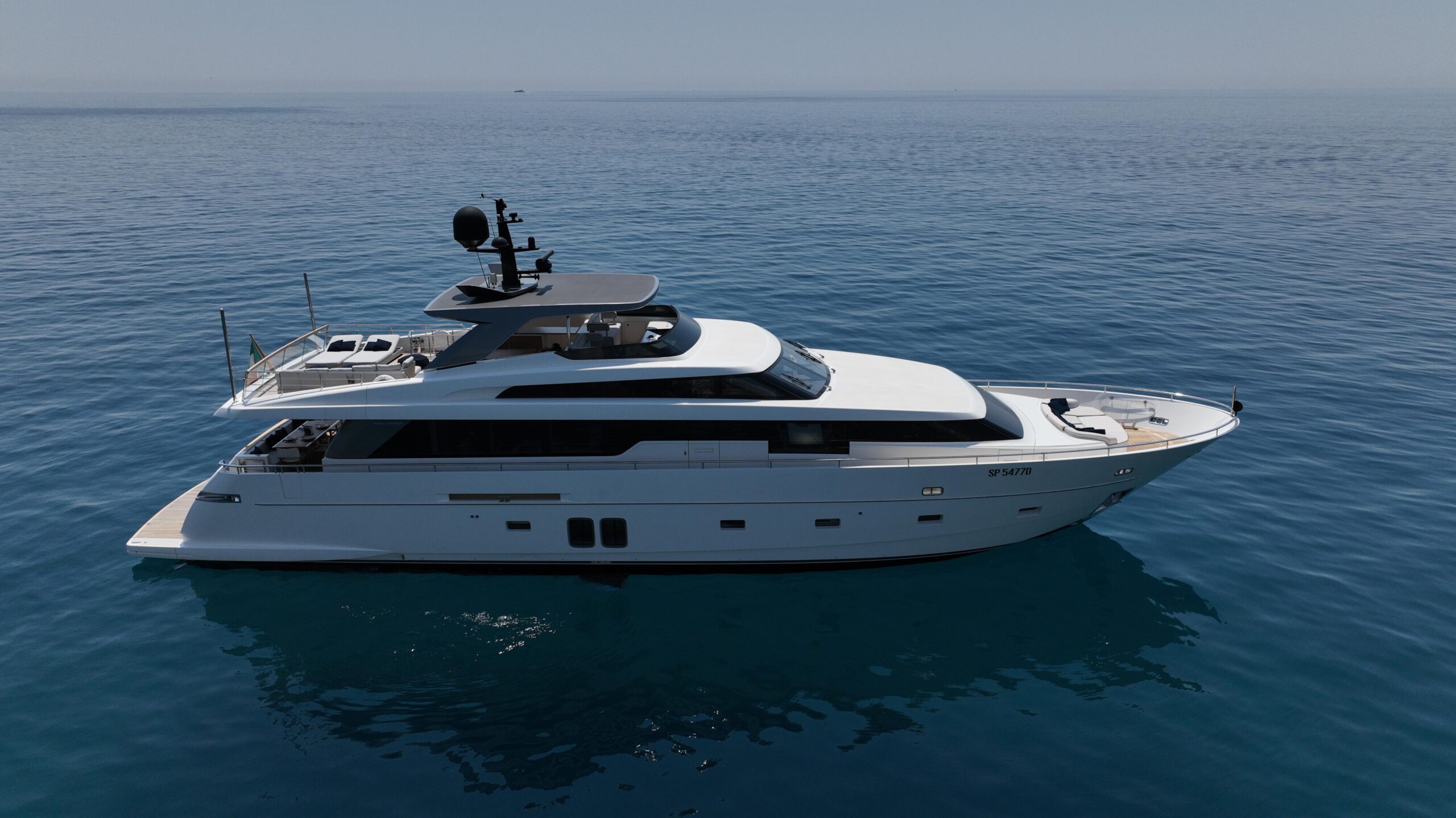 KEY FEATURES• Probably the best SL96 built to date • Presented in immaculate condition • Very low hours, yacht hardly used • 4 -Stateroom layout for 9 Guests • kitchen in main deck • Loaded with options • Zero speed stabilizers • Hydraulic swimming platform • private marble dining table in the main salon for 12 people.