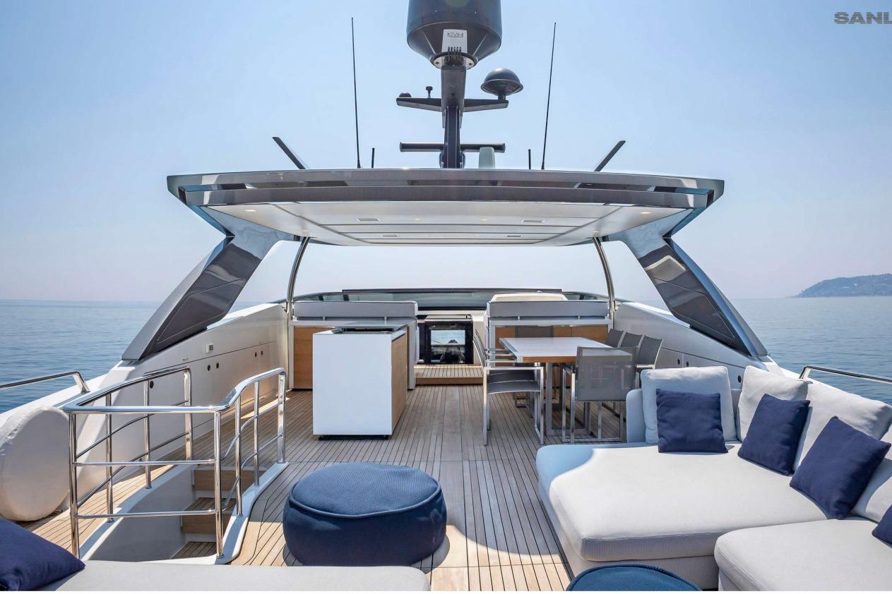 The Sanlorenzo SL 96 is a luxurious motor yacht that combines performance and style. At 29.10 meters (95.5 feet) in length and 6.75 meters (23.5 feet) in beam, it has a maximum speed of 28 knots and a cruising speed of 23 knots. Inside, the yacht is designed with a contemporary and sophisticated style, showcasing high-quality materials such as fine woods, luxurious fabrics, and elegant furnishings. The Sanlorenzo SL 96 can accommodate up to nine guests in its four cabins.