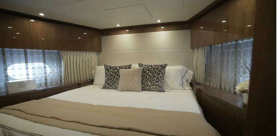 Queen berth w/ custom bedding & storage below
