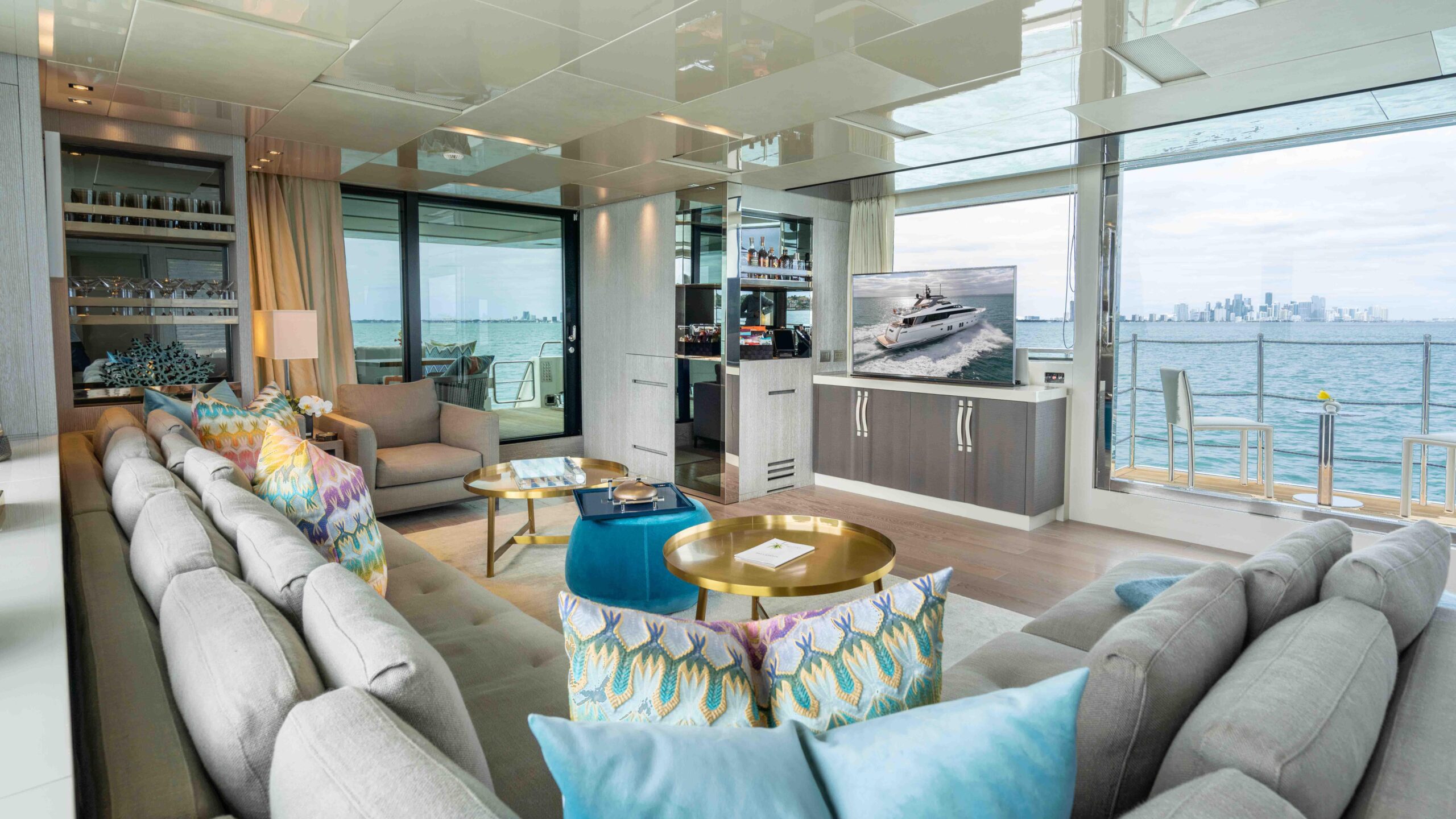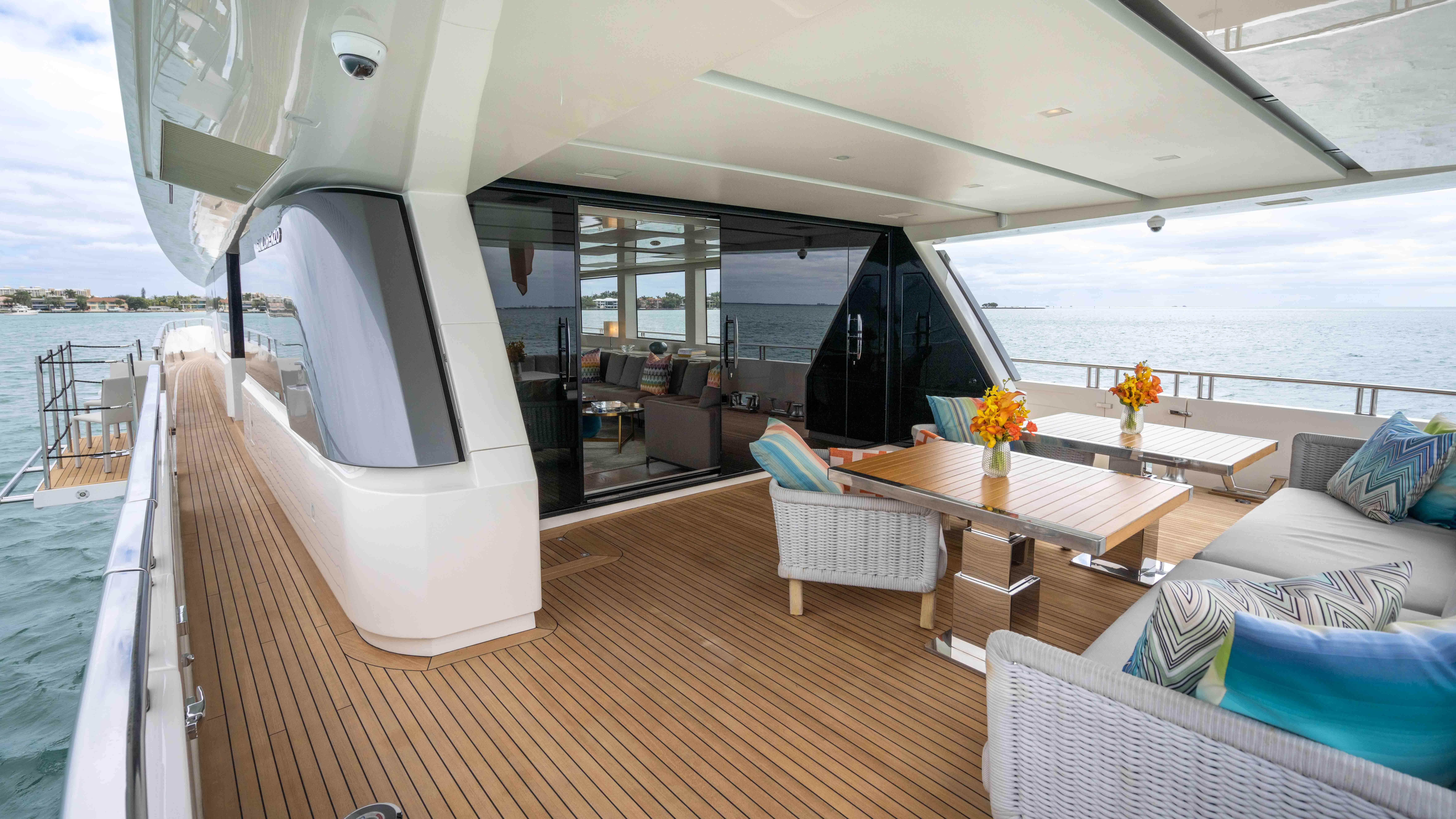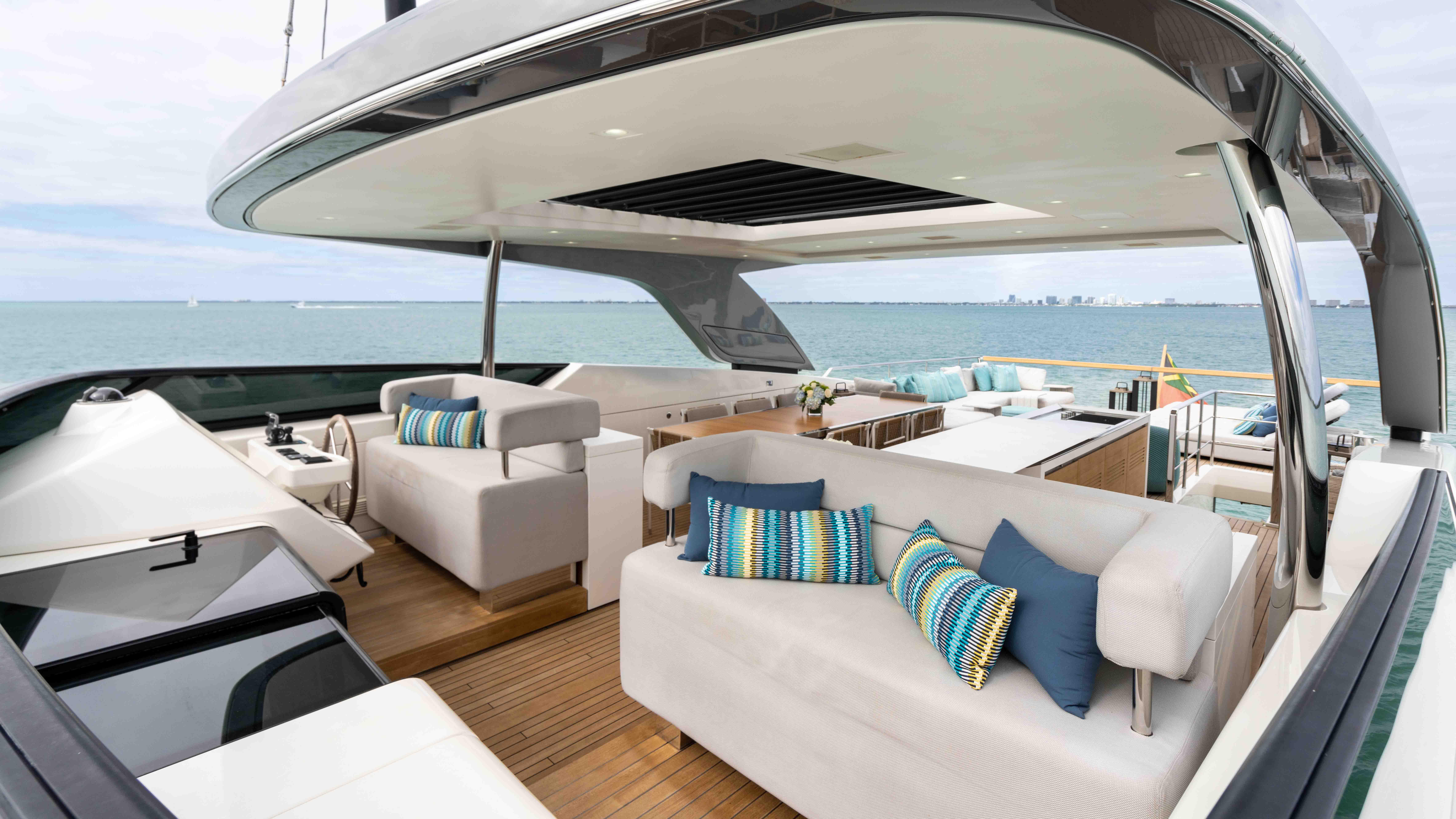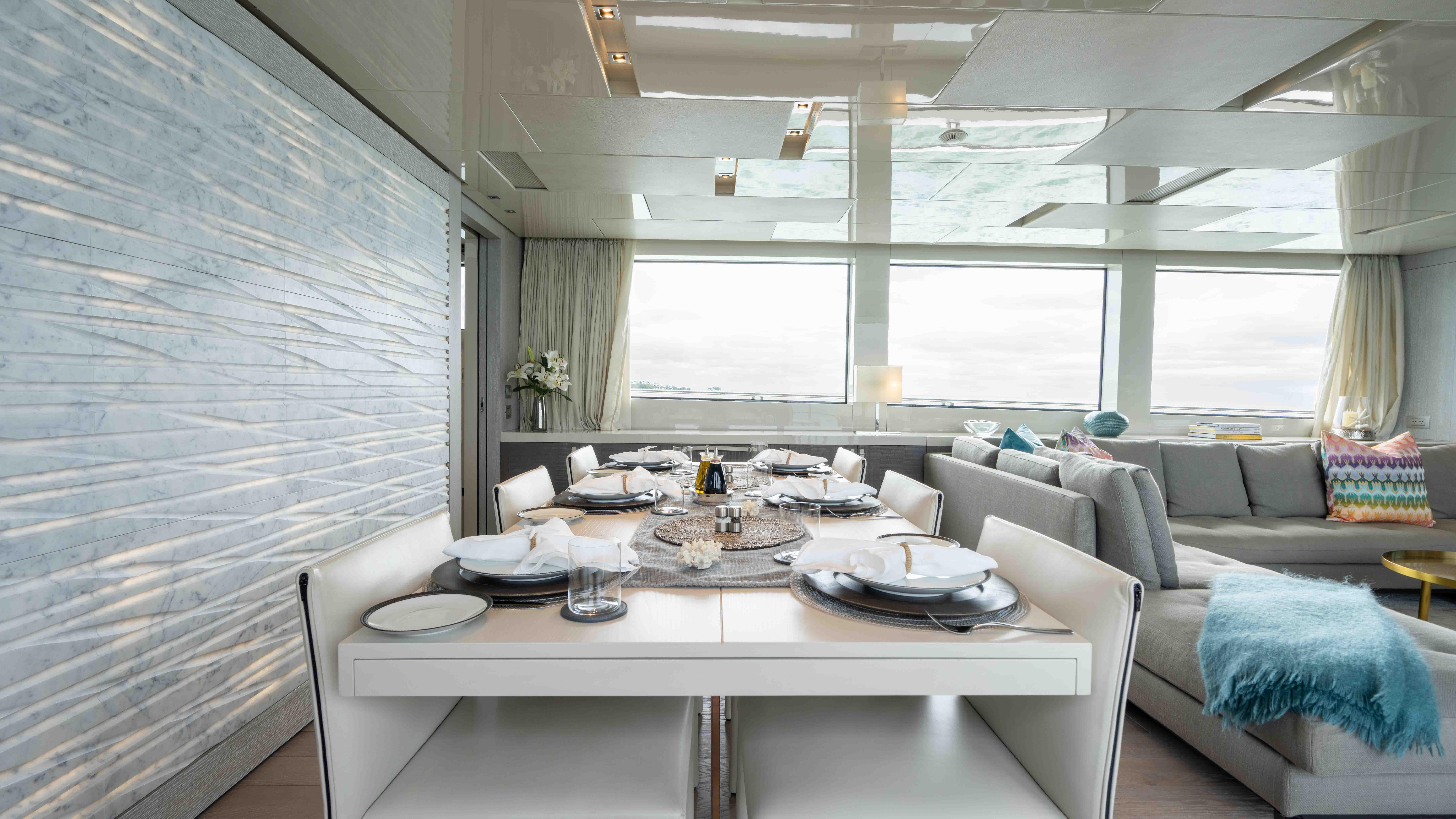 Ideal for families and couples looking for a luxury escape, HONEY POT will make everyone feel at home the moment they step aboard. Designed with a contemporary theme, the guest areas have a cool, comfortable vibe perfectly suited for unwinding. Calming natural tones accented by pops of color are found throughout the yacht. The luxury yacht's expansive windows and balcony blur the lines between inside and out, allowing for the exceptional views to take center stage while enjoying the cozy feel of the main salon.