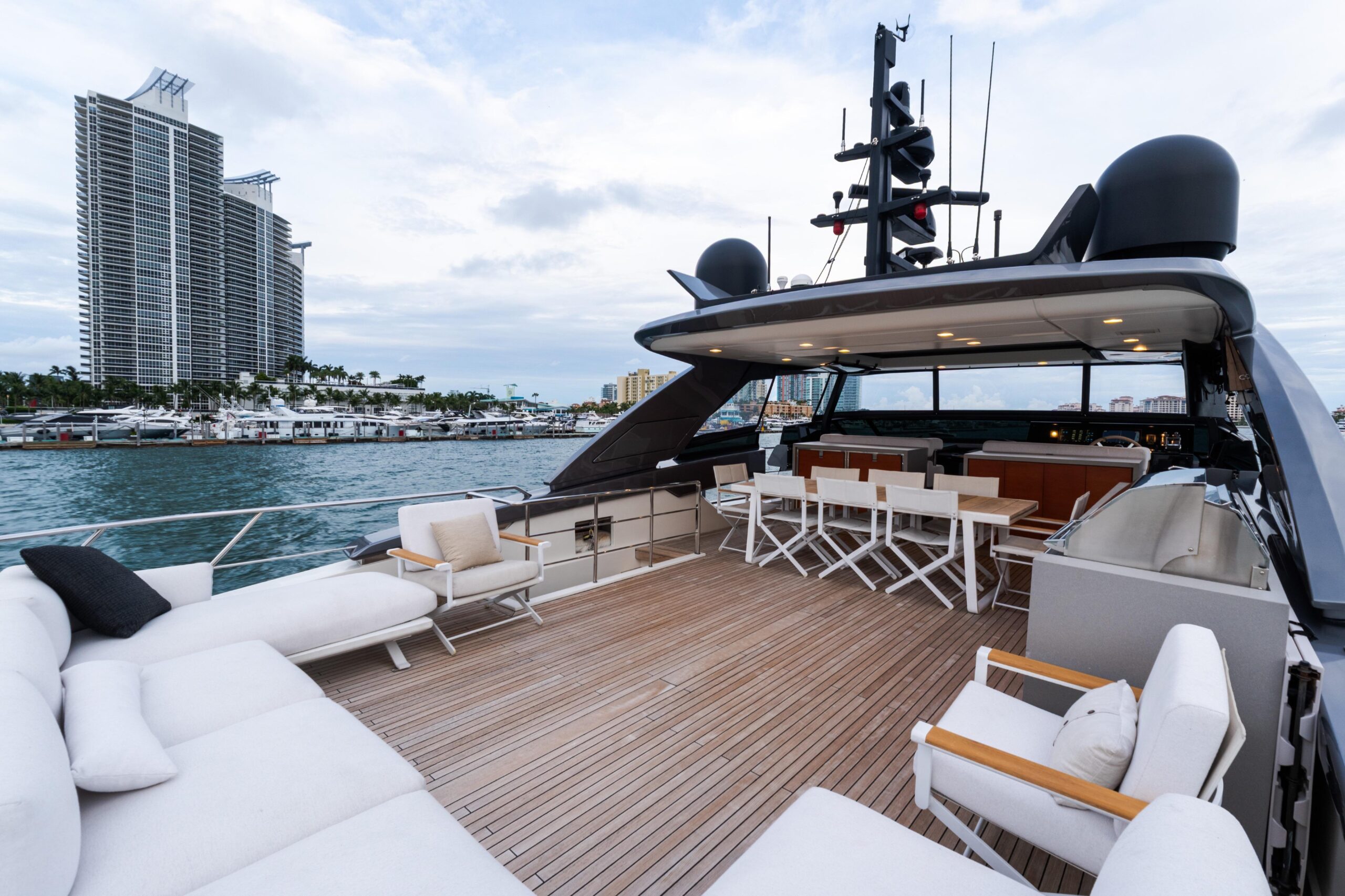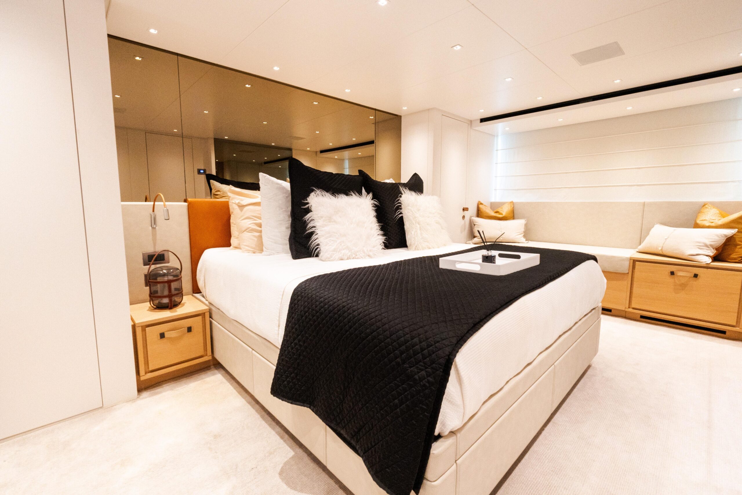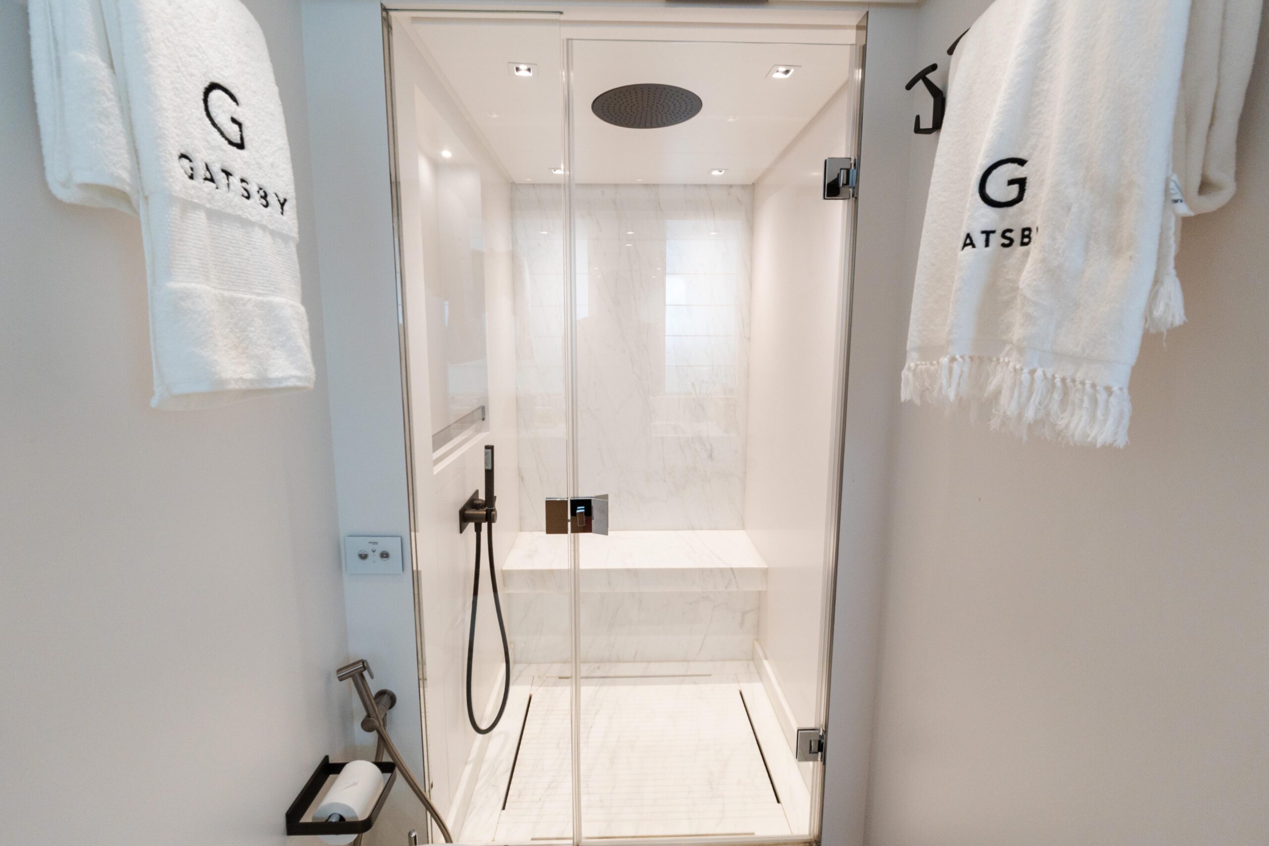 Delivered in 2021 by Sanlorenzo, GATSBY is a striking 96' SL96A motoryacht with interiors by Marty Lowe. Accommodating up to eight guests in four en-suite staterooms--including a full-beam master suite on the main deck with king bed, study, and dressing area--she offers a balance of thoughtful design and comfort. Generous outdoor spaces include a sunlit flybridge with wet bar, aft deck dining, foredeck sunpads, a hydraulic swim platform, and a tender garage fully equipped with toys. Powered by twin MTU 16V2000 M86 engines reaching speeds up to 28 knots and stabilized both underway and at anchor, GATSBY delivers a composed, responsive cruising experience--equally suited for extended passages or effortless entertaining.