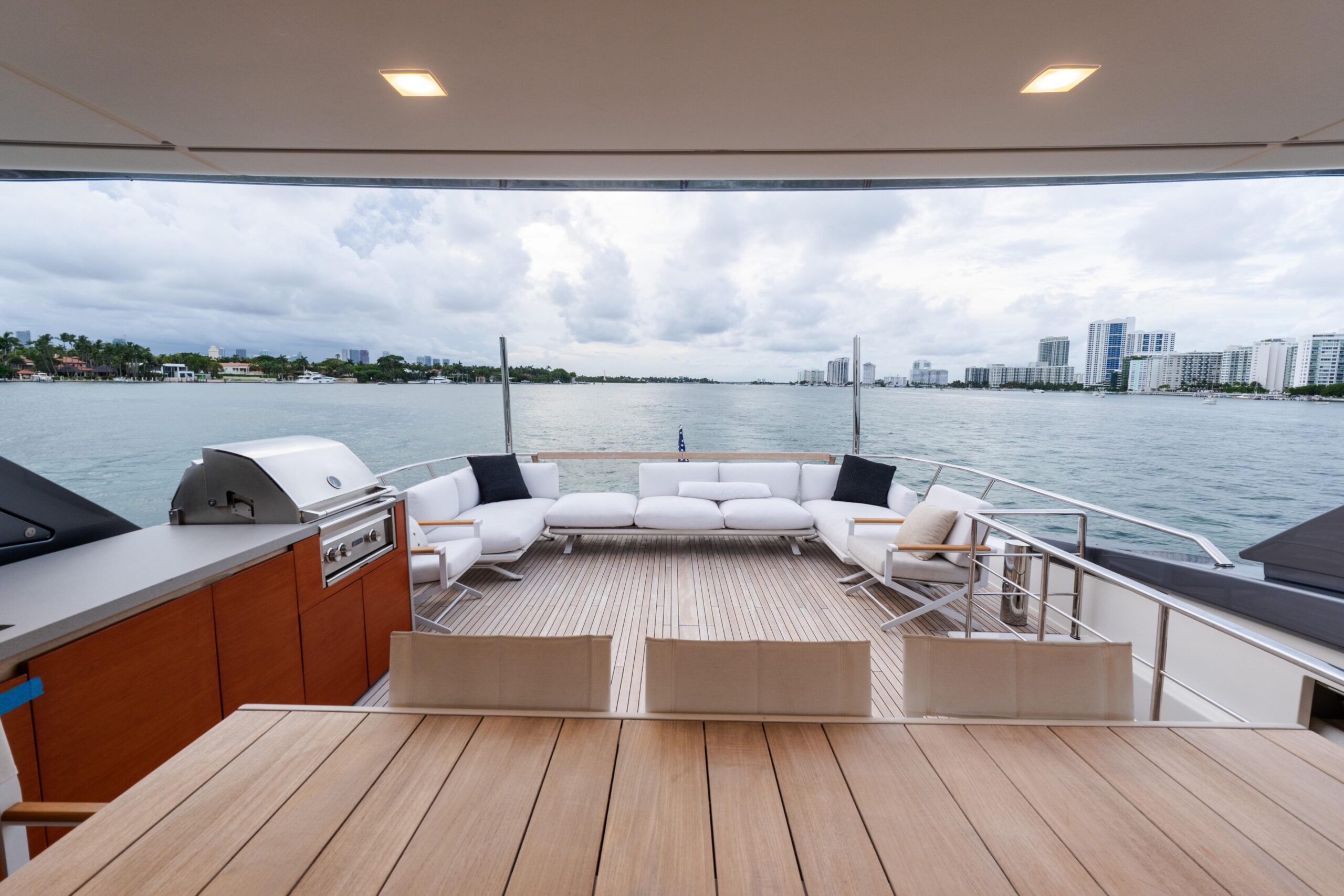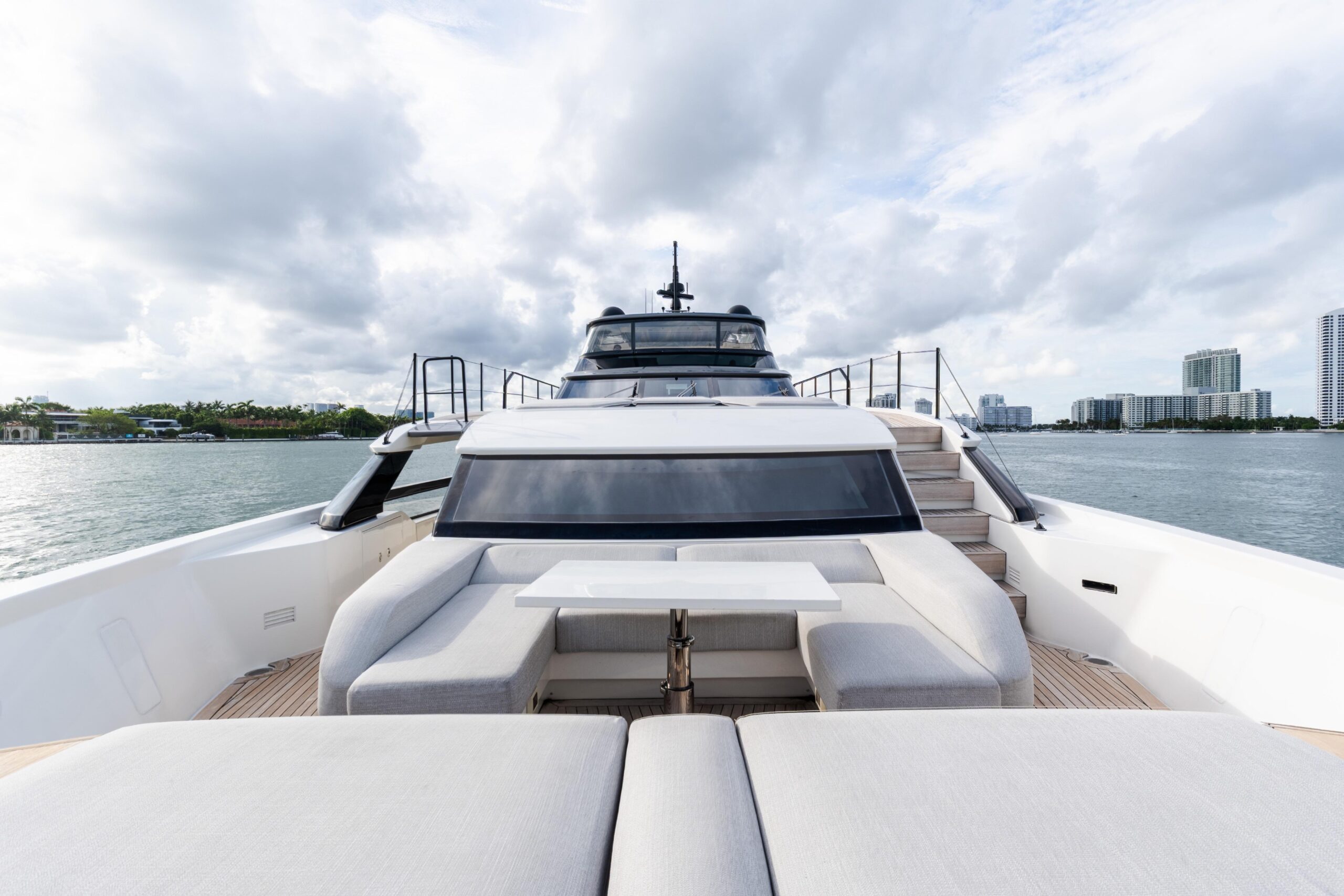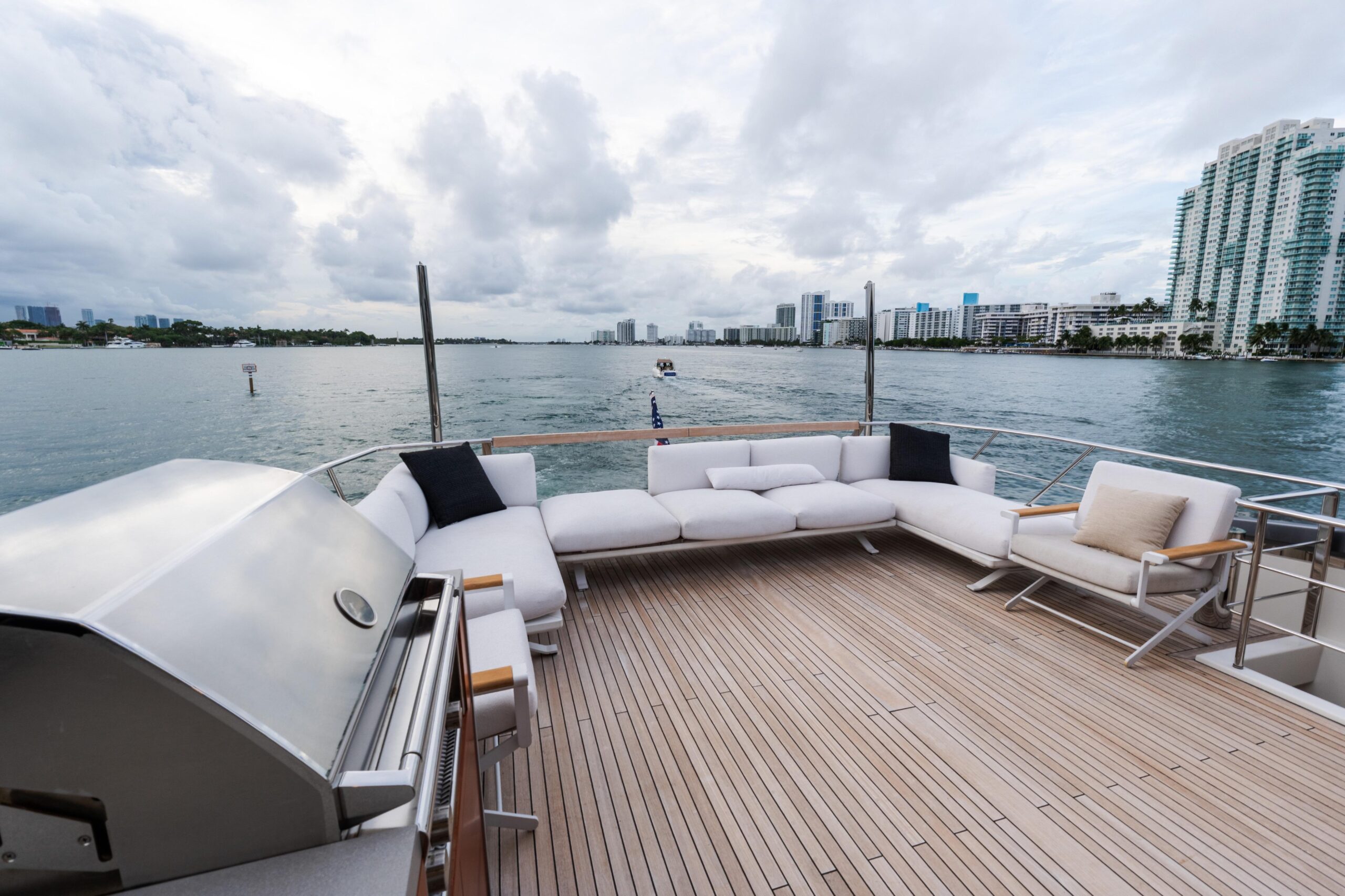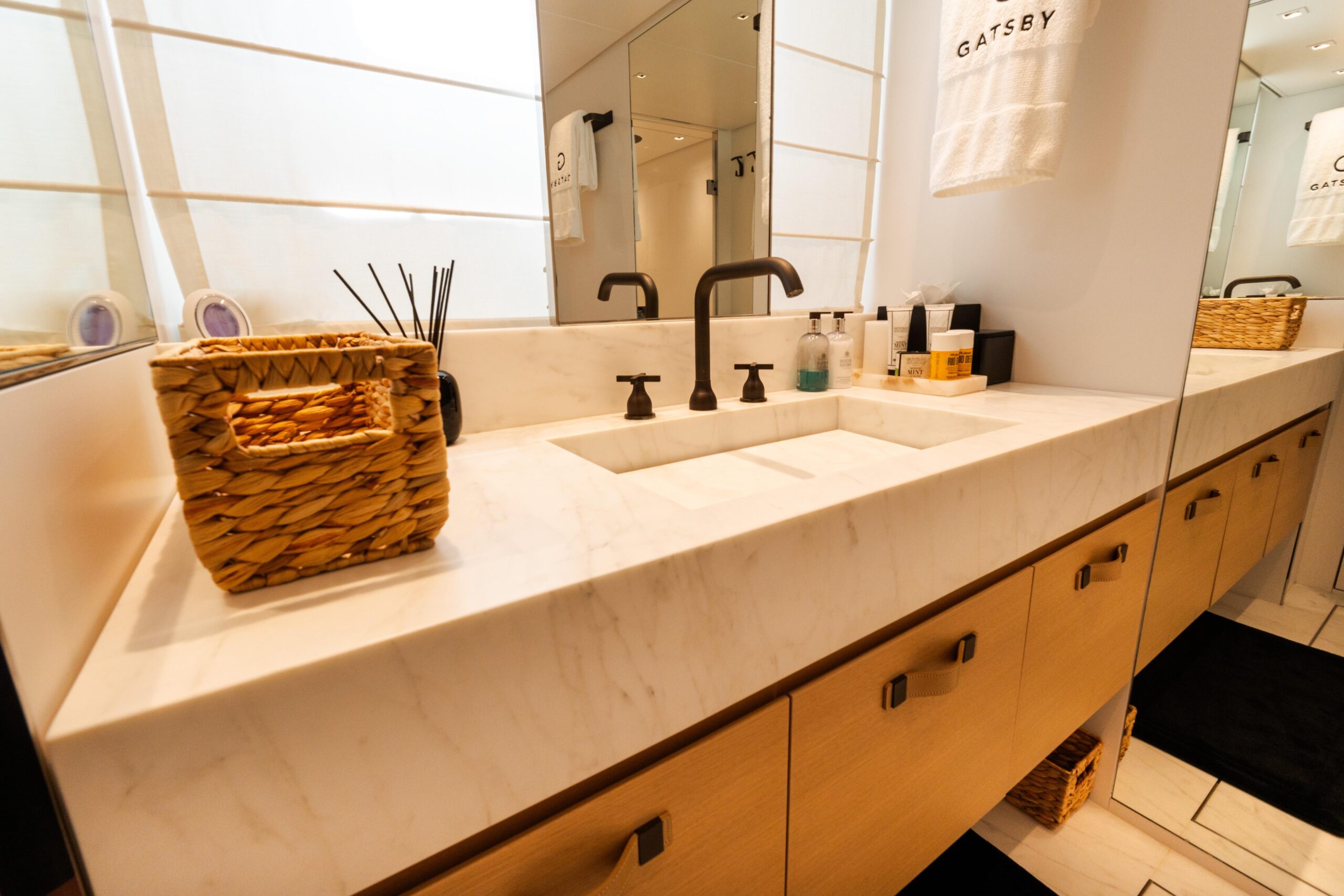 Delivered in 2021 by Sanlorenzo, GATSBY is a striking 96' SL96A motoryacht with interiors by Marty Lowe. Accommodating up to eight guests in four en-suite staterooms--including a full-beam master suite on the main deck with king bed, study, and dressing area--she offers a balance of thoughtful design and comfort. Generous outdoor spaces include a sunlit flybridge with wet bar, aft deck dining, foredeck sunpads, a hydraulic swim platform, and a tender garage fully equipped with toys. Powered by twin MTU 16V2000 M86 engines reaching speeds up to 28 knots and stabilized both underway and at anchor, GATSBY delivers a composed, responsive cruising experience--equally suited for extended passages or effortless entertaining.