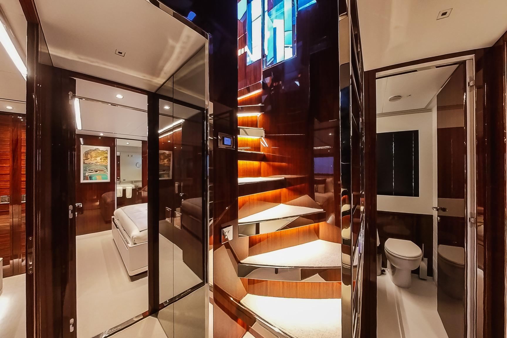 Hidden stern stairs for seamless beach club access.