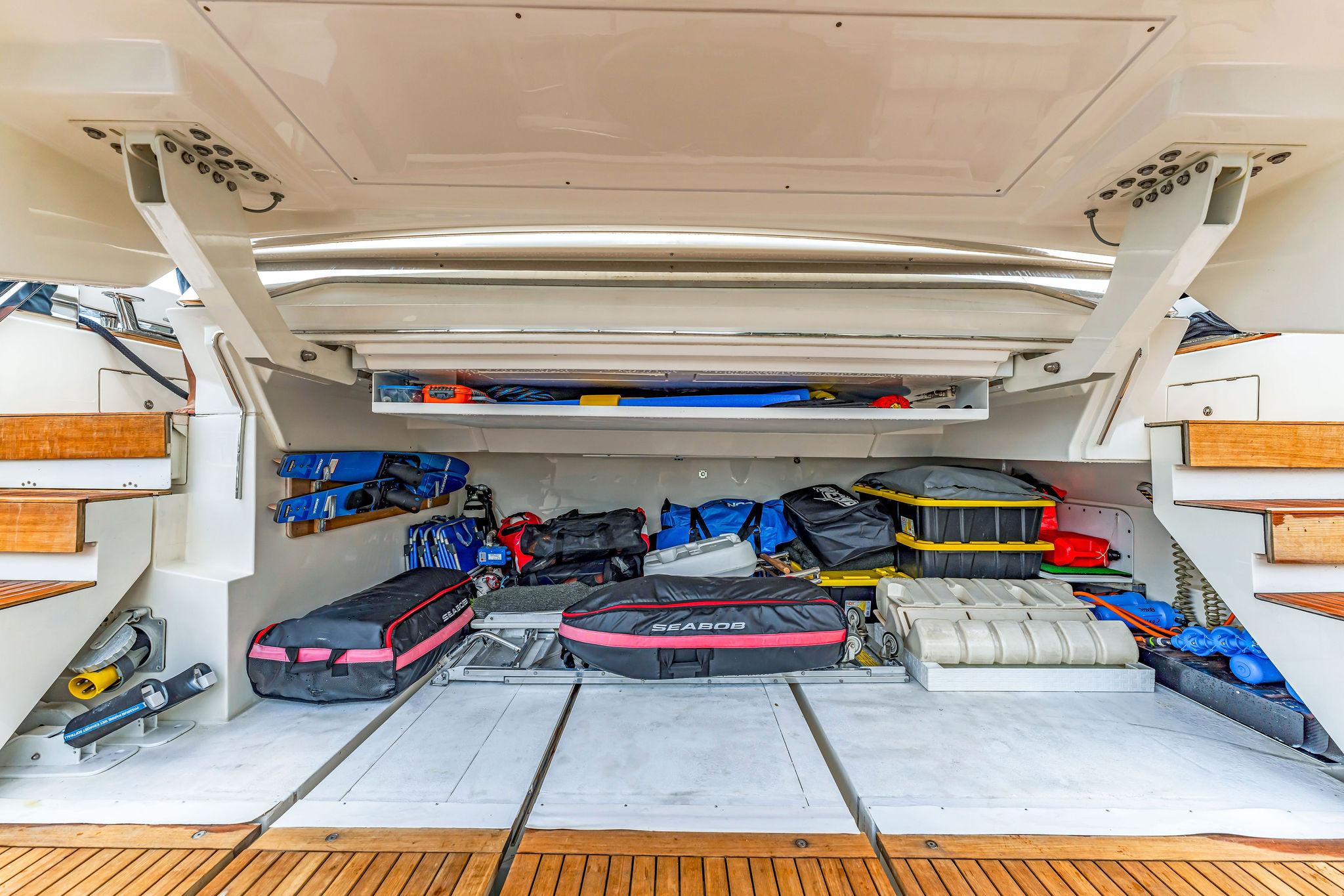 In addition to high performance and luxury, NOTYNOG boasts an impressive list of features, including a hydraulic swim platform, a fully equipped galley with top-tier Miele appliances, a high-end entertainment system with smart TV's and marine speakers, and a retractable passerelle for easy boarding when docked stern-to. Her combination of Italian craftsmanship, cutting-edge technology, and high-speed performance make her a standout choice for yachting enthusiasts looking for an elegant yet powerful vessel.