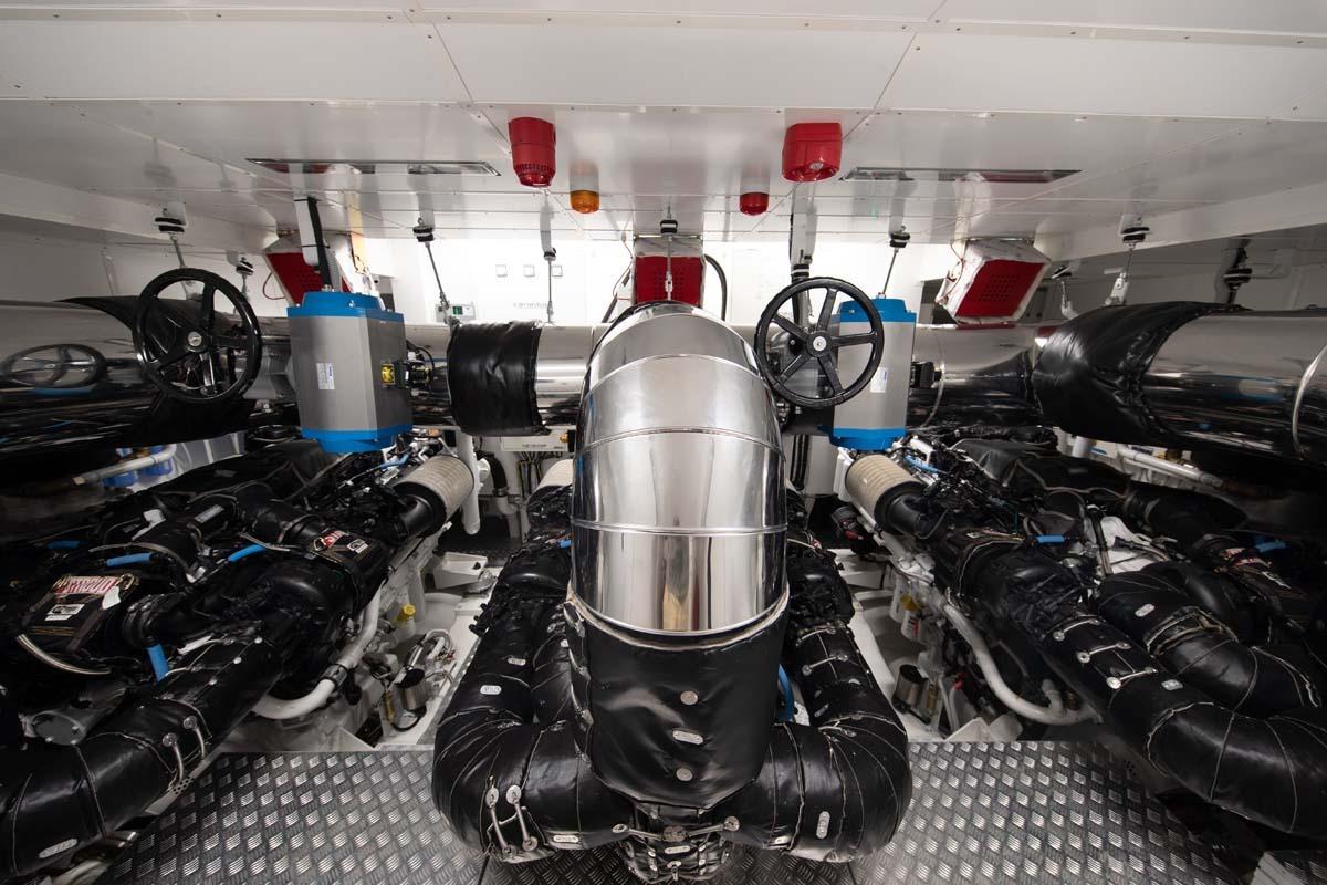 4 x fire extinguishers 2 kg (one in beach-club, one in wheelhouse, one in control room, one in garage/tender bay); 1 kg fire extinguisher in each cabin, crew's quarters, galley, saloon, on flying bridge and wheelhouse