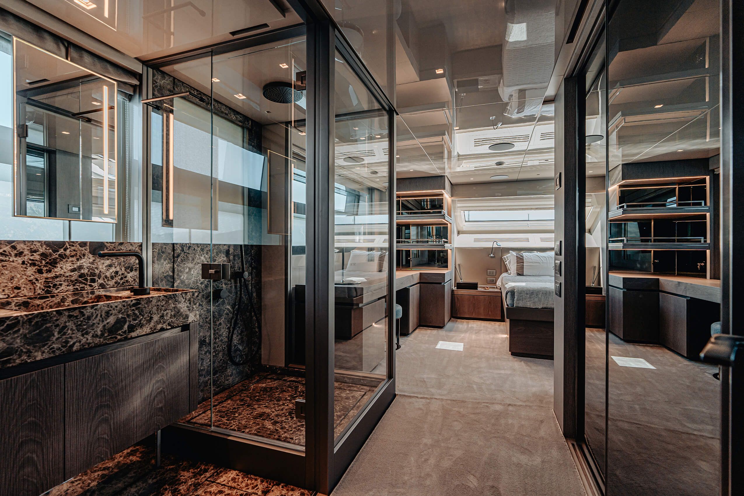 Asymmetric like nature, like the human body, like a house. For an advanced approach to livable spaces, use enjoyment of the sea on board of a motor yacht that goes a step further than others. With the aim of obtaining greater usability of the interior spaces, and better access to the exterior, the SL106 Asymmetric rethinks the well-established layout of a yacht, allowing through this asymmetric configuration never tried before, to recover about 10 square meters of area to benefit the interior. Thanks to the desire to think differently, to dare to step outside of a traditional custom, SL106 Asymmetric is the result of Sanlorenzo's aptitude for working on the concept of space, molding it at will every time, to give live to ideas tailored on the owner's wishes.