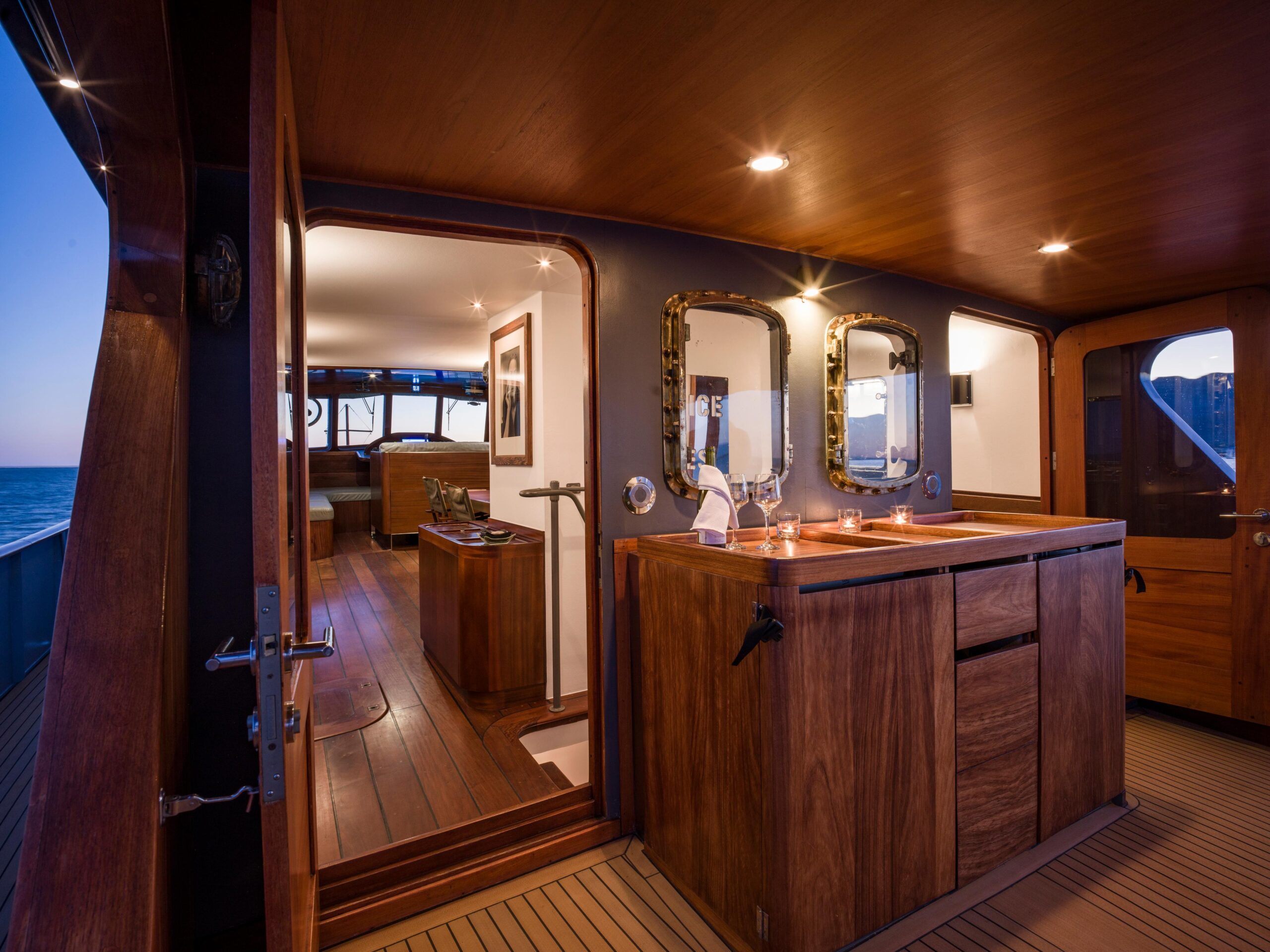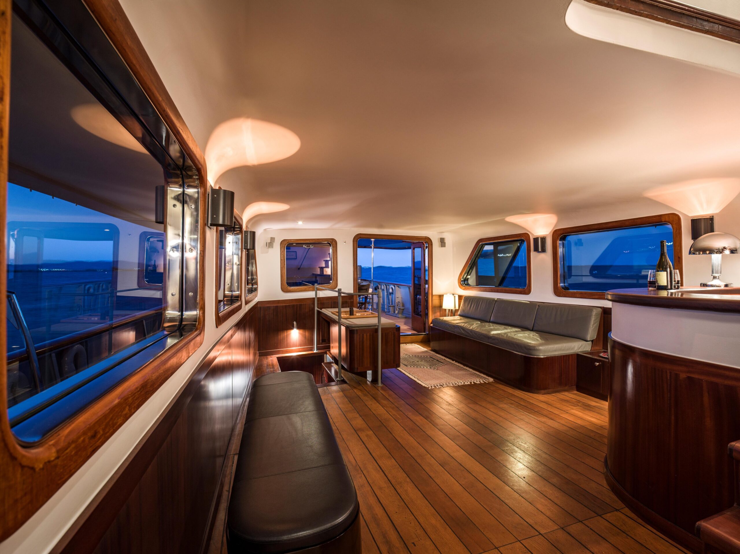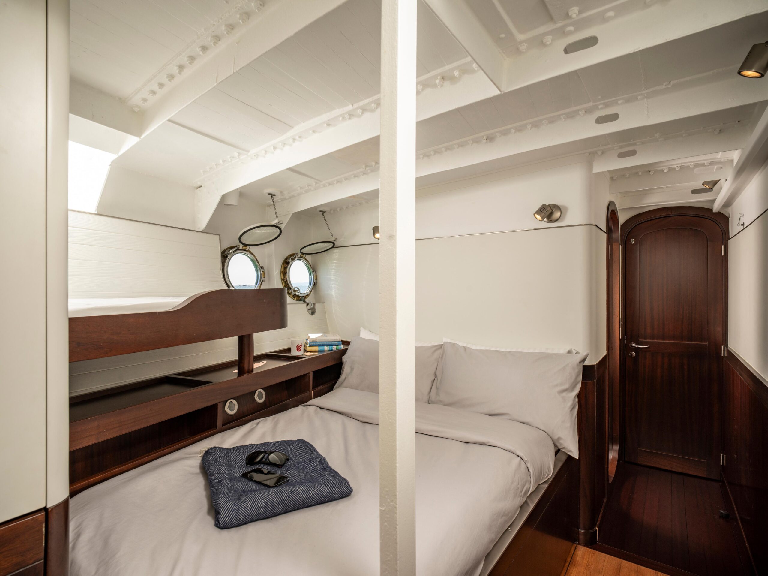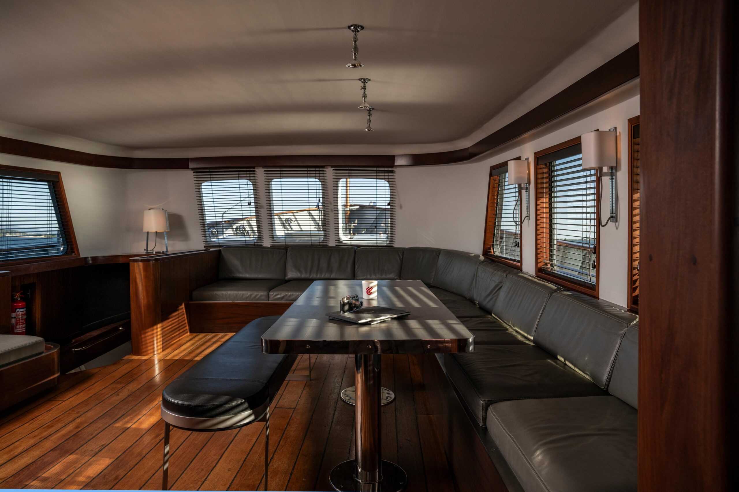 В середине 1980-х годов яхта вошла в состав ВМС Франции в качестве учебного судна, а позднее, в 2001 году, была приобретена фотографом Питером Линдбергом, после чего прошла значительный рефит. С 2005 по 2016 год над интерьером работал Кристиан Лиэгр, с ключевым вкладом в рефите 2015/2016 годов, добившись идеального баланса между современной эстетикой и классическим шармом — с тёмными деревянными полами, панелями и кожаными акцентами. Открытая планировка создаёт ощущение простора и органично связывает все жилые зоны внутри яхты.