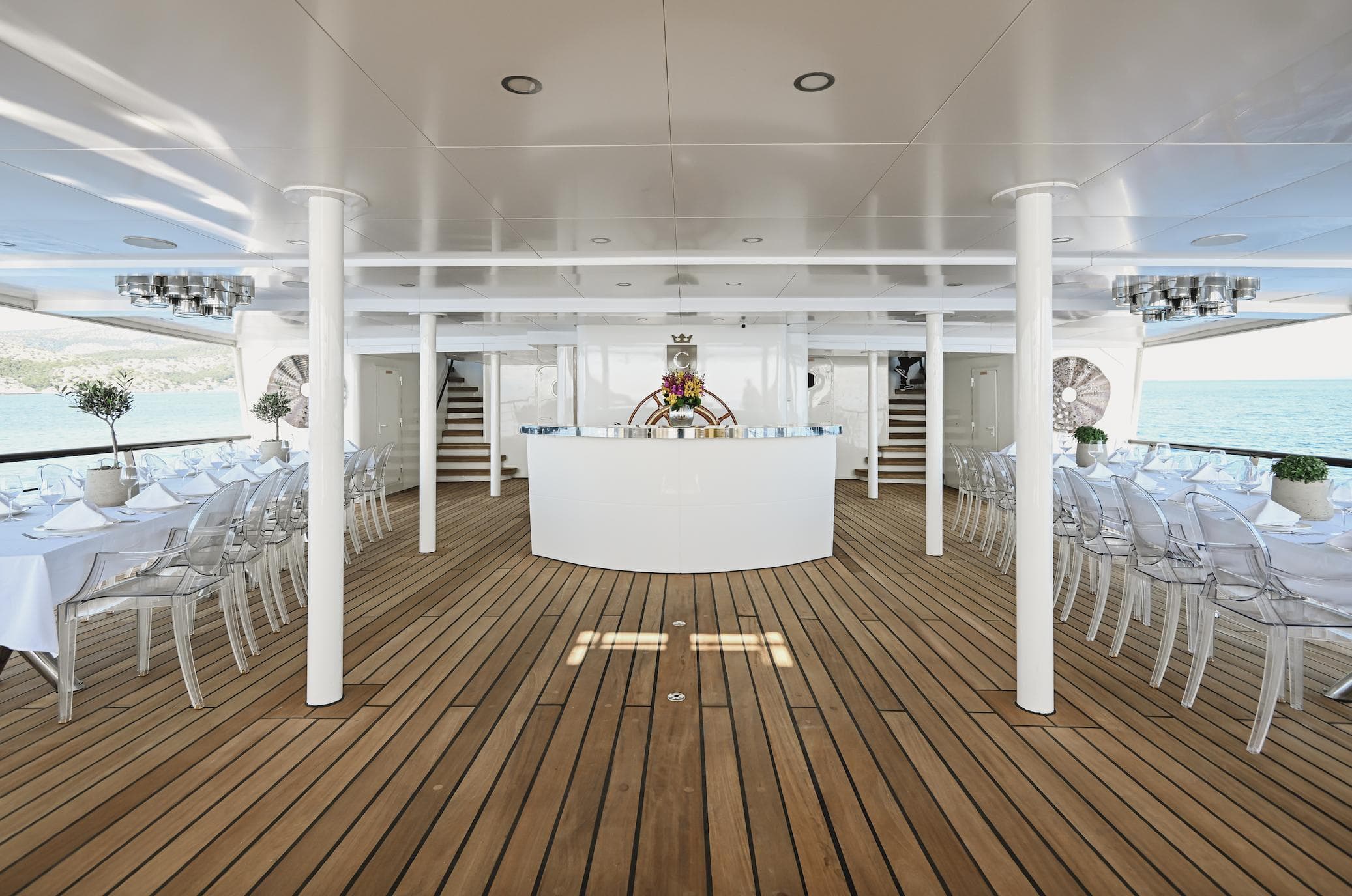 Пять палуб, большая ширина 12,5 м и валовая вместимость 2083 GT позволяют разместить до 19 гостевых кают, что даёт ей уникальный потенциал для коммерческой бизнес-модели в качестве судна сопровождения суперяхты.