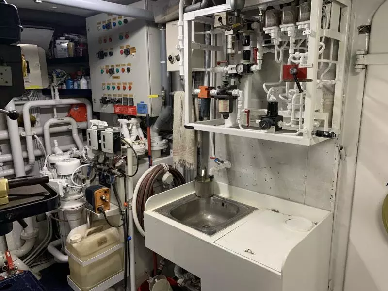 • Установлена (новая) пневматика на крыльевую станцию для трубопроводов управления главным двигателем. Полная промывка системы и установка масляных фильтров.