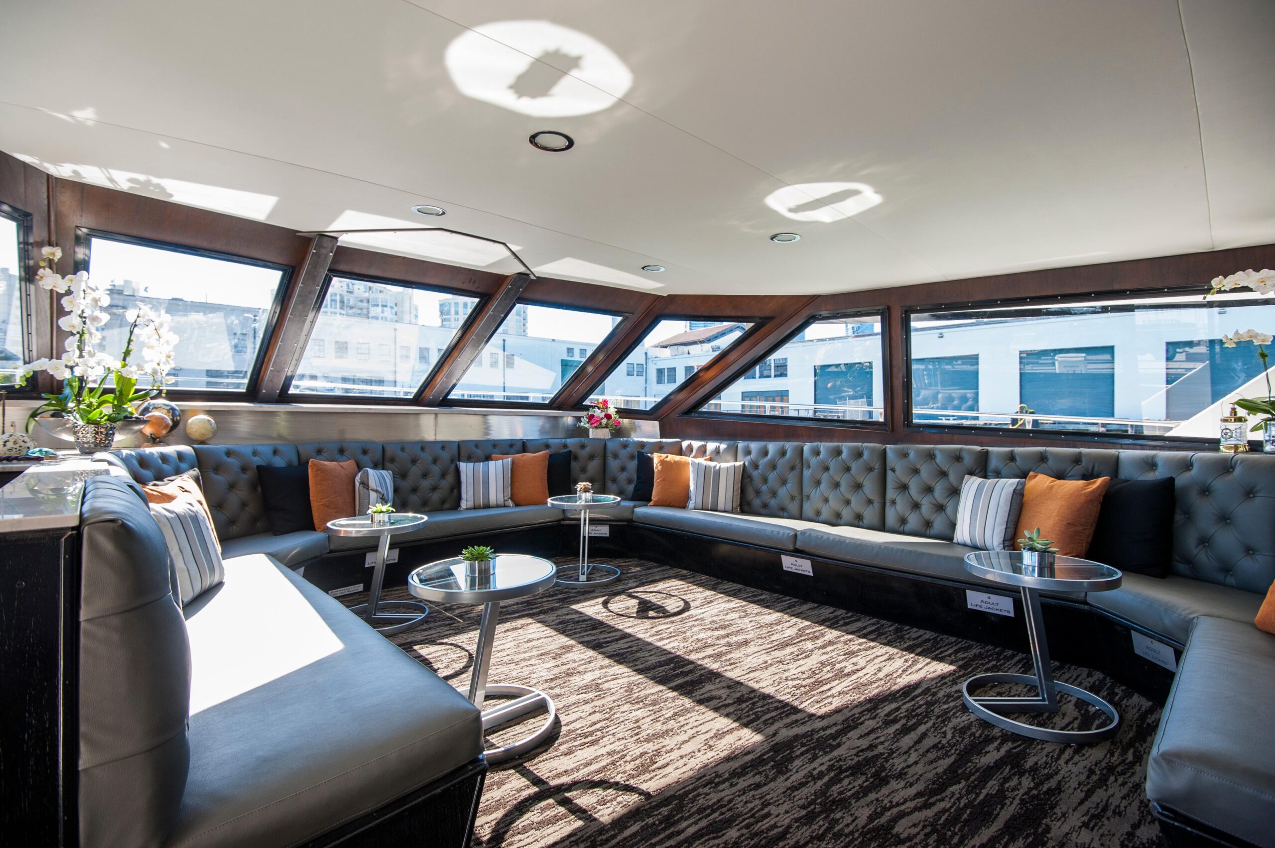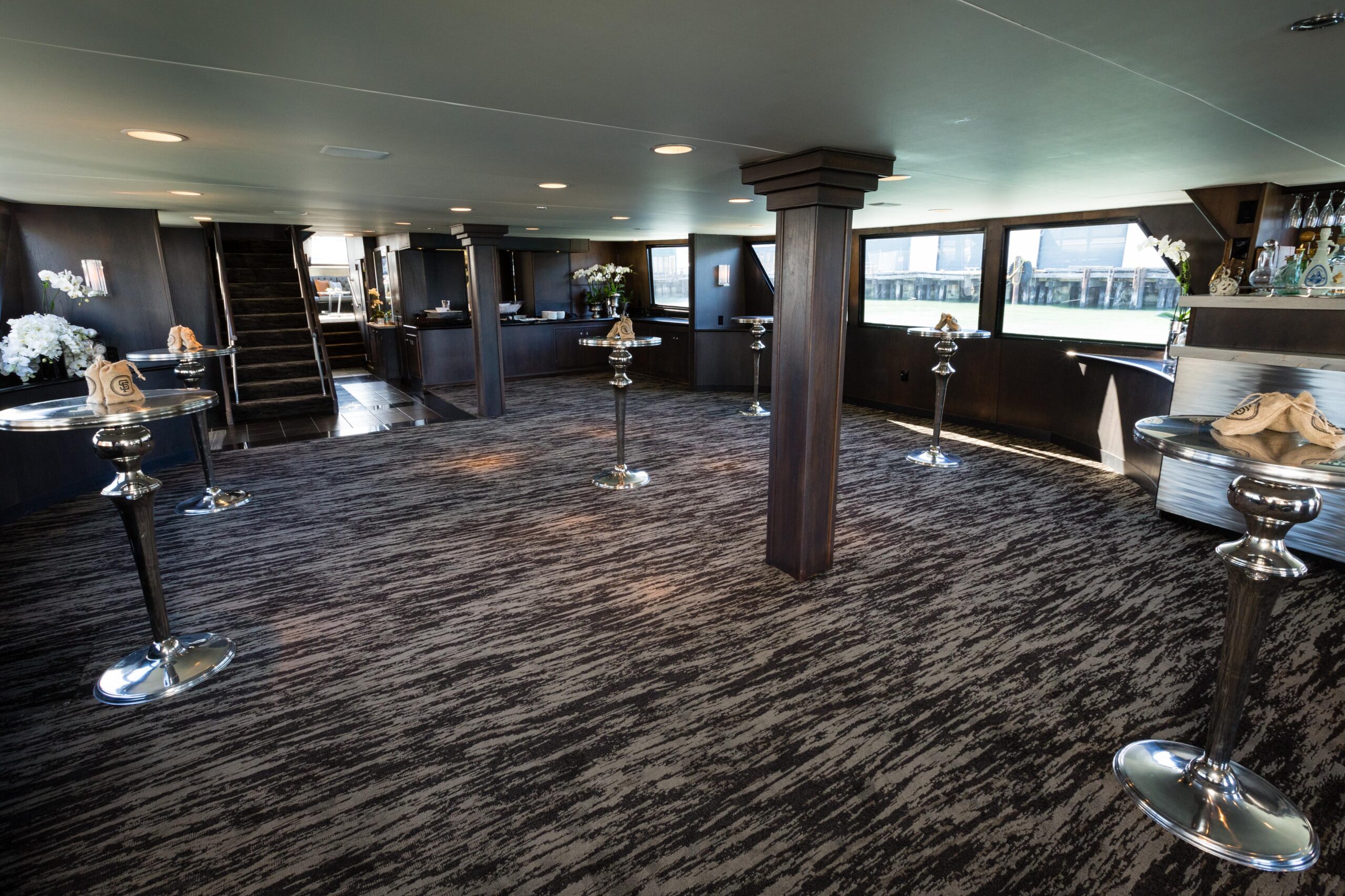 Судно имеет открытую носовую и кормовую палубы. В носовой части расположен пассажирский салон, камбуз находится по левому борту, санузлы — по правому борту, салон с баром для напитков — в кормовой части по правому борту. С кормовой части главной палубы лестница обеспечивает сообщение между главной палубой и палубой 01. Рулевая рубка расположена в носовой части палубы 01, здесь же находятся салон с баром и санузлы по левому и правому борту. Кормовая палуба палубы 01 — открытая. Ниже палубы расположена частная каюта в носовой части, санузел с двумя душевыми, прачечная с кладовой и холодильником.
