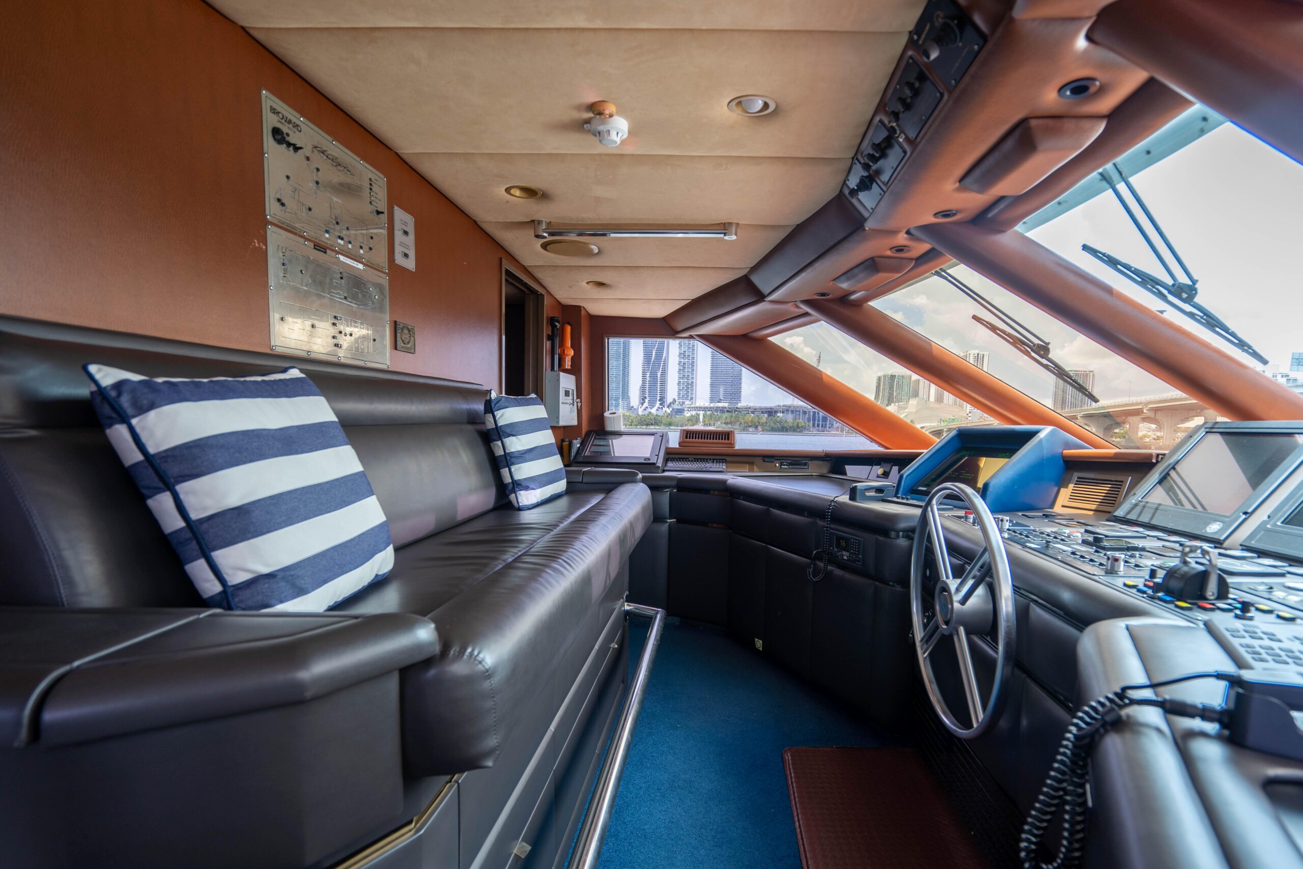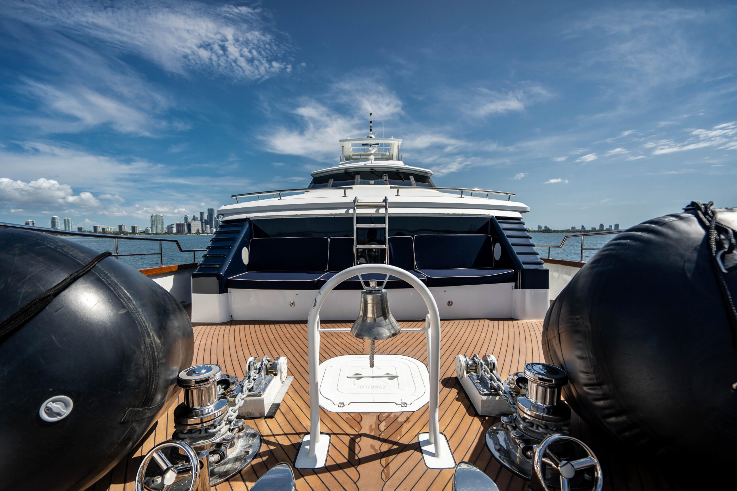 QUANTUM была построена Broward Marine в 1989 году и проходила рефиты в 1995, 2015 и 2022 годах. Как только вы поднимаетесь на борт, вас сразу впечатляет её простор — значительно больше, чем ожидаешь от судна такого размера. Компоновка с камбузом на нижней палубе позволяет разместить на главной палубе впечатляющую мастер-каюту в носовой части: кровать king size, раздельные «his & hers» санузлы, сводчатый потолок, большая лаунж-зона, туалетный столик и гардеробная с кедровой отделкой.