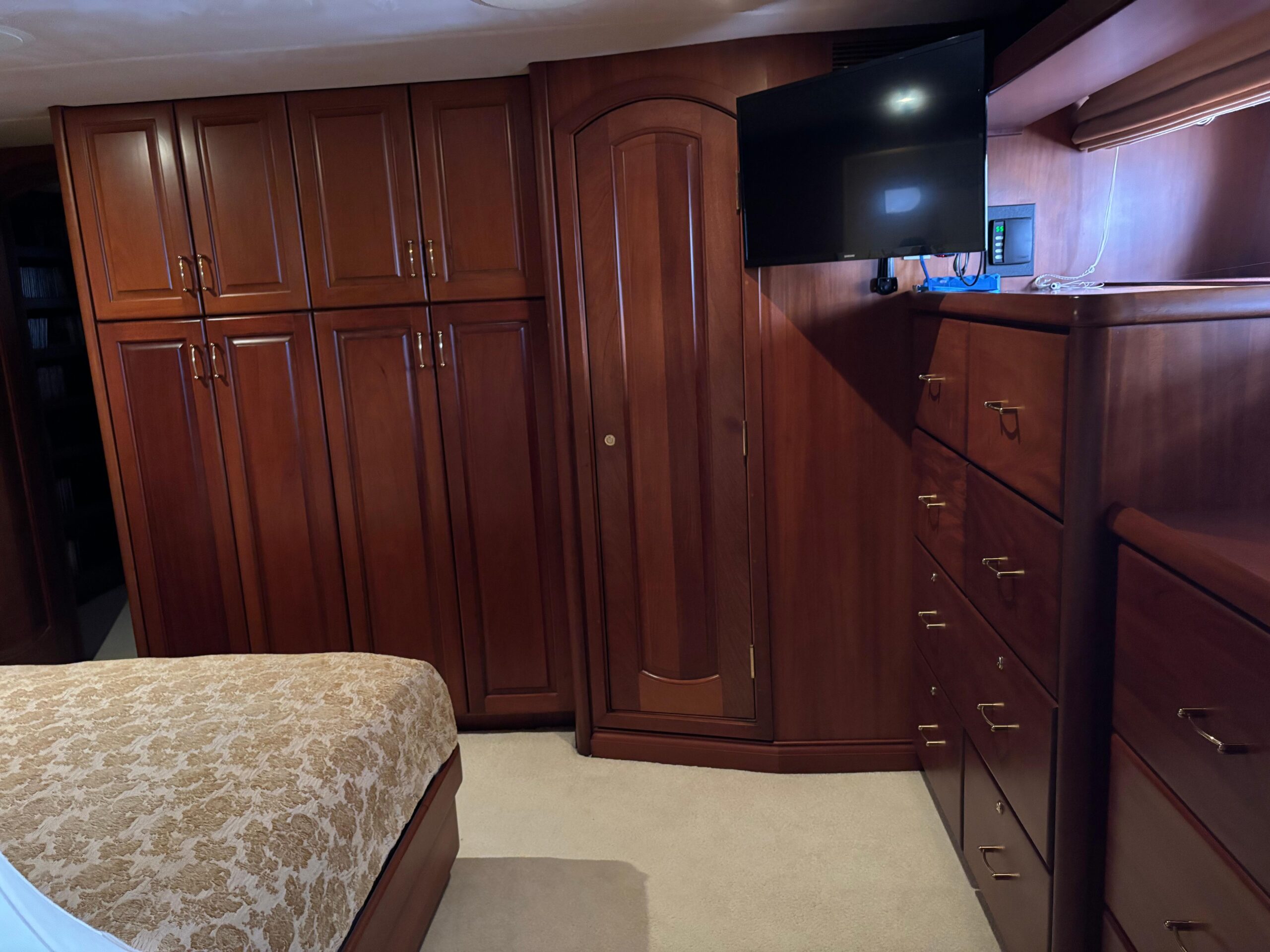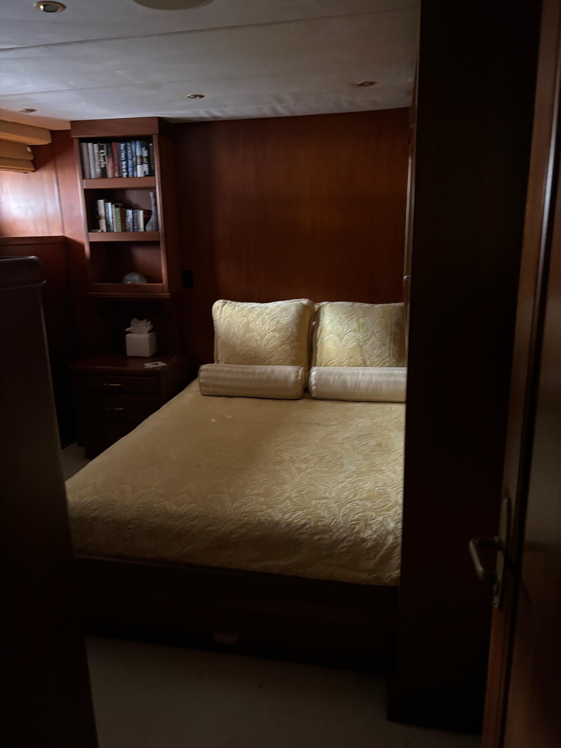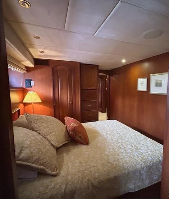 Мастер-каюта расположена по правому борту, в средней части корпуса, доступ по плавно спускающейся лестнице с главной палубы. Просторная каюта создаёт ощущение тёплого, элегантного комфорта.