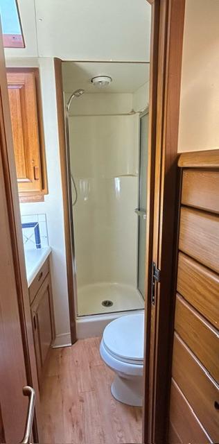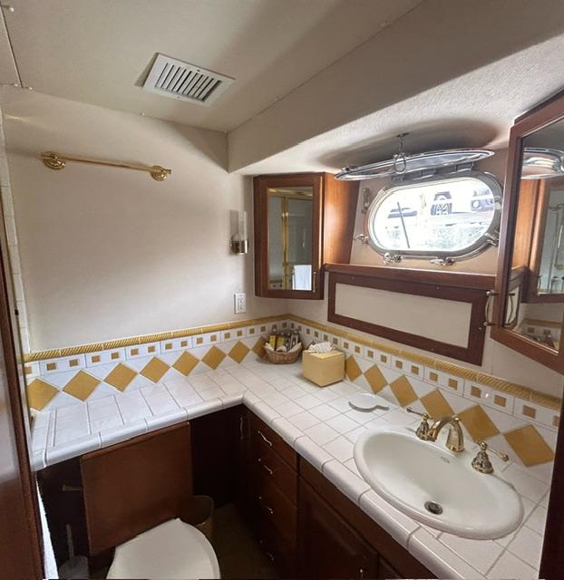 Санузел мастер-каюты расположен по правому борту, ближе к корме. Имеется инфракрасная сауна из красного дерева с входом внутрь.