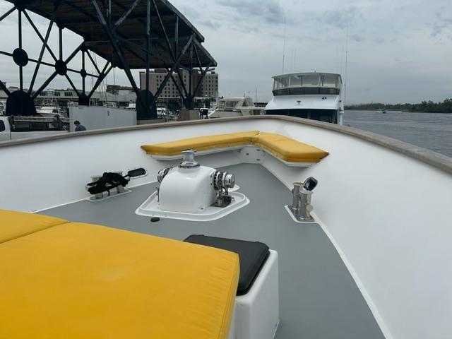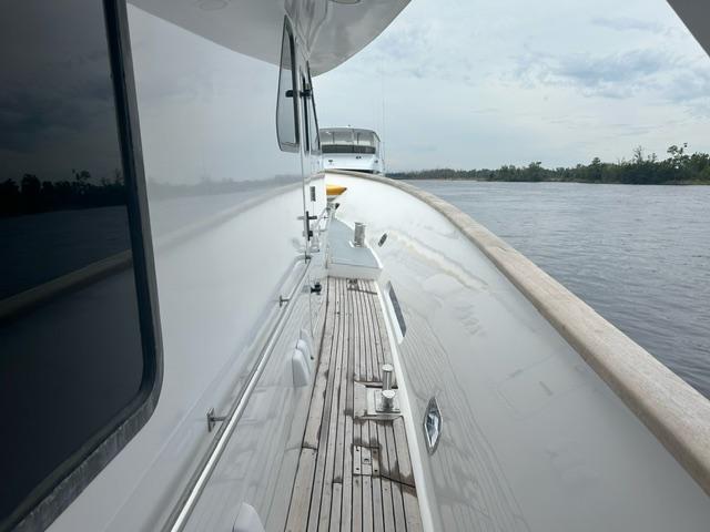 Полностью крытые широкие бортовые проходы по периметру. На кормовую палубу можно попасть через посадочные ворота в районе миделя или из кокпита. Двери из плексигласа по бортам ведут на кормовую палубу; съёмные панели Izenglass позволяют сделать зону климат-контролируемой для отдыха или комфортной затенённой обеденной зоной. Ещё дальше к корме — просторный кокпит, идеально подходящий для рыбалки, загара или удобного доступа к воде через купальную платформу. На носовой палубе предусмотрены большие площадки для загара. Доступ в машинное отделение — из кокпита или с правого бортового прохода.