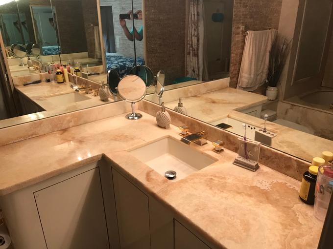 Камбуз выполнен в стиле Country Kitchen: бытовая техника расположена в кормовой части, в центре — большая изогнутая барная стойка, а в носу — обеденный стол «eat-in» с фиксированными местами для четырёх человек и дополнительными стульями ещё для трёх.