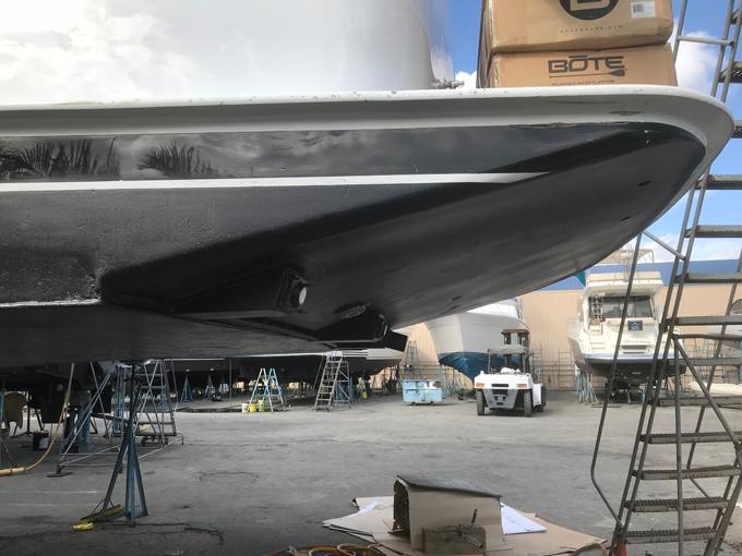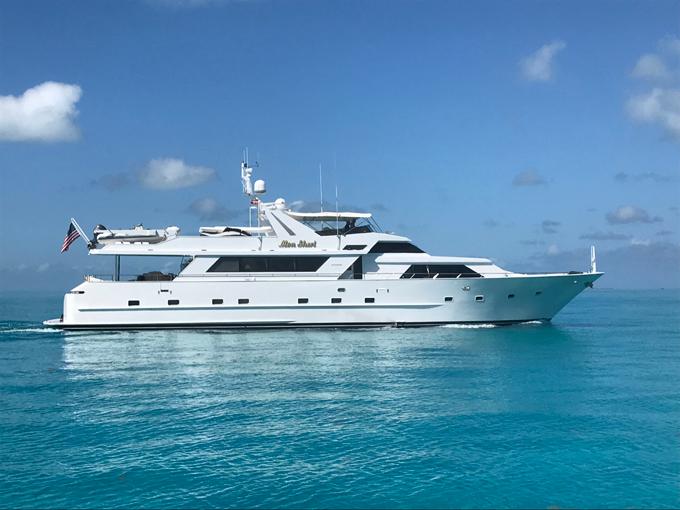 Эта высокоиндивидуализированная яхта Broward, построенная в Мичигане и удлинённая на 14 футов (работы выполнены на верфи Broward), предлагает флайбридж, кормовую палубу и лазарет — решения, встречающиеся только на удлинённых корпусах. Кормовая палуба действительно заслуживает отдельного внимания и должна быть увидена лично.