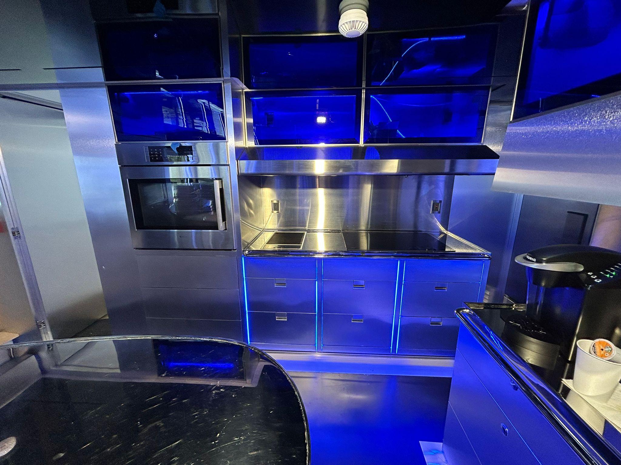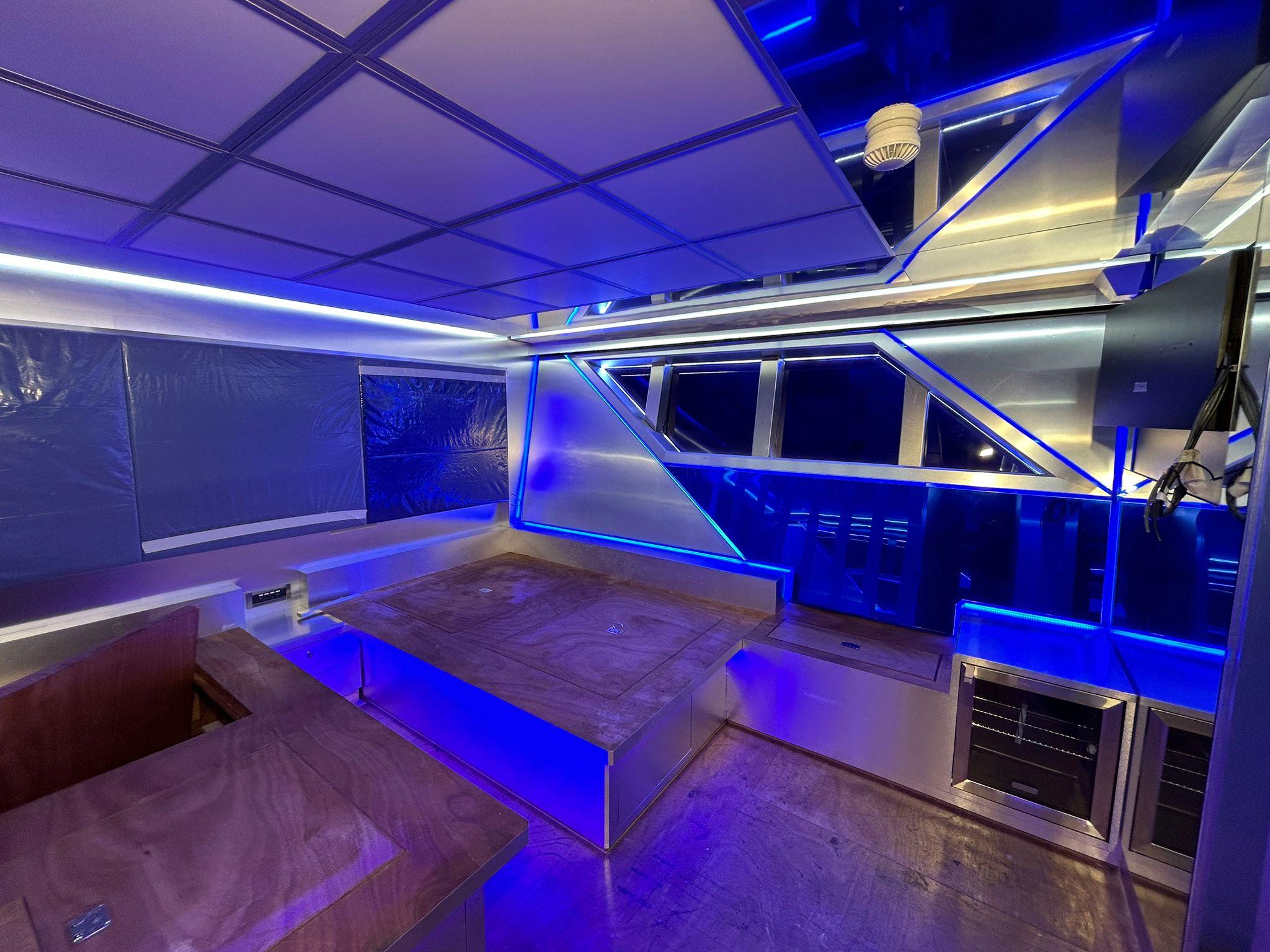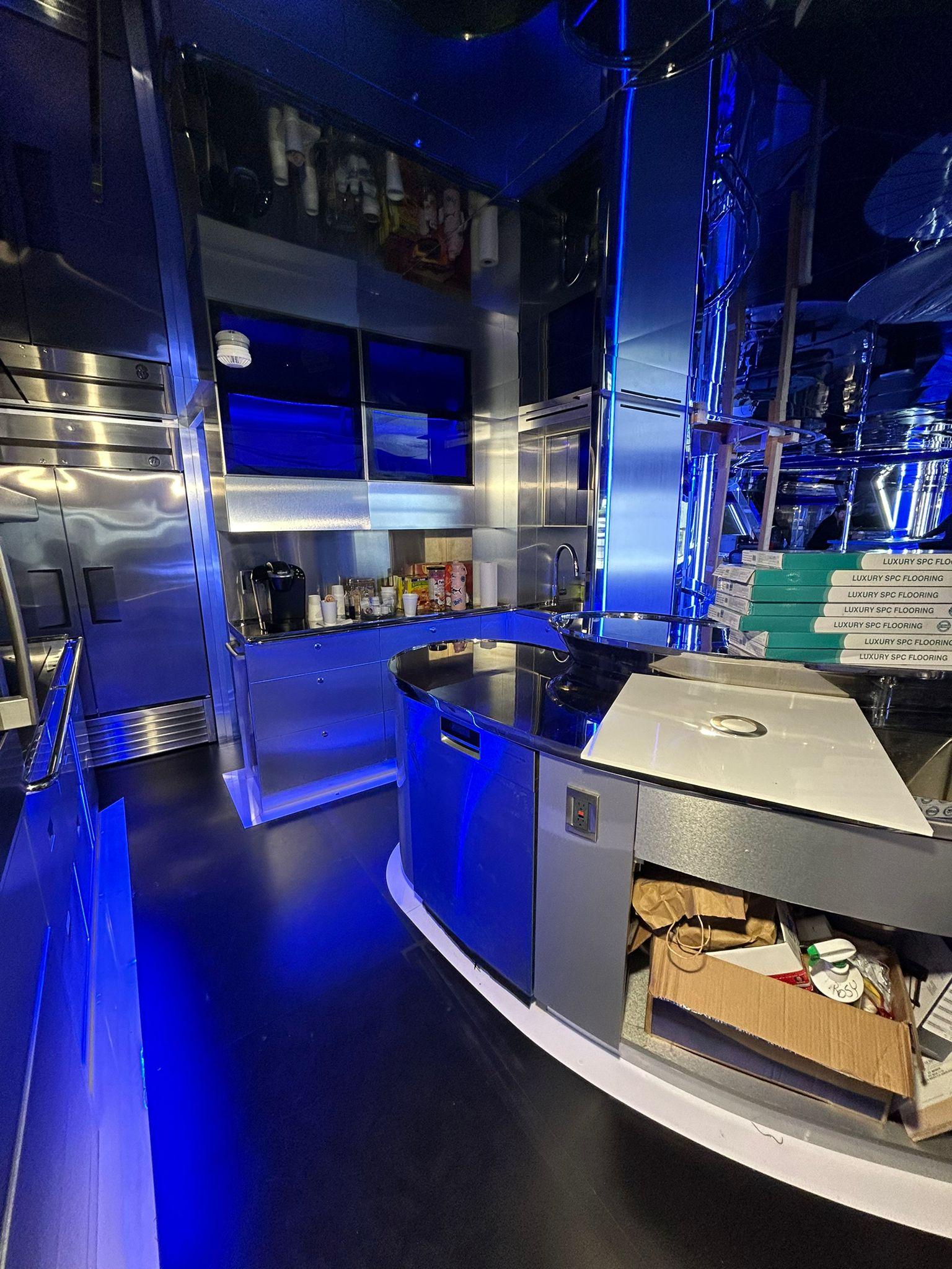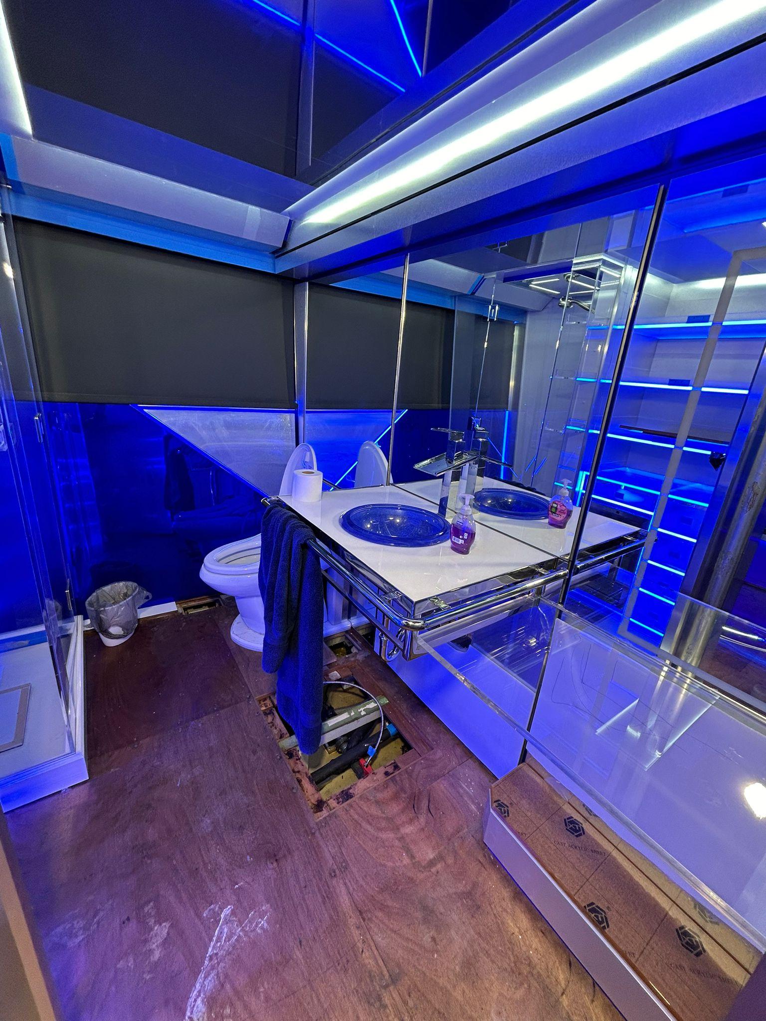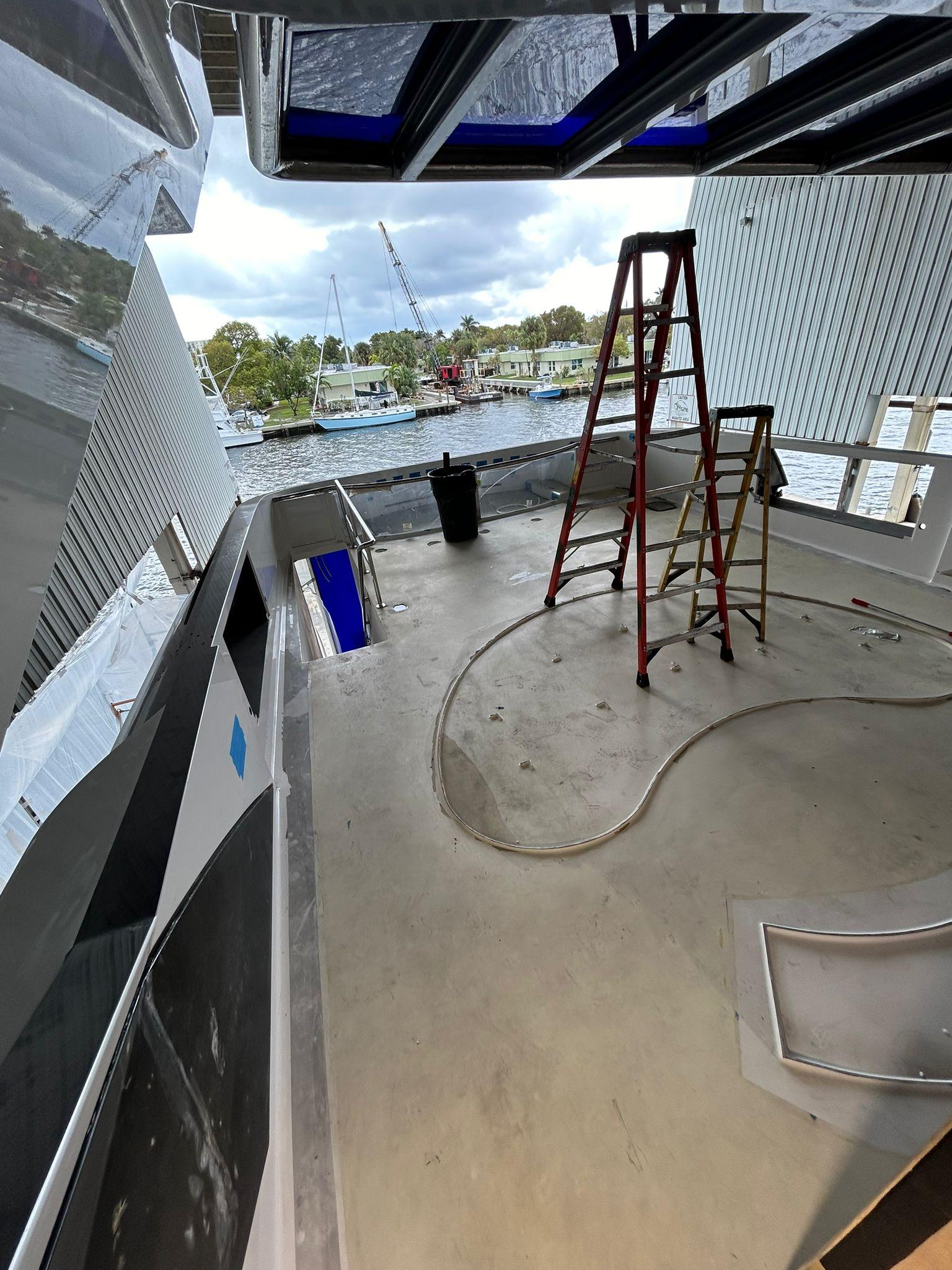 Существенный объём работ уже выполнен. Все основные системы были заменены на абсолютно новые, ни разу не запущенные и не введённые в эксплуатацию, включая главные двигатели, генераторы и системы SeaKeeper. Полностью обновлены системы водоснабжения и электропроводка, все танки восстановлены, водомётные движители и реверсивные ковши перебраны. Обшивка днища прошла полное ультразвуковое измерение толщины.
