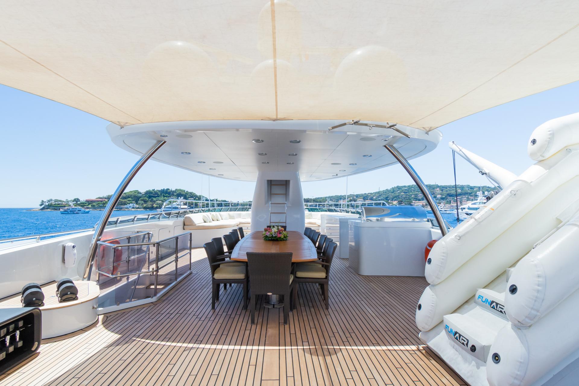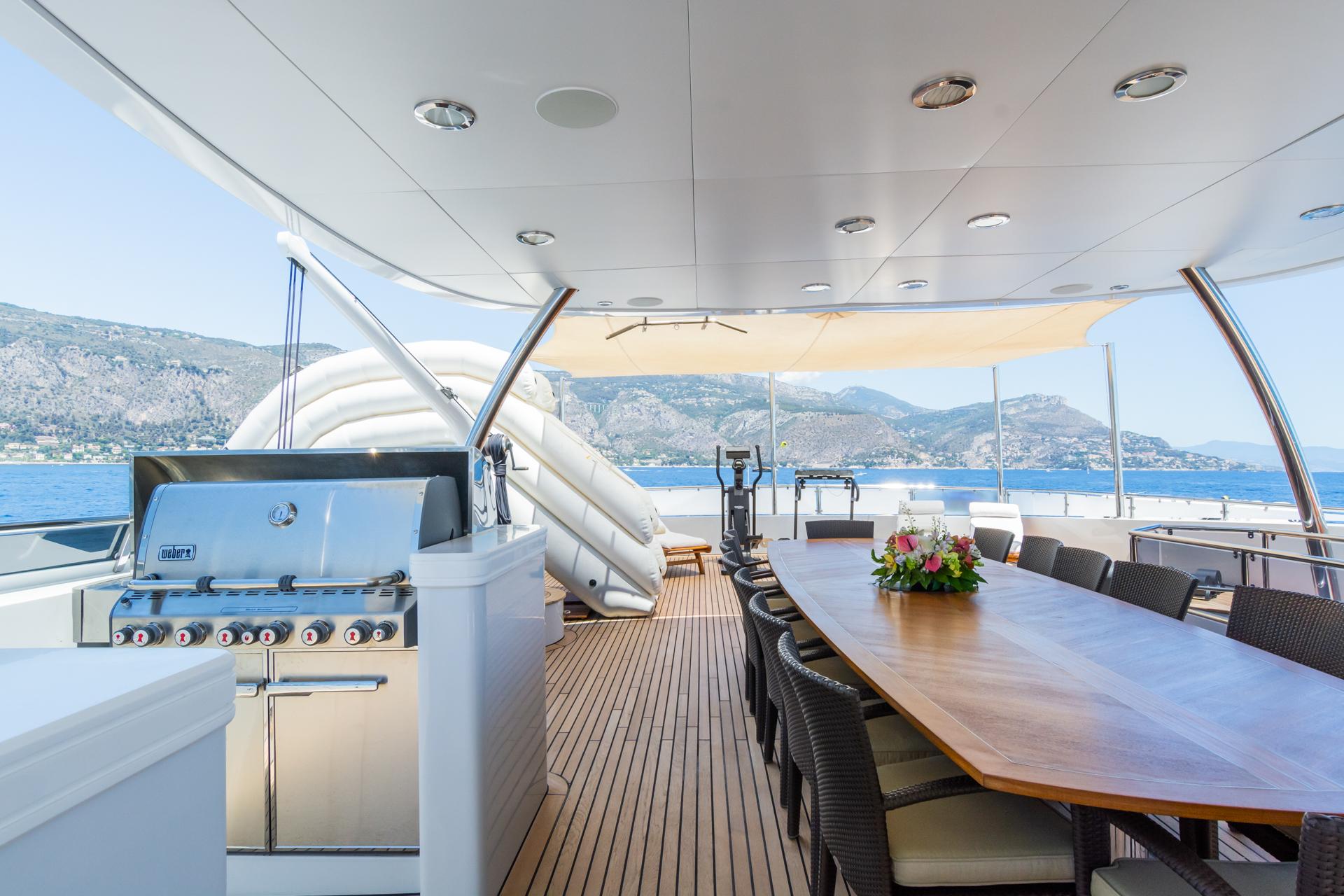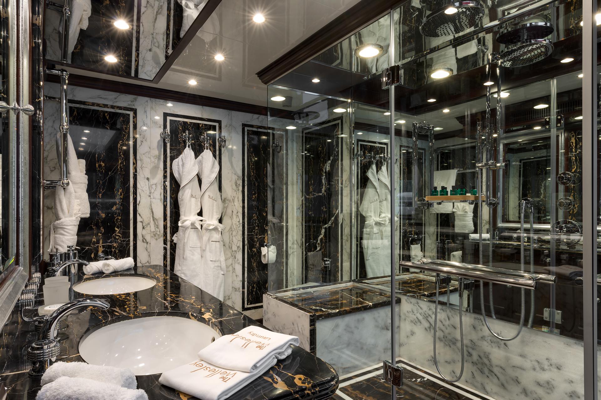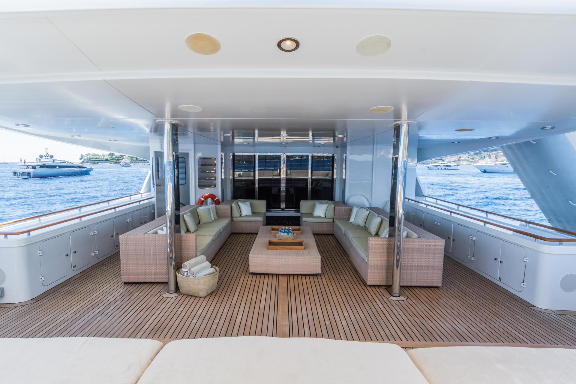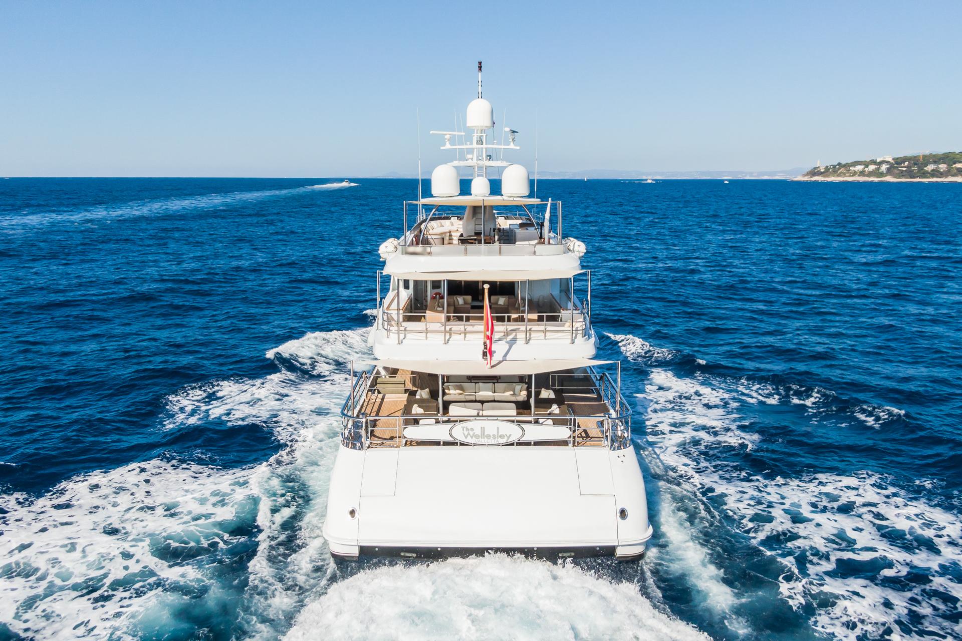 THE WELLESLEY располагает одними из самых больших открытых палуб среди всех 56-метровых яхт на воде, что делает её идеальной для приёма семьи и друзей. На борту предусмотрены обеденные зоны под открытым небом как на главной, так и на солнечной палубе, а также многочисленные зоны для отдыха и принятия солнечных ванн. Солнечная палуба также оборудована просторной джакузи — идеальной для общения, при этом сохраняющей приватность даже во время стоянки в порту.