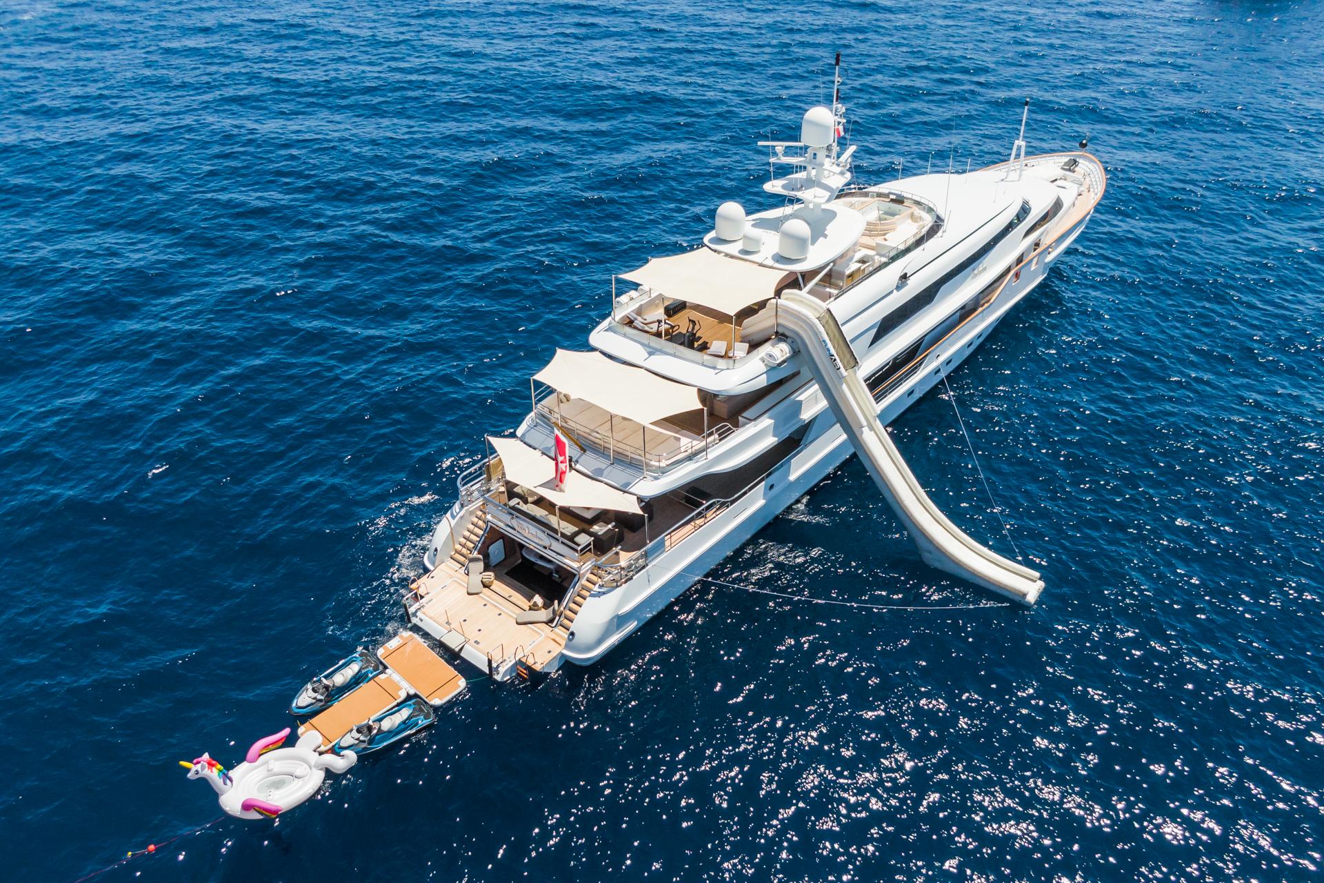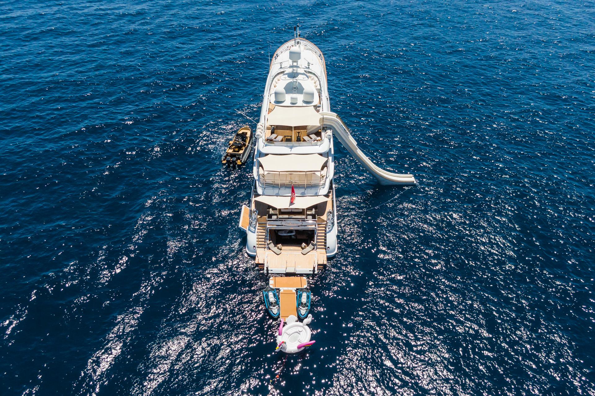 – Надувная горка (с солнечной палубы), а также «банан» и надувные «пончики» (donuts)