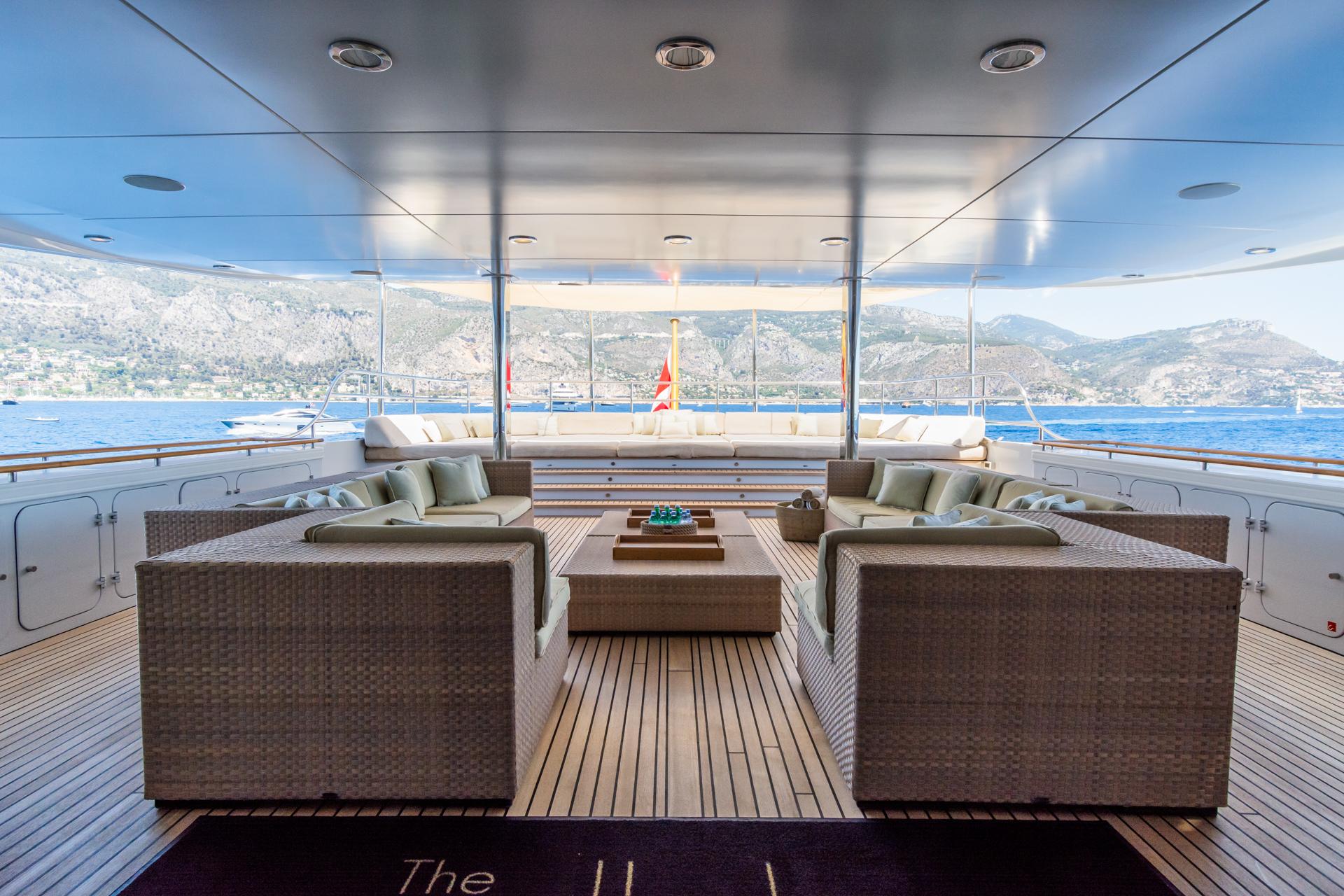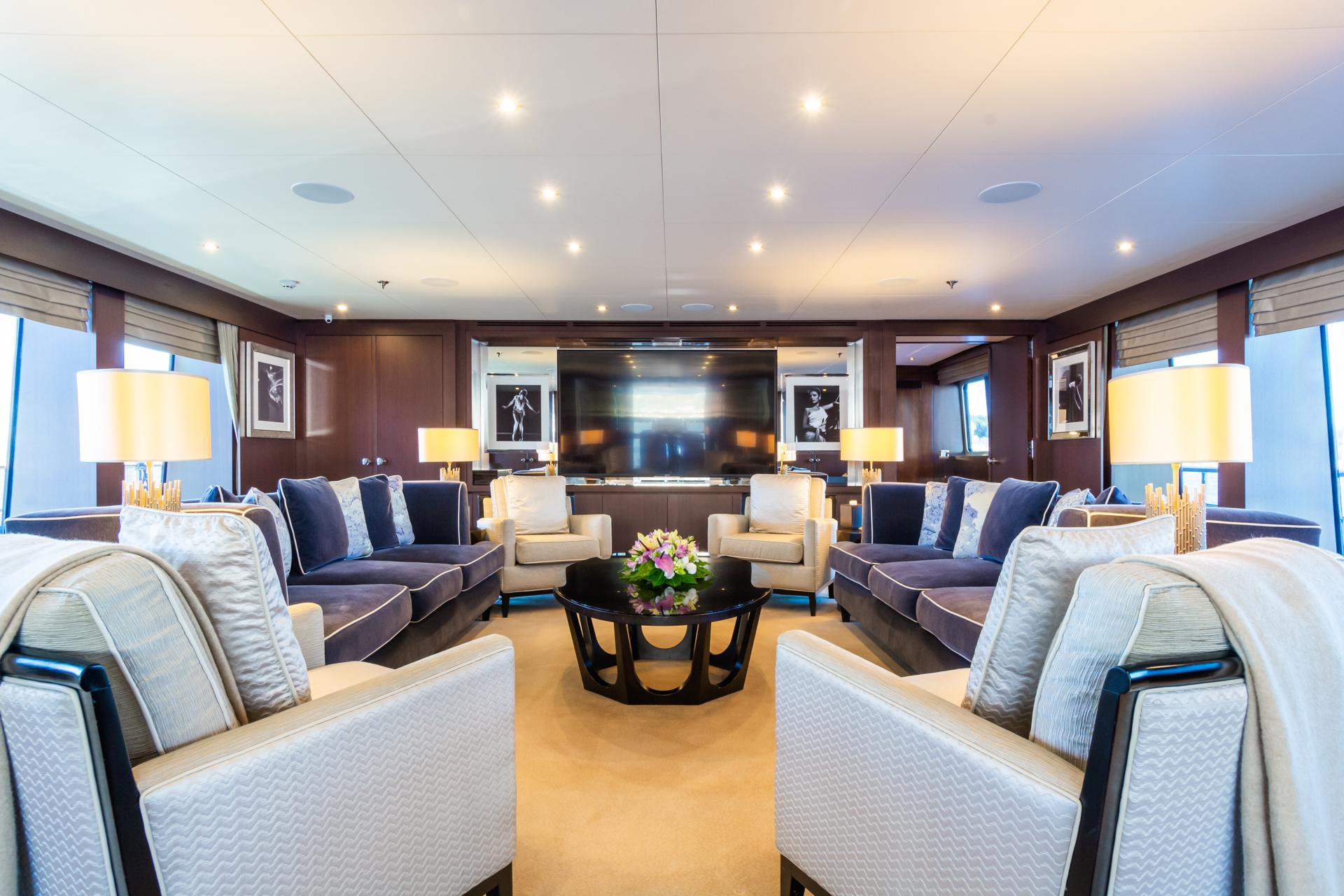 На верхней палубе расположена одна из самых ярких особенностей яхты — сигарный лаунж-клуб (Cigar Club Lounge), оформленный с использованием роскошной кожи и изысканной деревянной отделки.
