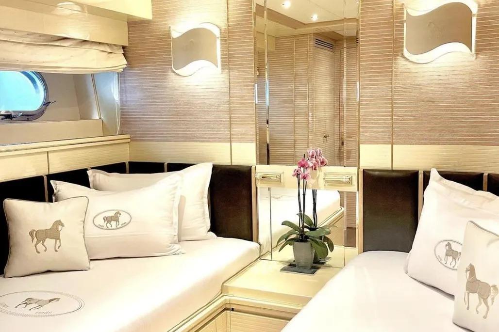 Гостевые каюты расположены на нижней палубе. Отделка из тёмного дерева создаёт тёплую и уютную атмосферу, а качественные матрасы обеспечивают комфортный отдых.