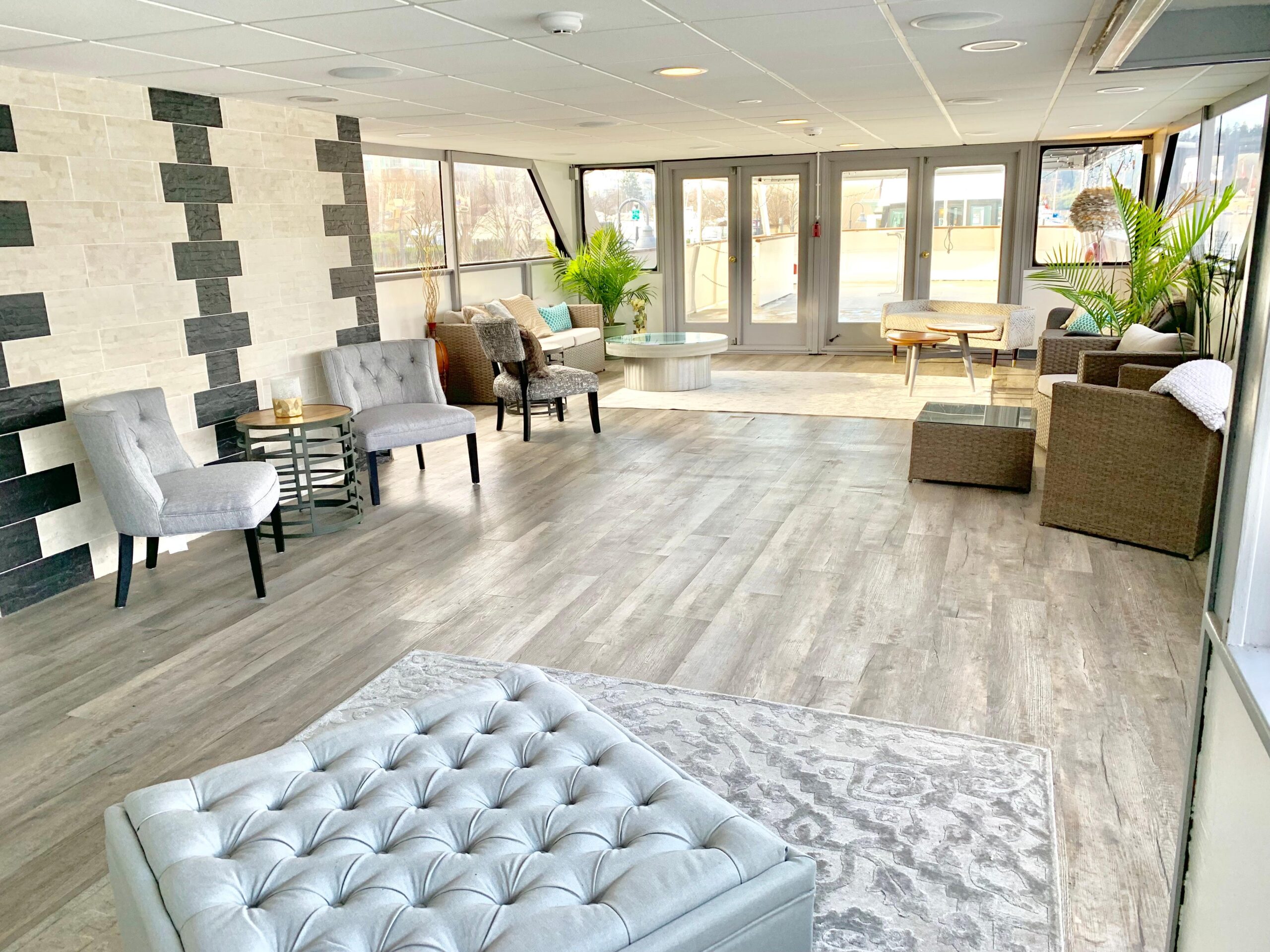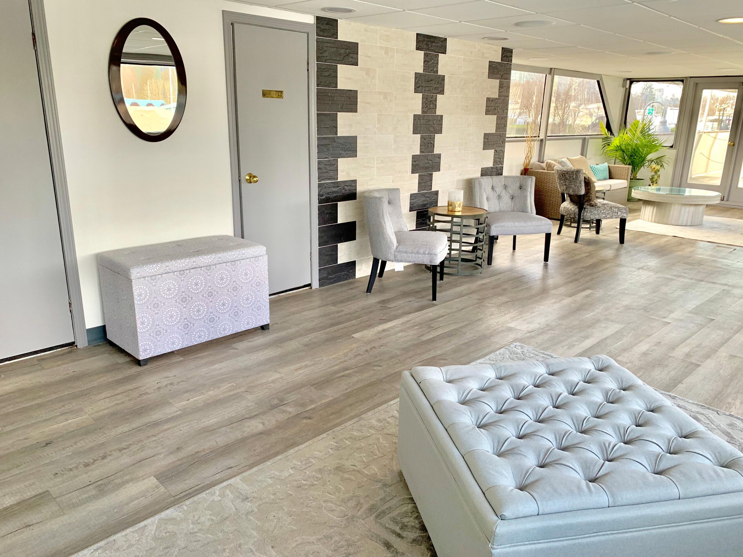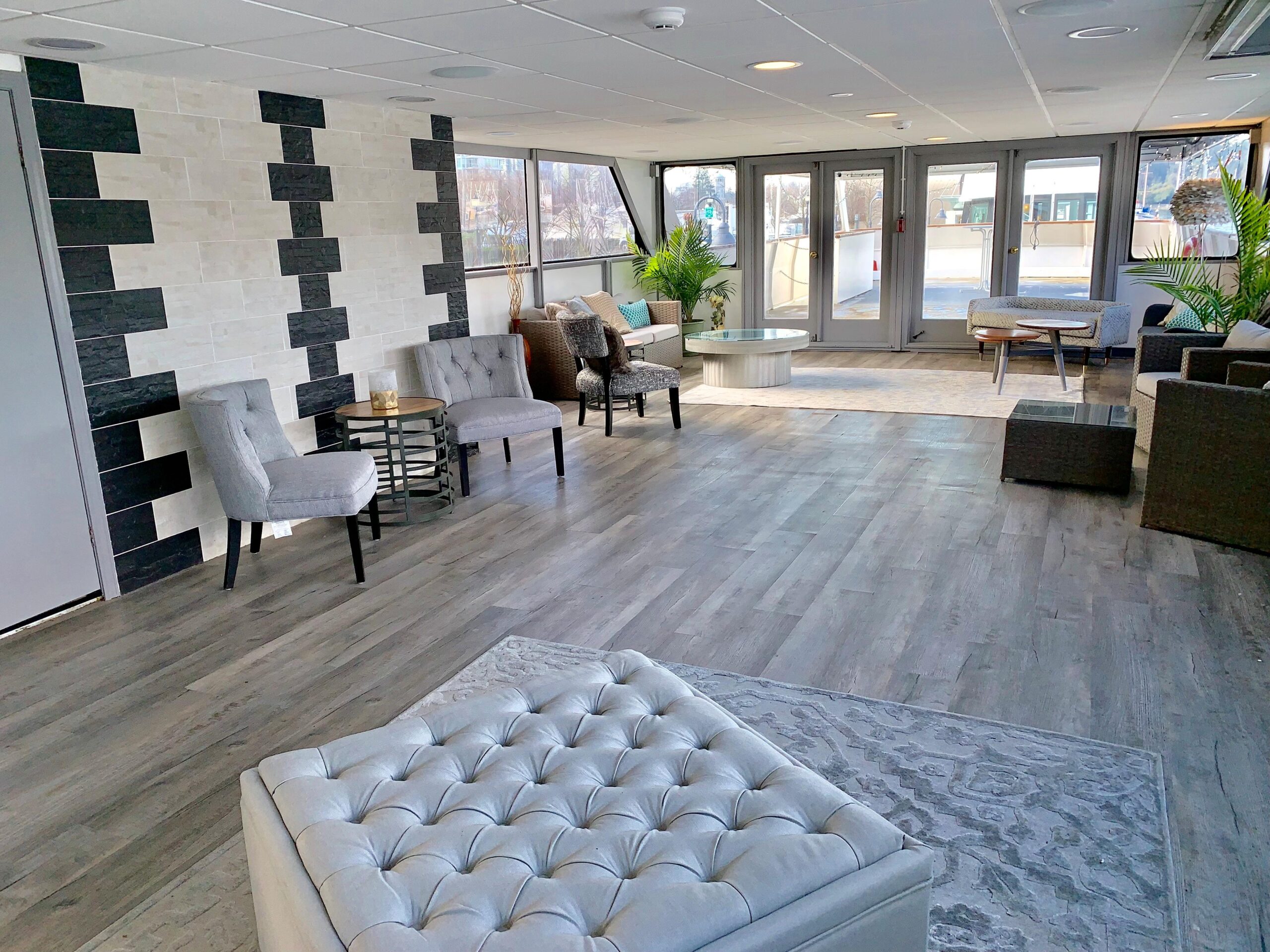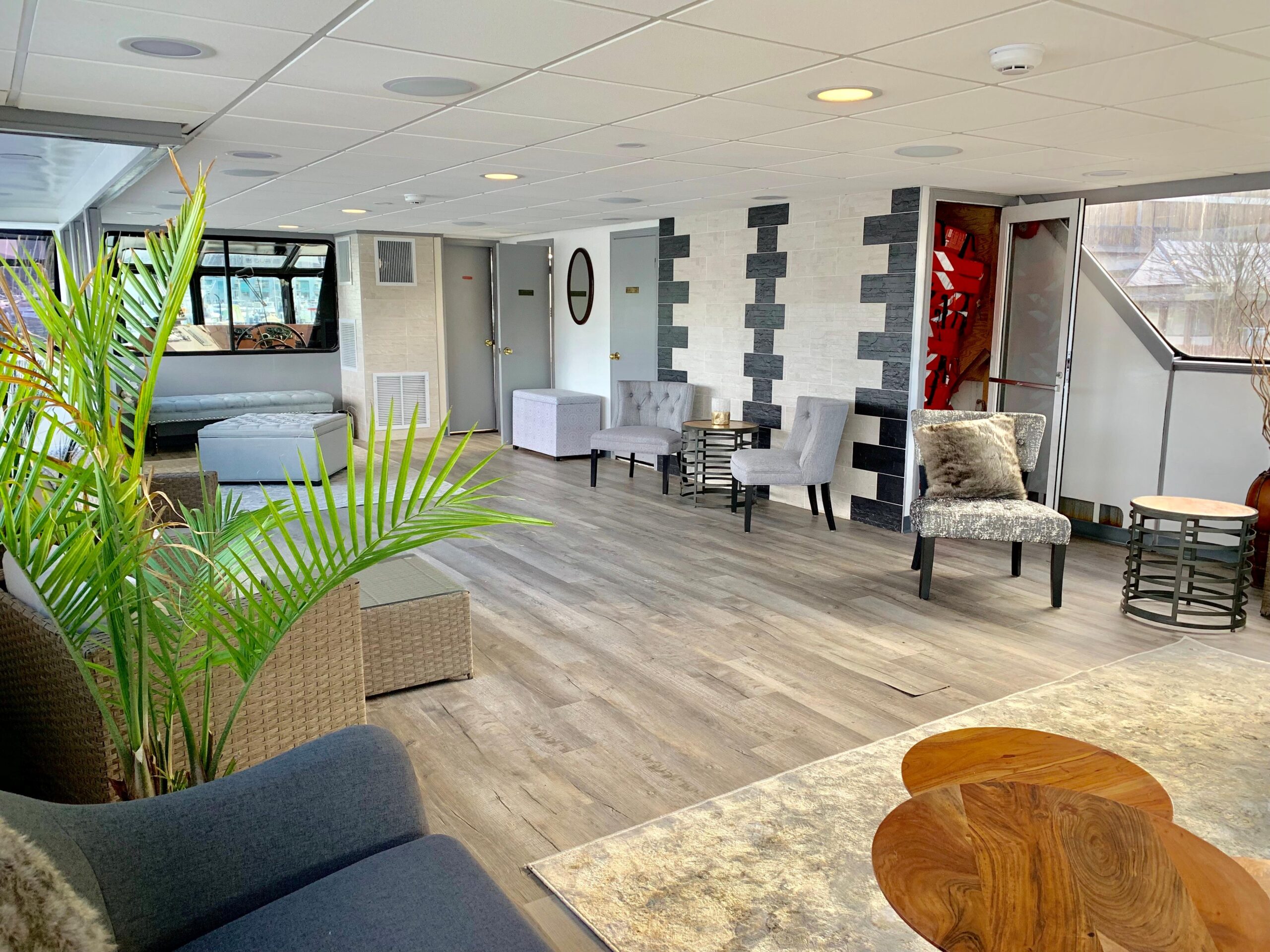 • Обновление гостевой обеденной зоны на нижней палубе: электрика, светильники, потолок, отделка переборок, плиточные работы, напольные покрытия, окна и обеденная мебель.