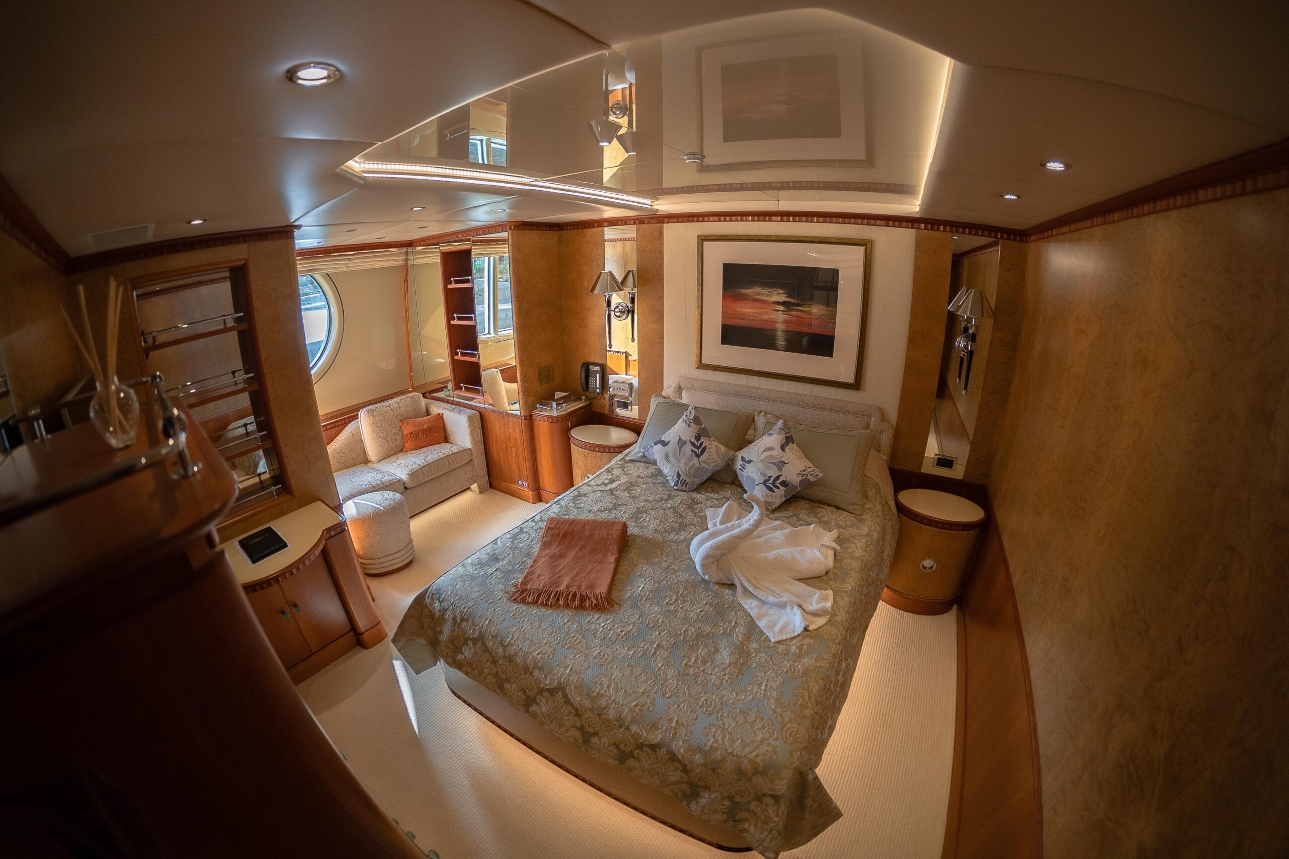 На борту 6 кают, включая мастер-каюту во всю ширину корпуса на главной палубе и не менее просторную VIP-каюту во всю ширину корпуса на нижней палубе, обеспечивая комфорт и приватность для гостей.