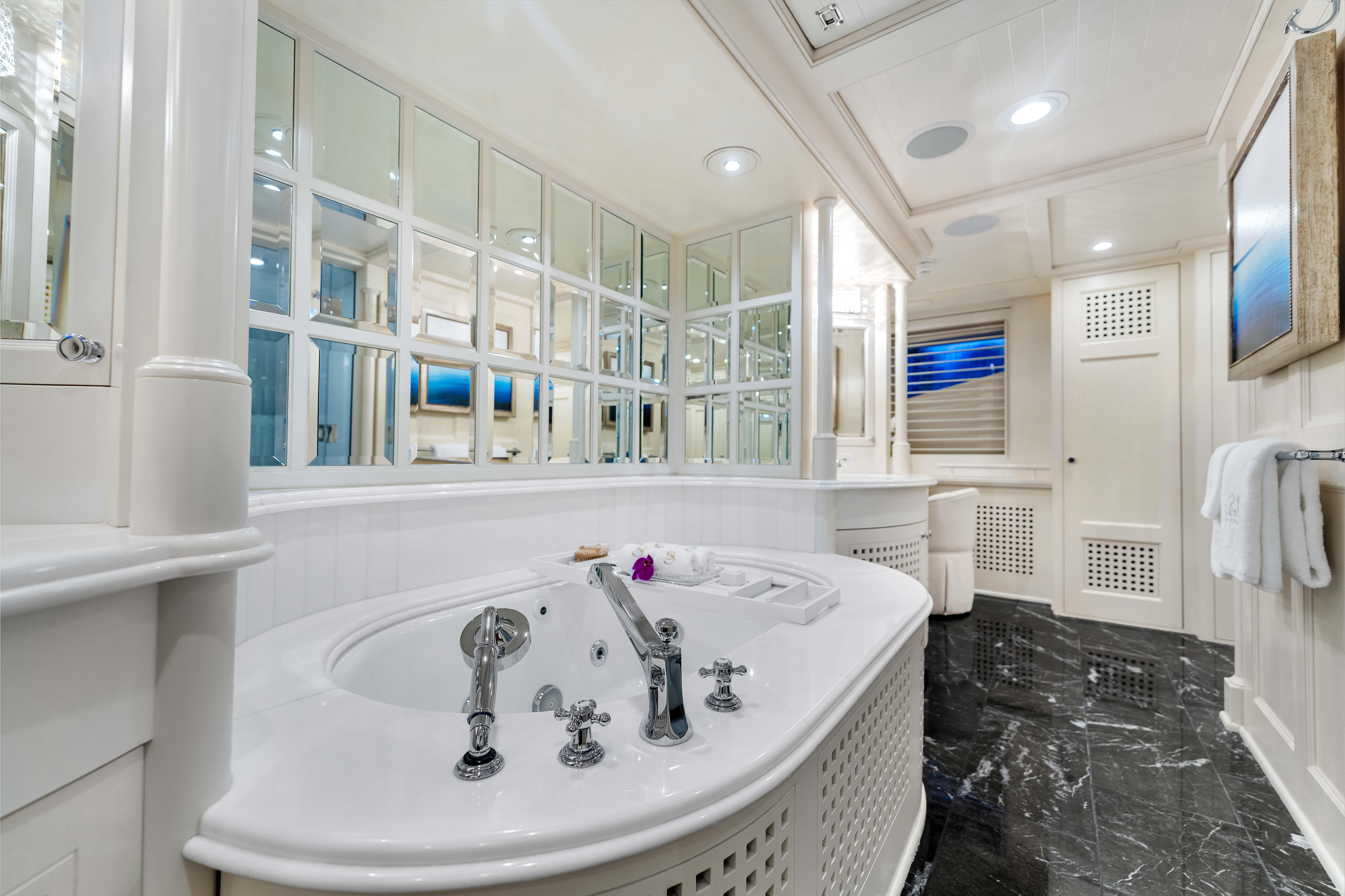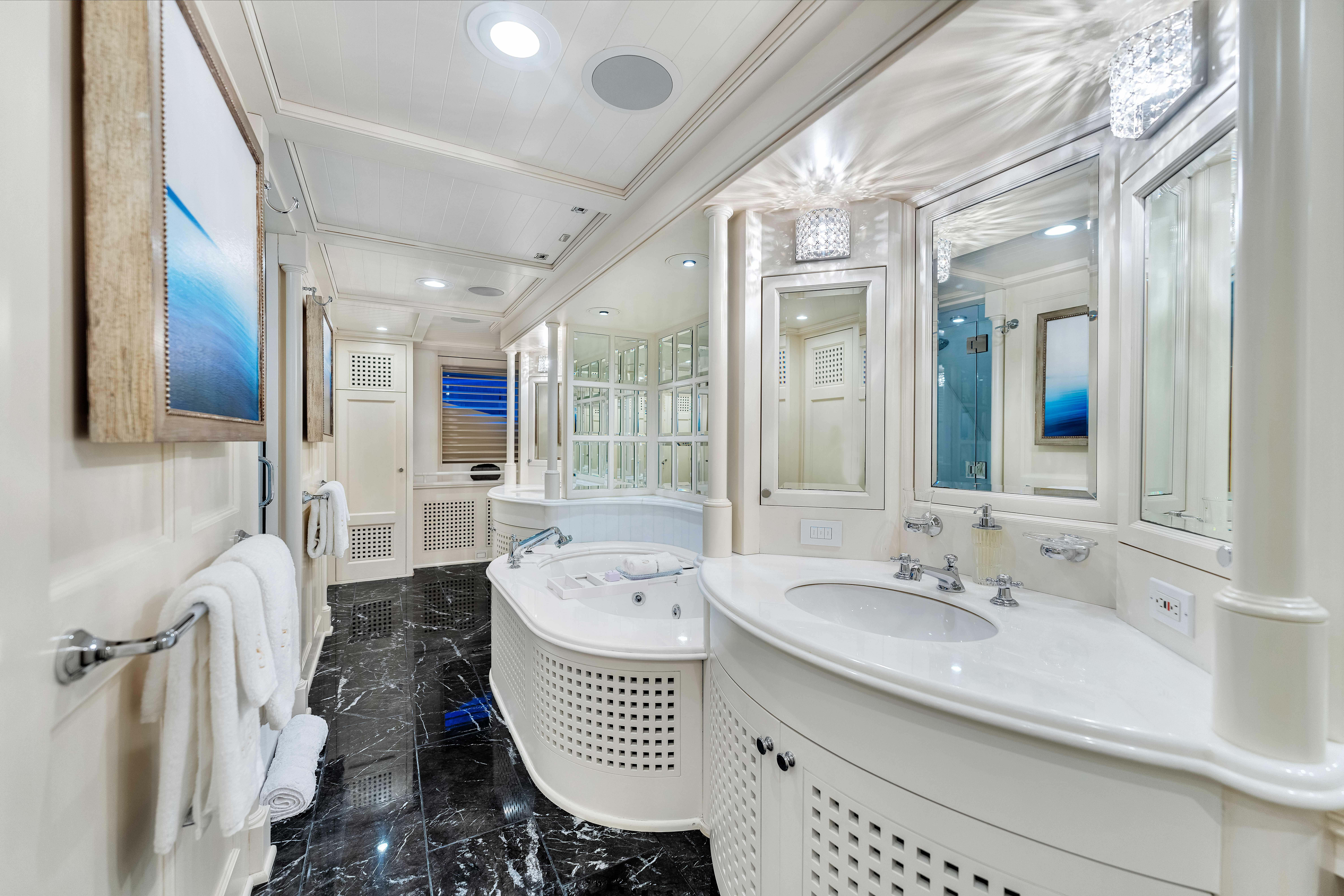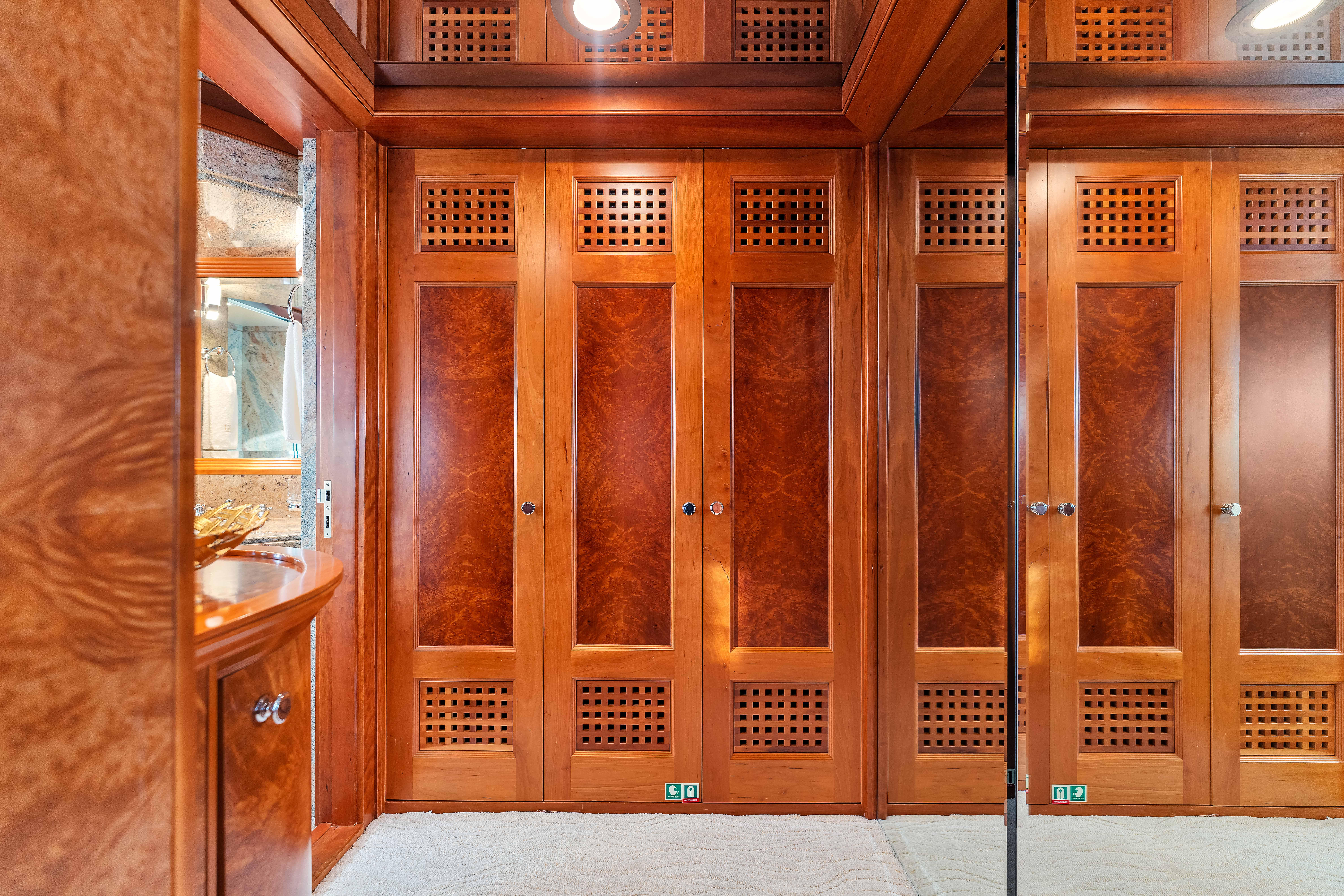 Размещает 10 гостей в пяти просторных каютах: мастер-каюта с кроватью king, две каюты с кроватями queen и две трансформируемые каюты, которые могут быть настроены как с двумя раздельными кроватями, так и с кроватью king в каждой. Для экипажа предусмотрено комфортное размещение для 10 человек в шести каютах: четыре каюты с двуспальными кроватями, каюта капитана и каюта инженера. Все зоны стильного интерьера отделаны лучшими породами дерева, мрамором и тканями, создавая уютную, комфортную и элегантную атмосферу.
