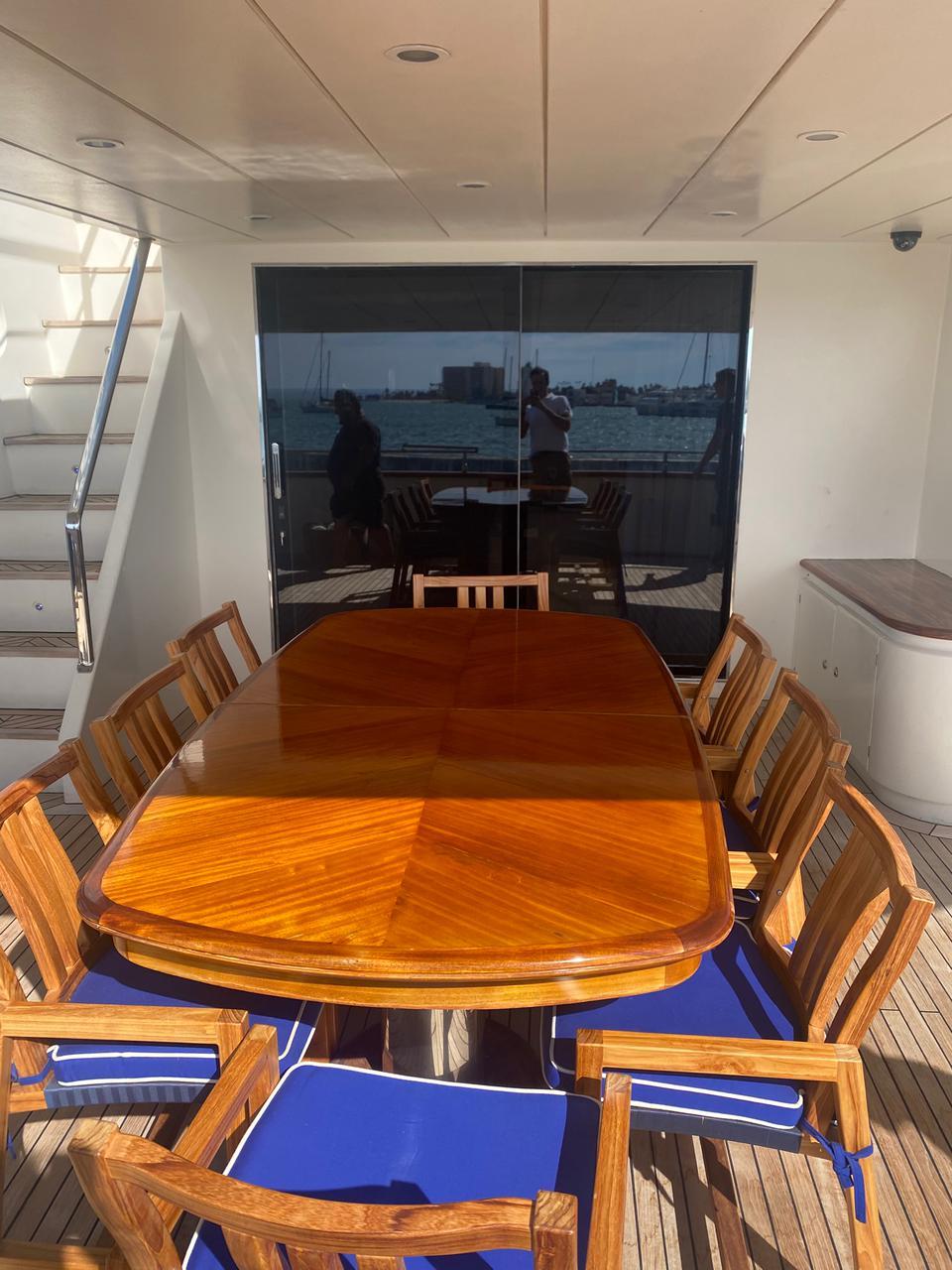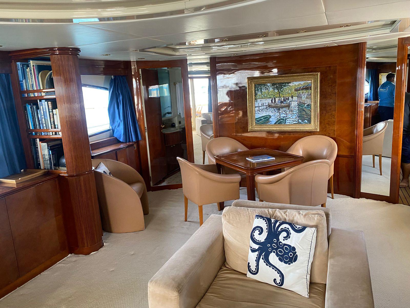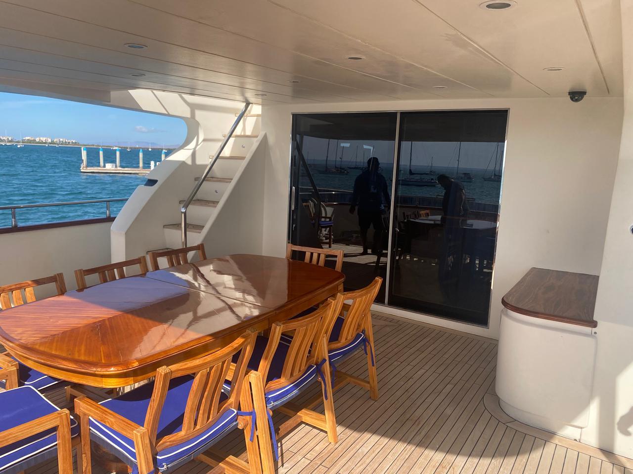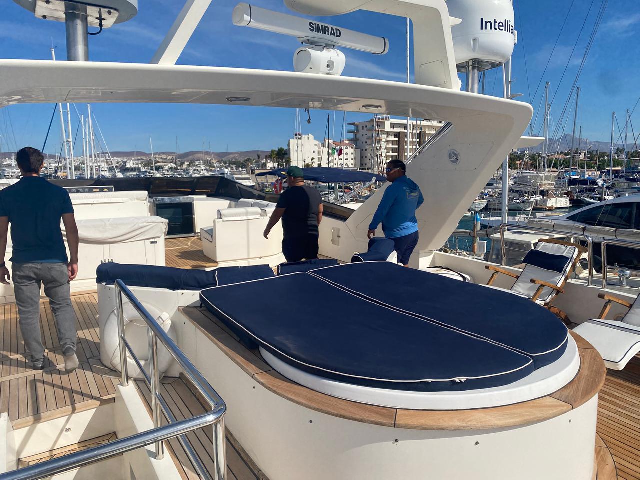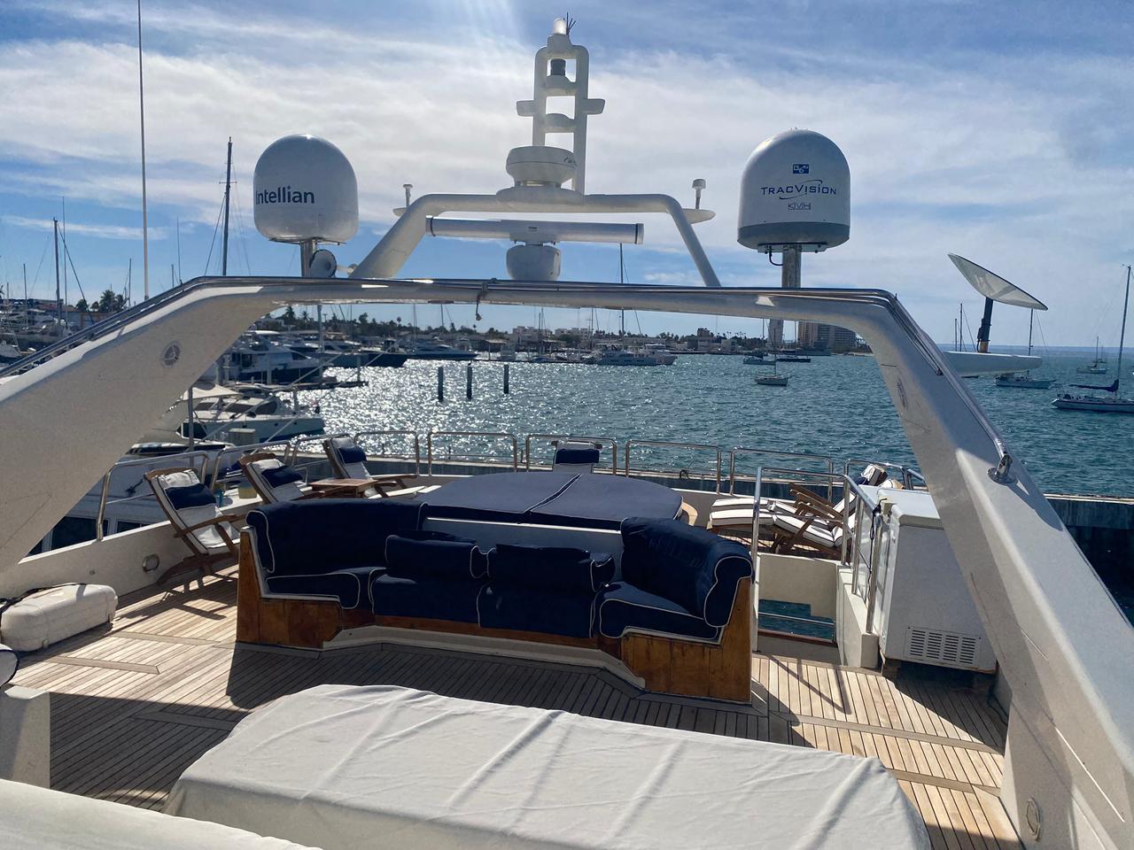 Поскольку хранение тендера не требуется на флайбридже, полноширинный флайбридж Azimut 90–100 полностью посвящён комфорту и развлечениям. Он разделён на три зоны: в носовой части — пост управления и два полукруглых дивана, в центральной зоне — большая обеденная зона с посадкой до десяти человек, а в кормовой части — зона отдыха с джакузи и местами для загорания.