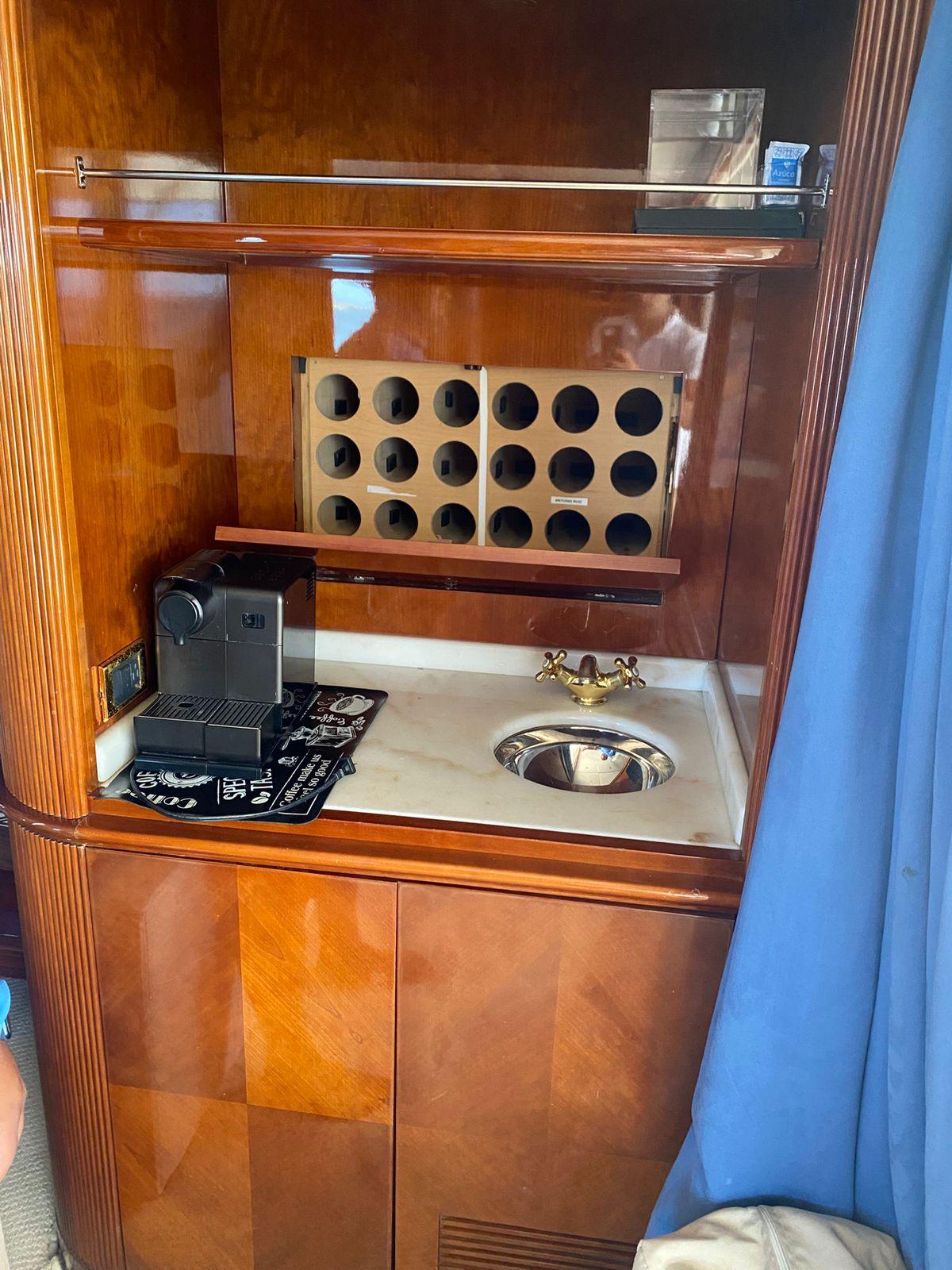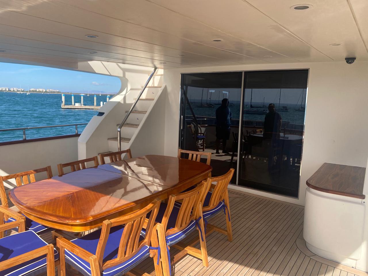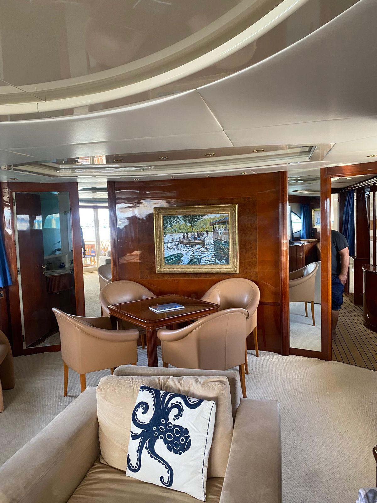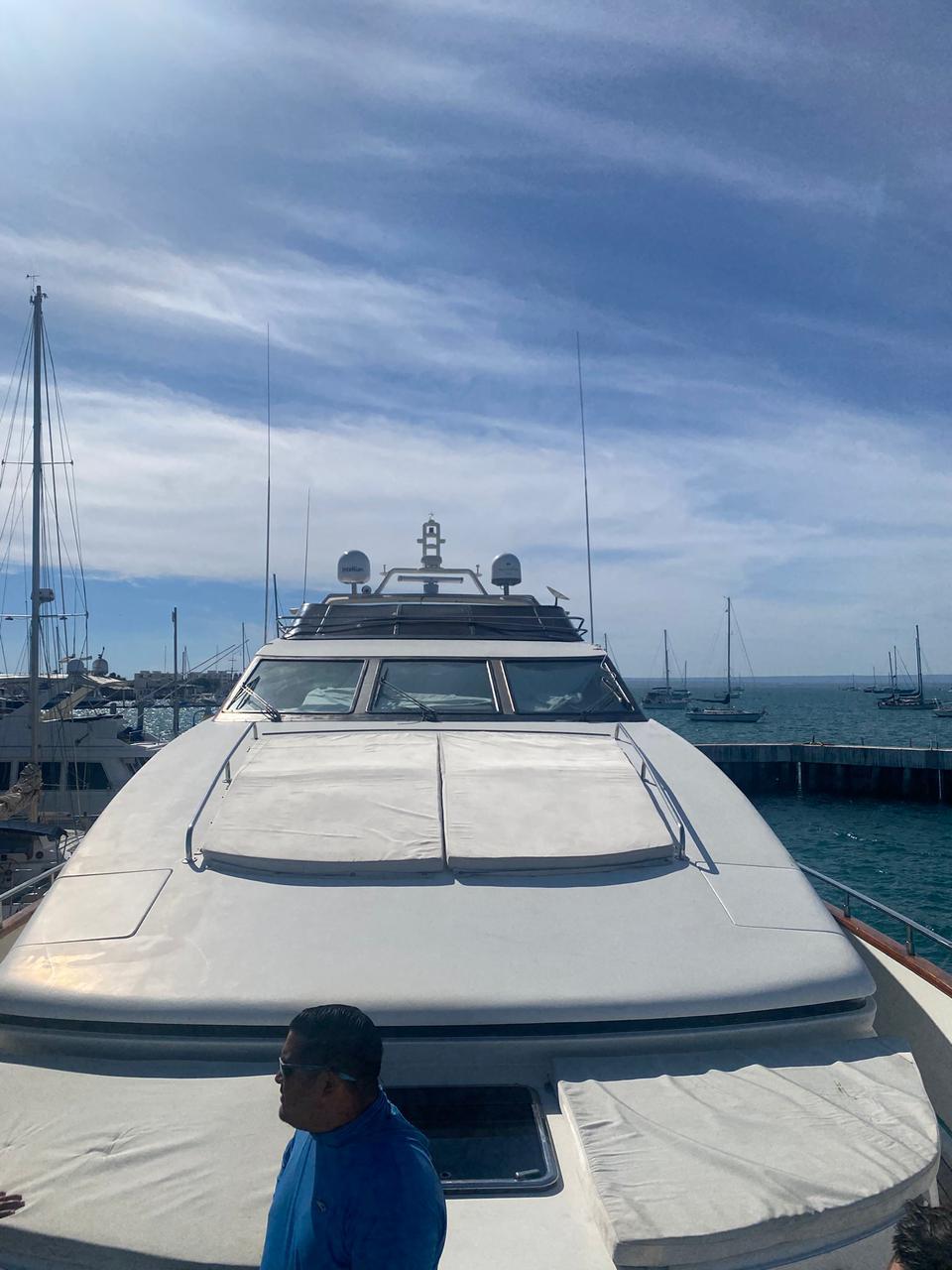 Моторная яхта Azimut 90–100 Jumbo — крупнейшая в линейке этой итальянской верфи — сочетает в себе эффективный, мореходный корпус глубокого V-образного типа с эффектным дизайном и впечатляющими ходовыми характеристиками. Яхта оснащена большими окнами салона, обеспечивающими отличную обзорность даже для сидящих гостей; интерьер отличается отделкой из вручную изготовленной и лакированной вишни и шпона капа.