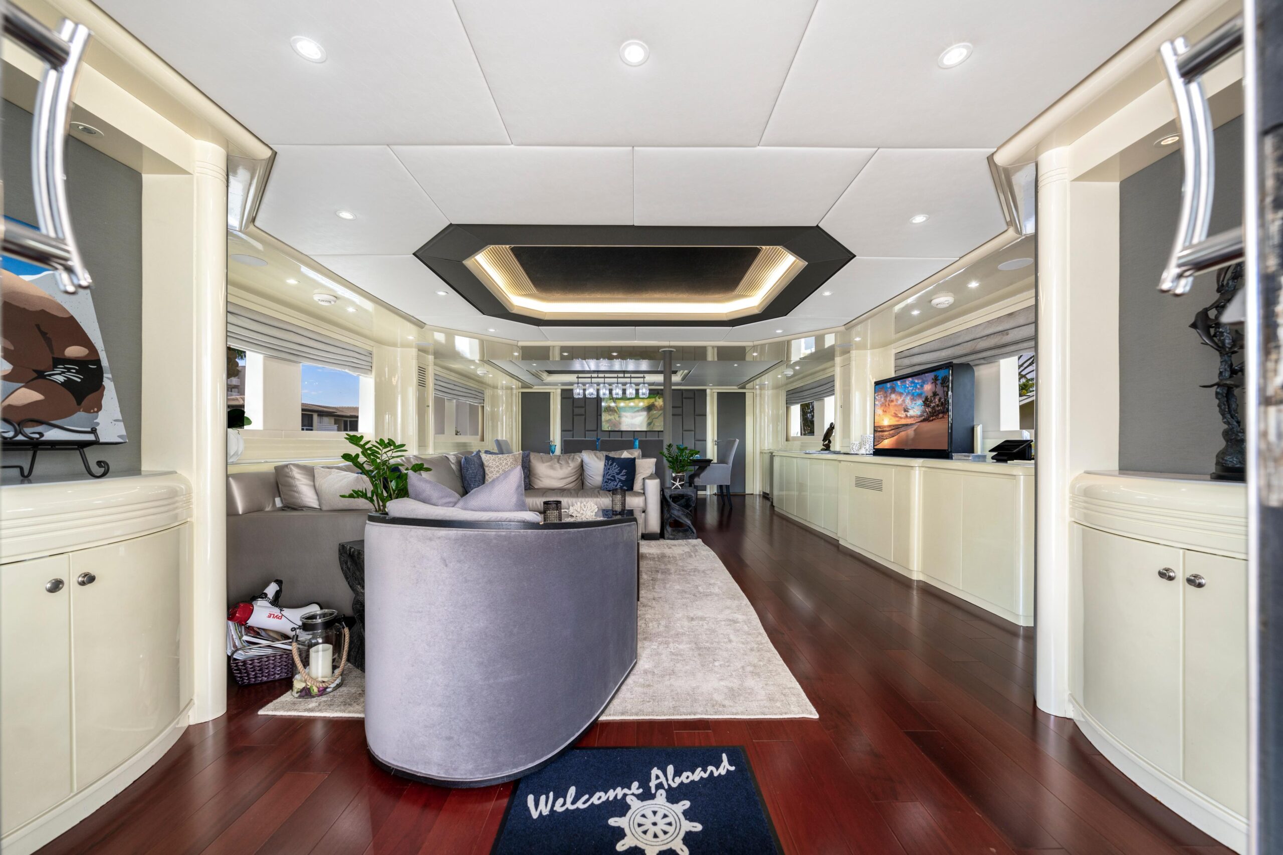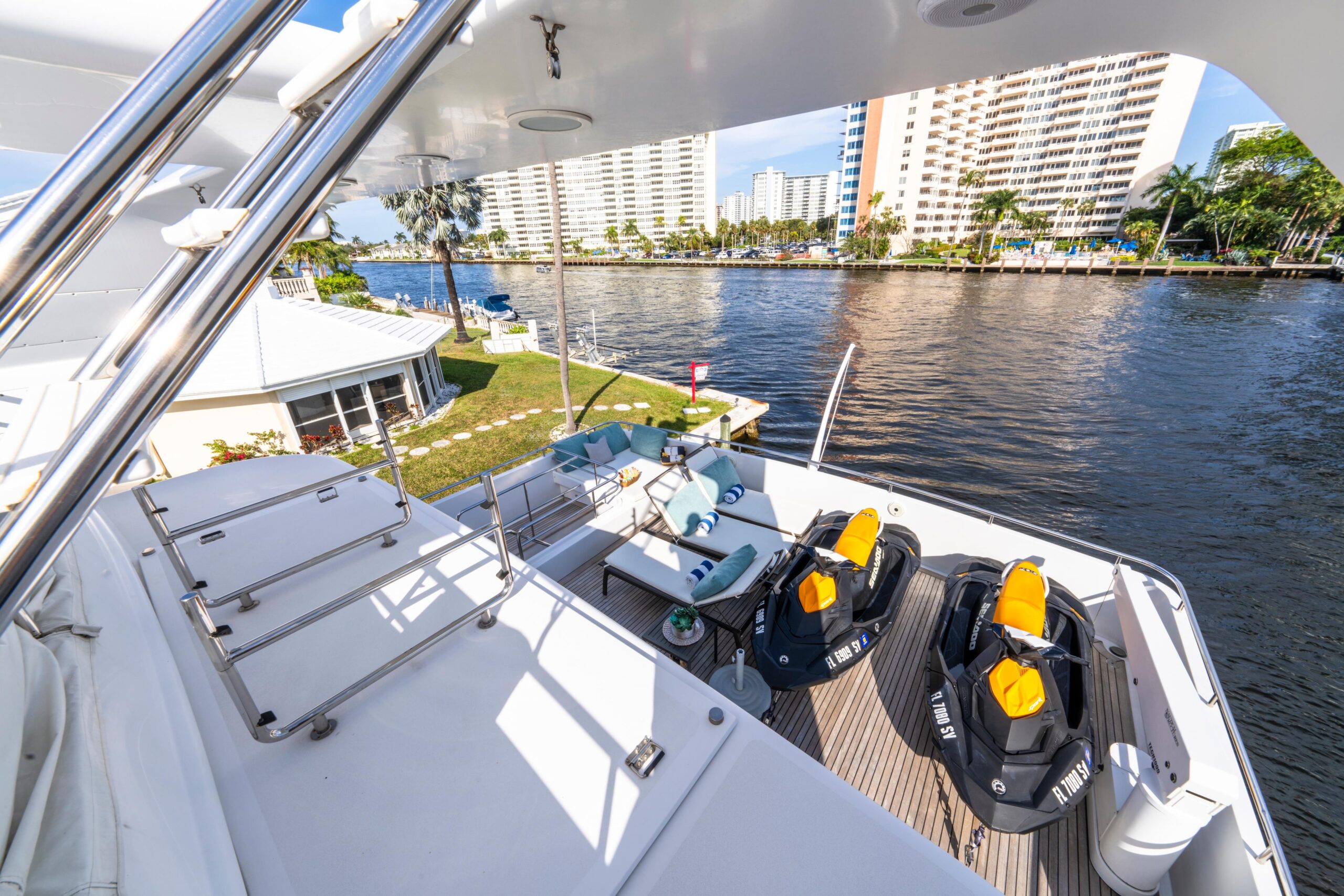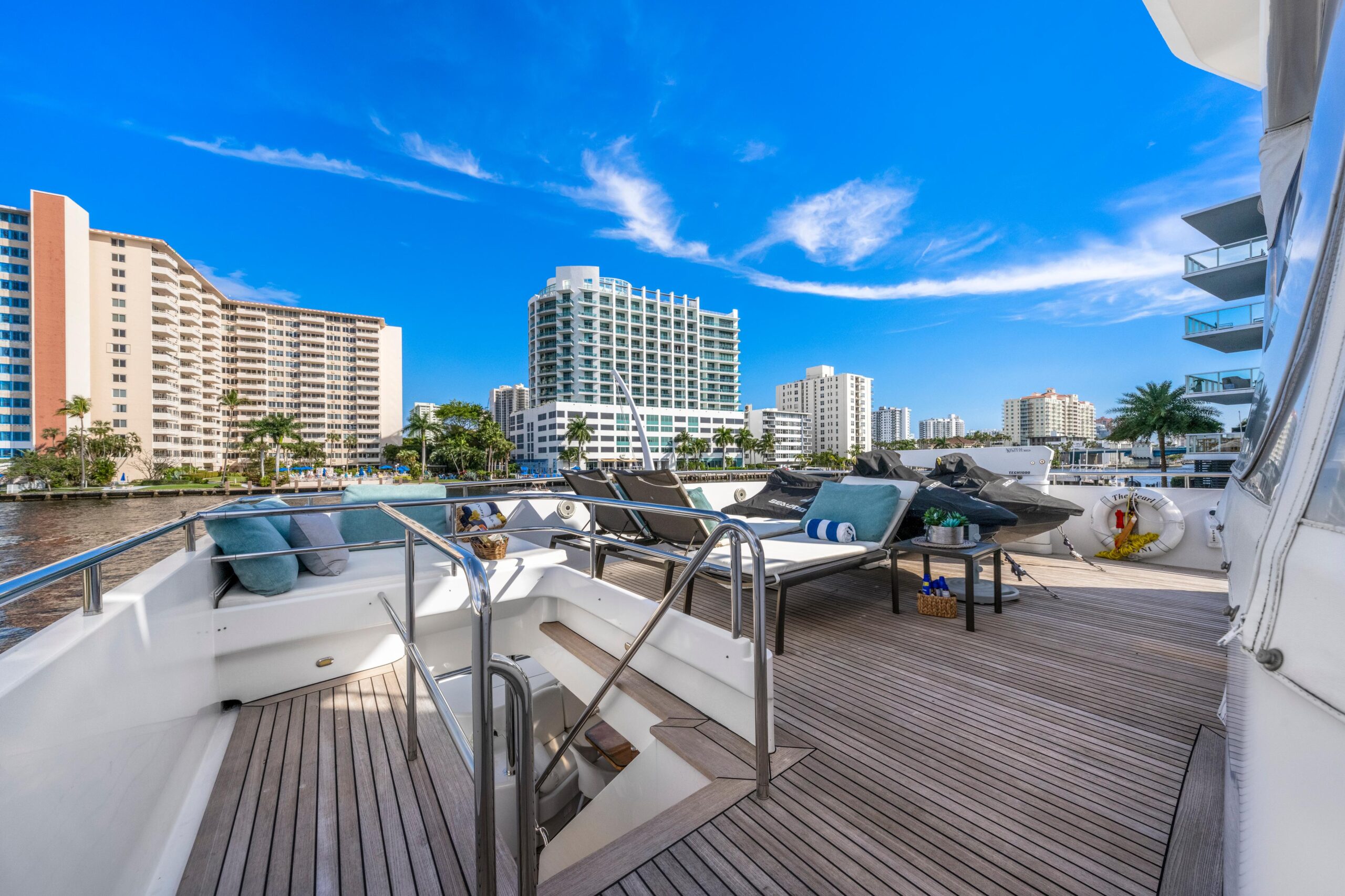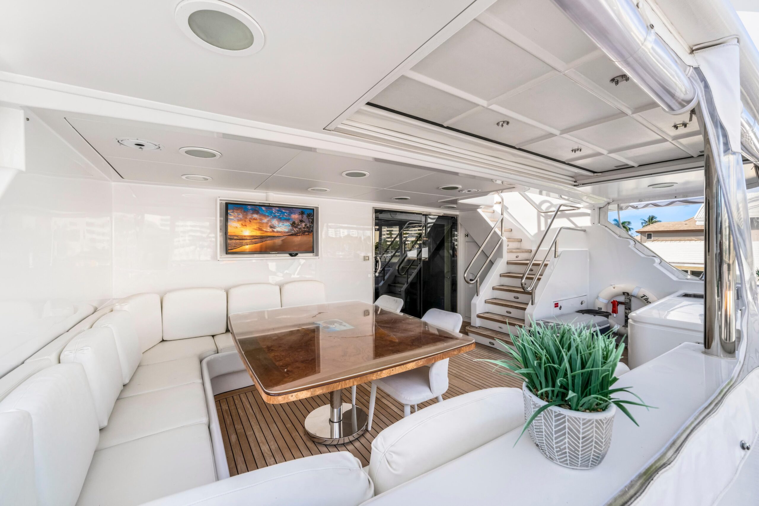 Закрытый бар, обеденная зона на 8, SPA-бассейн, большая зона для загара, место для хранения скутеров или гидроциклов.
