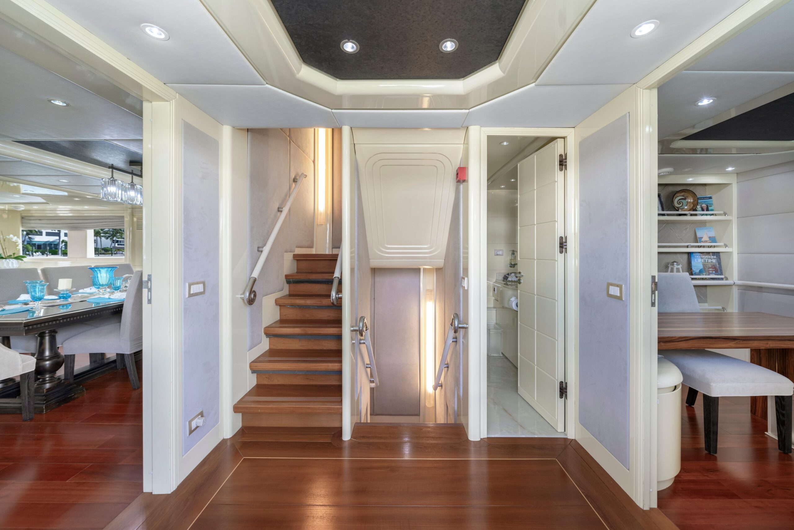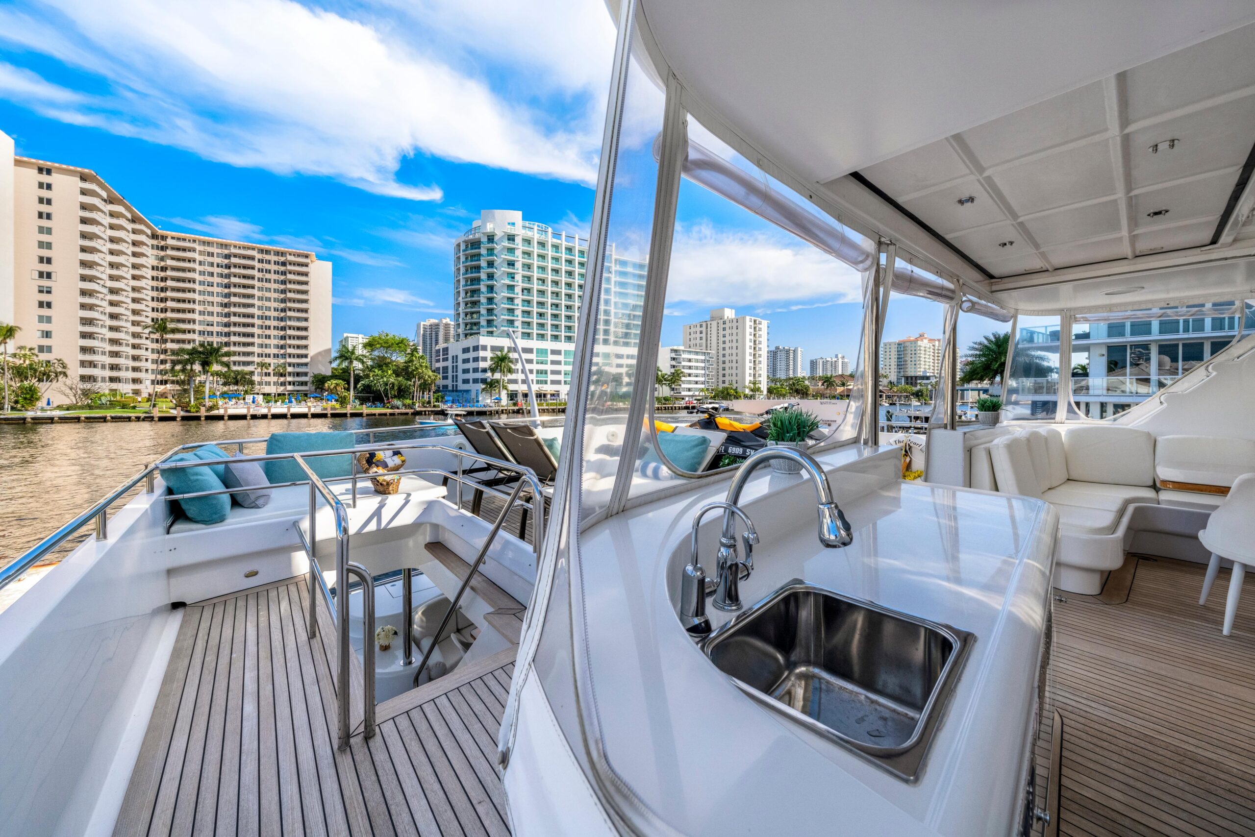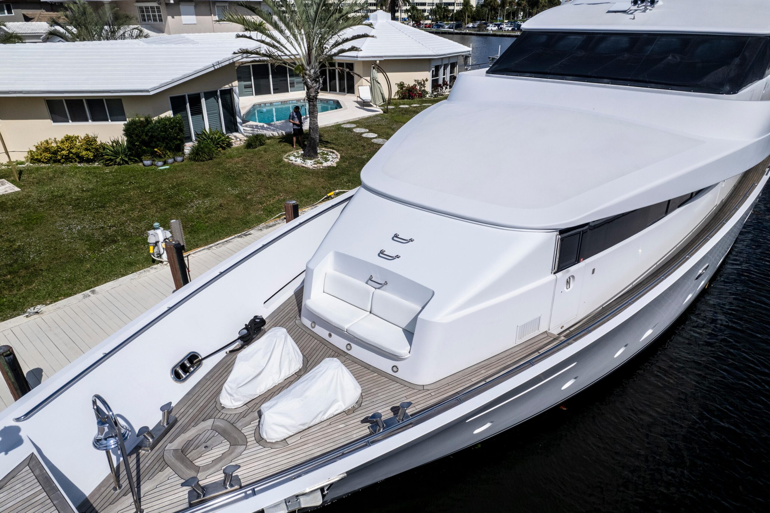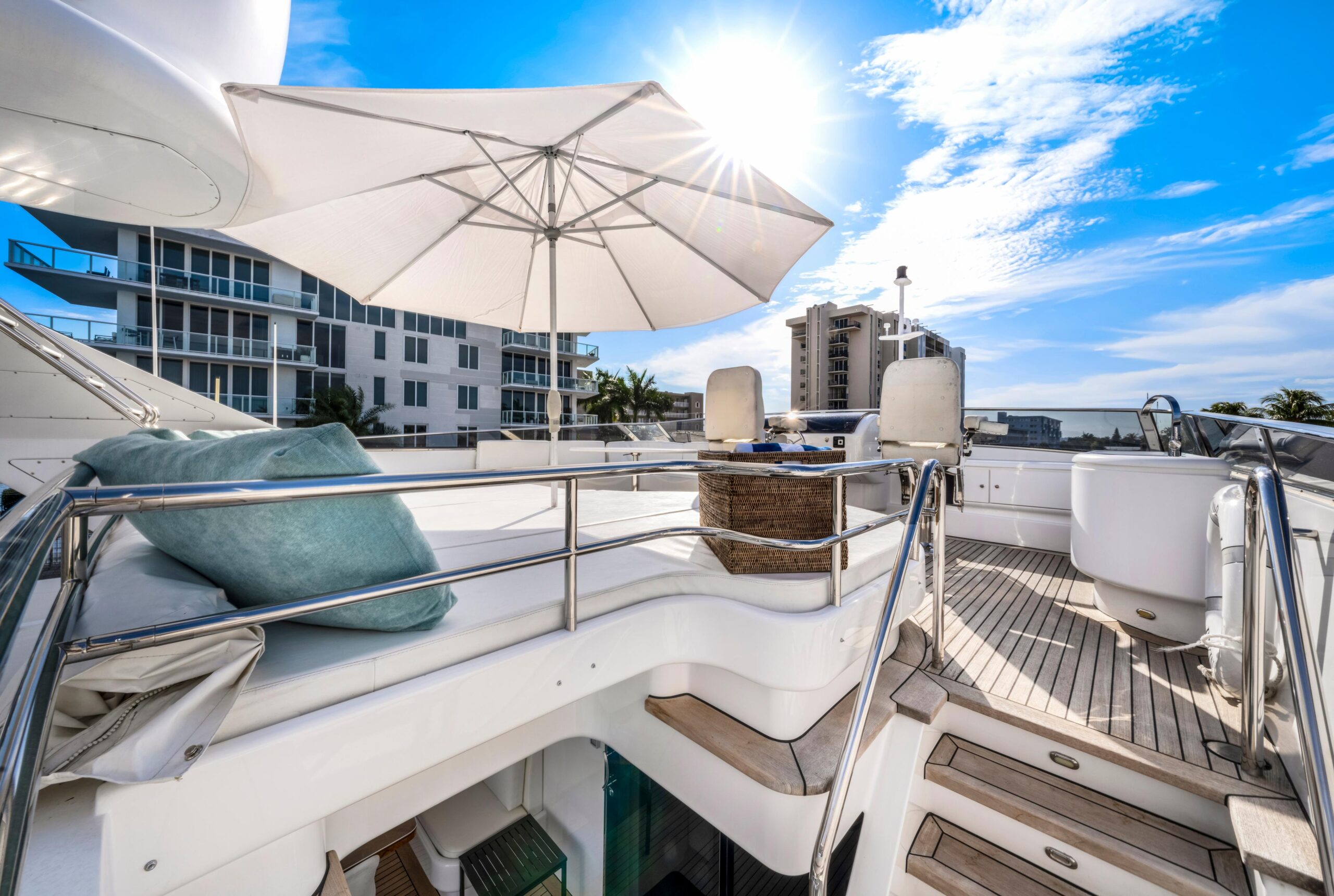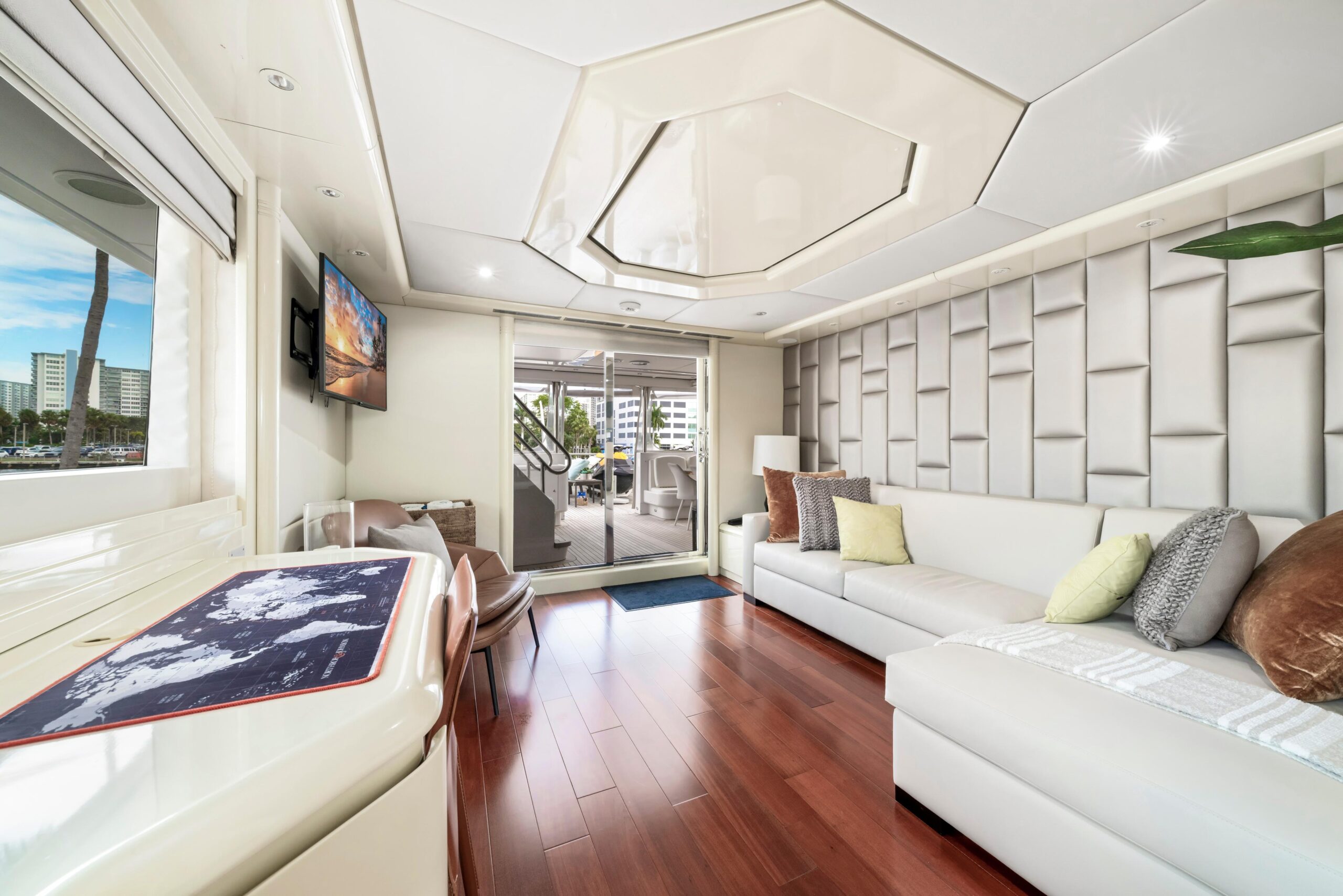 Закрытый бар, обеденная зона на 8, SPA-бассейн, большая зона для загара, место для хранения скутеров или гидроциклов.