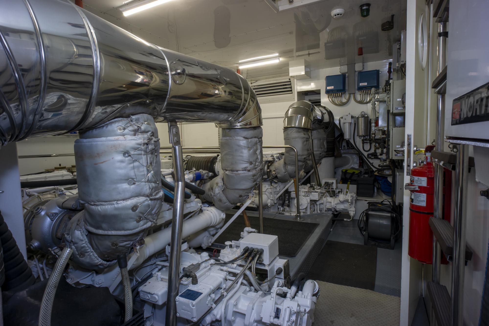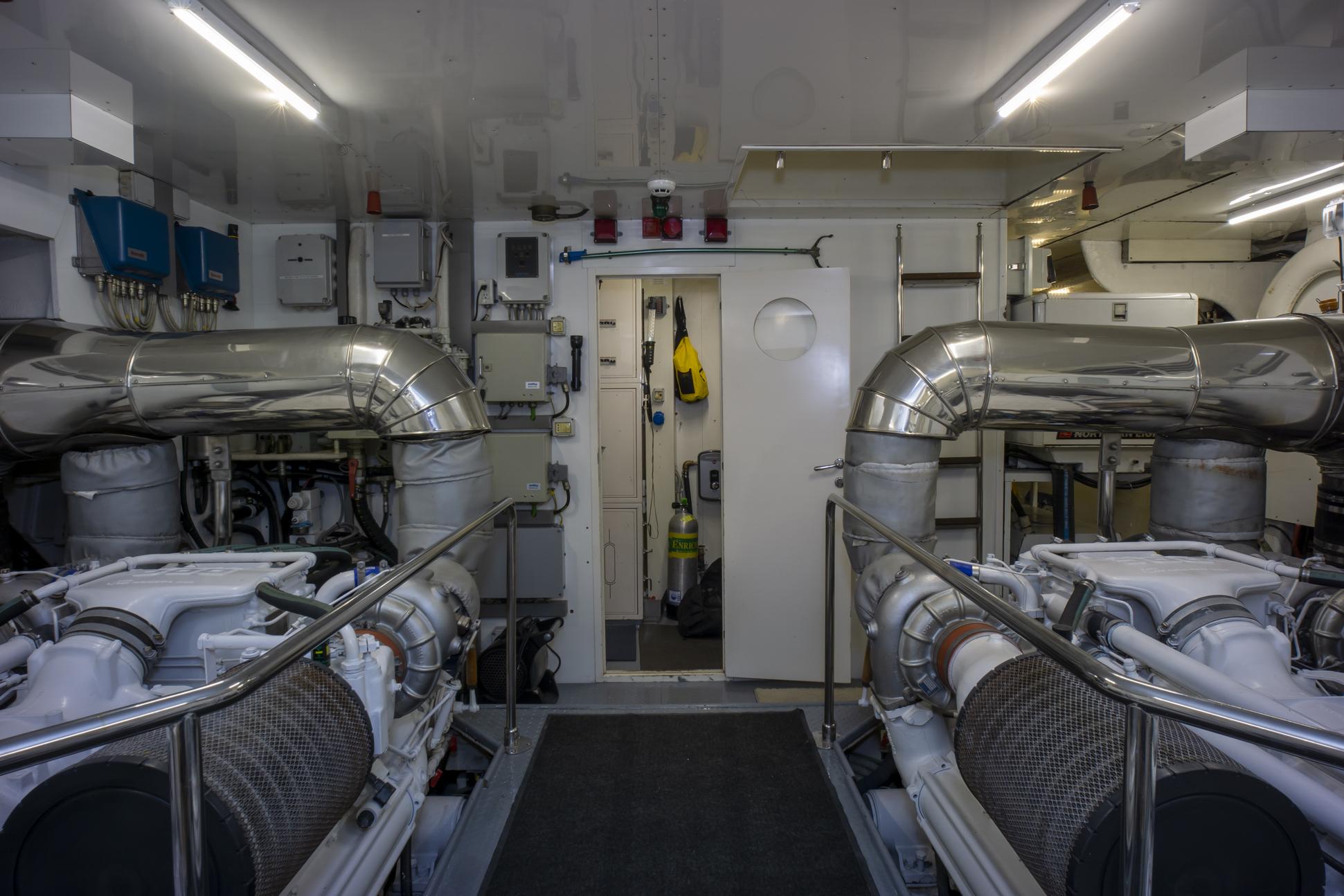 Каждый переход на борту PALADIN поддержан итальянской точностью и механическим совершенством. Два двигателя MTU 16V 2000 M90 обеспечивают динамичную производительность: максимальная скорость около 28 узлов при комфортной крейсерской скорости 22–24 узла.